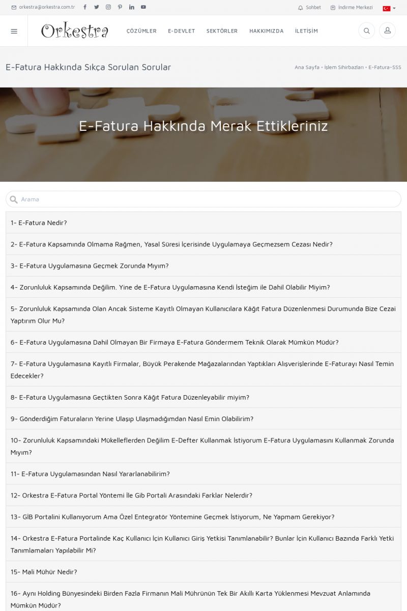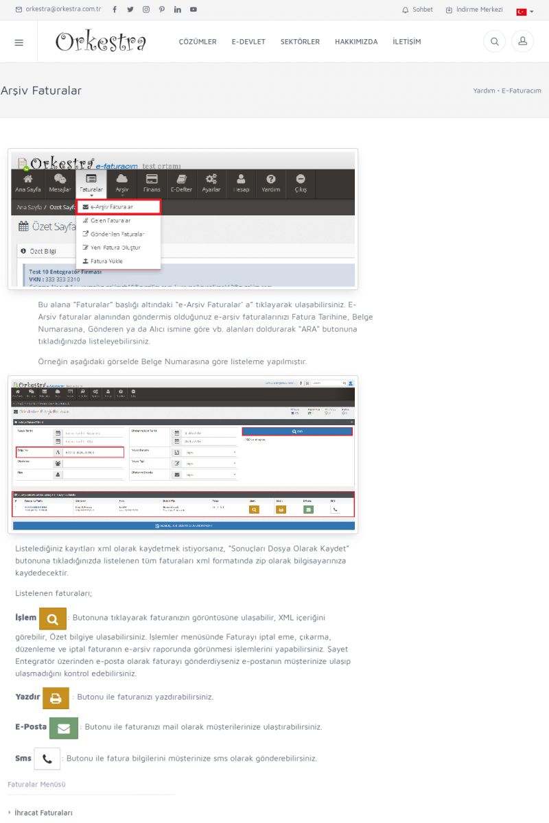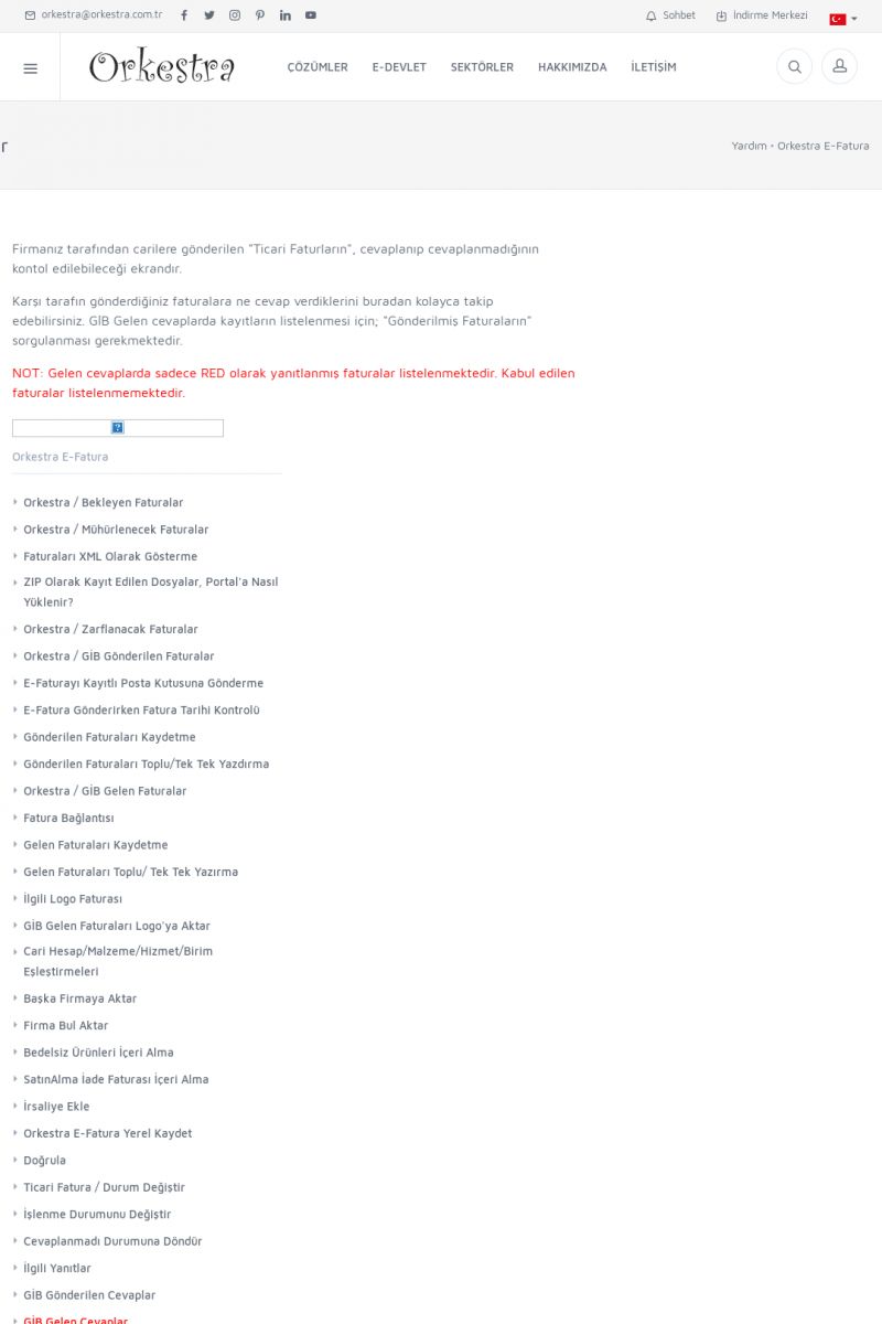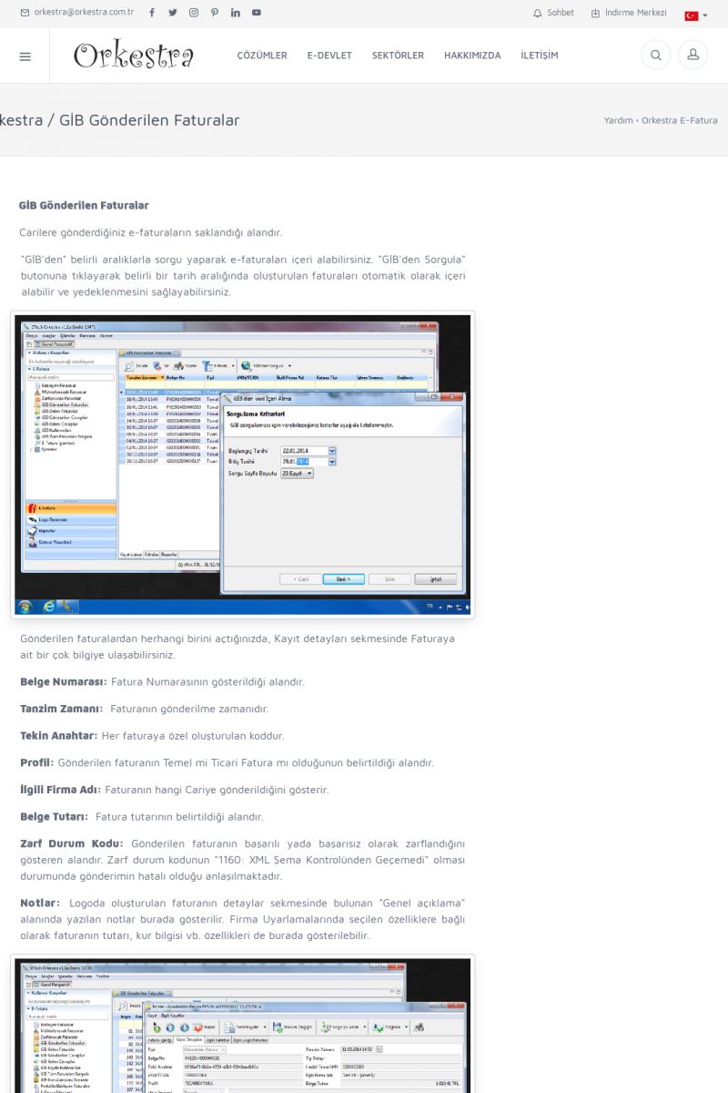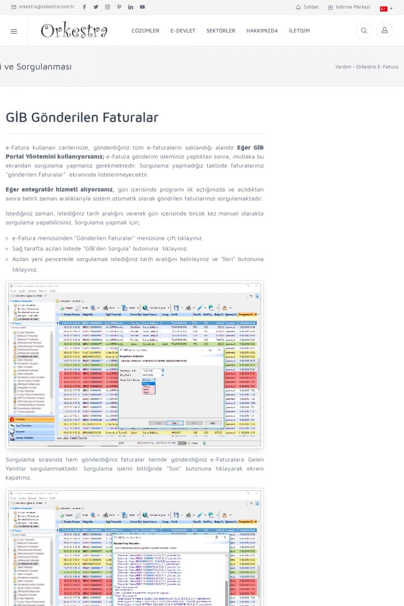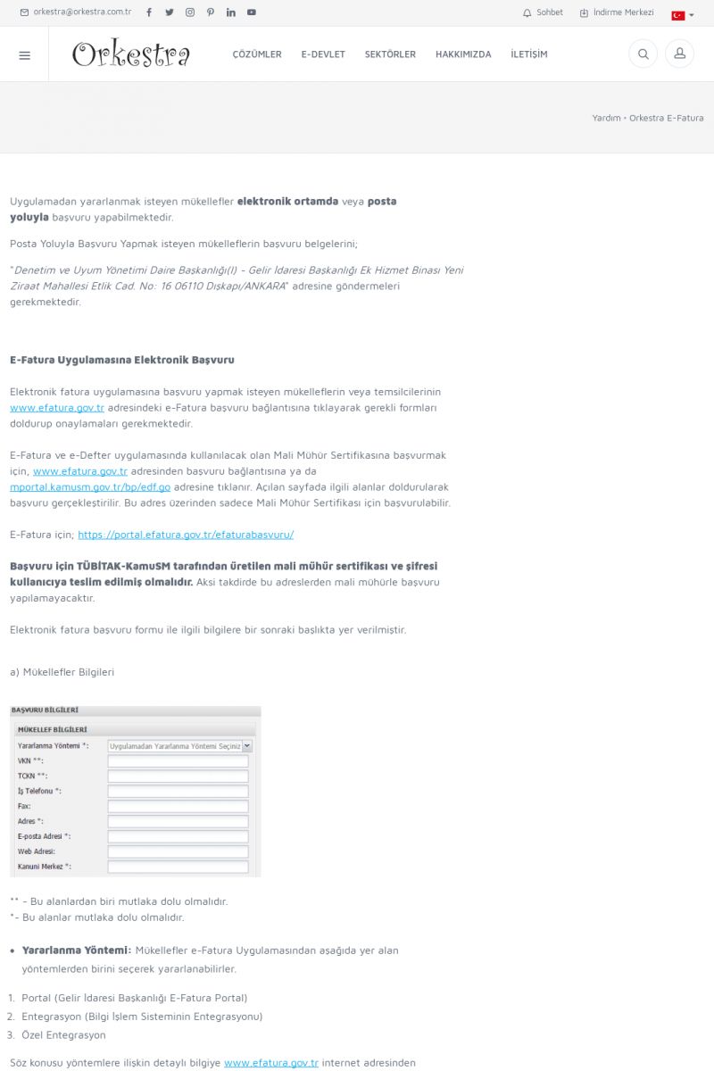 | 20 |  | Haberler / Güncel KonularBu sayfa içerisinde güncel konuları ve haberleri bulabilirsiniz. E-Fatura, E-Defter, E-Arşiv ve Orkestra Ticari Sistem ile ilgili yenilikleri buradan takip edebilirsiniz. KISA ERİŞİM KODU : XYUD / ARA20 | |