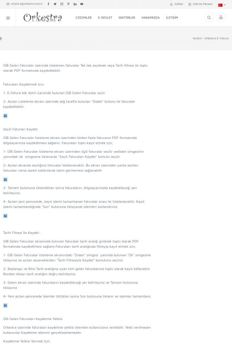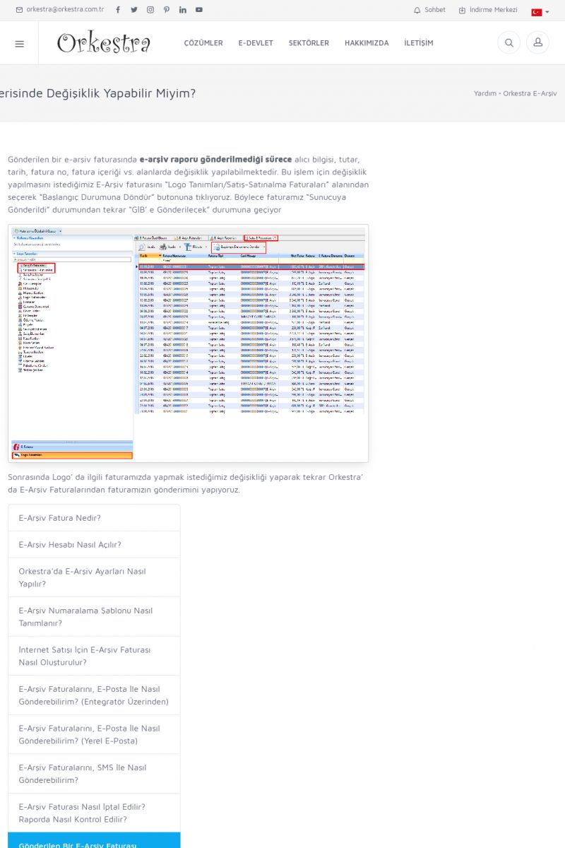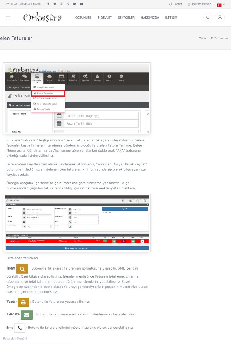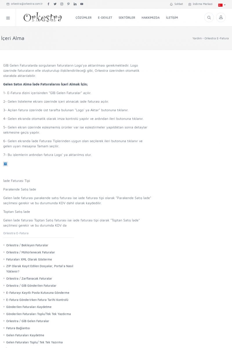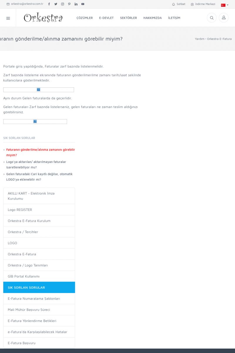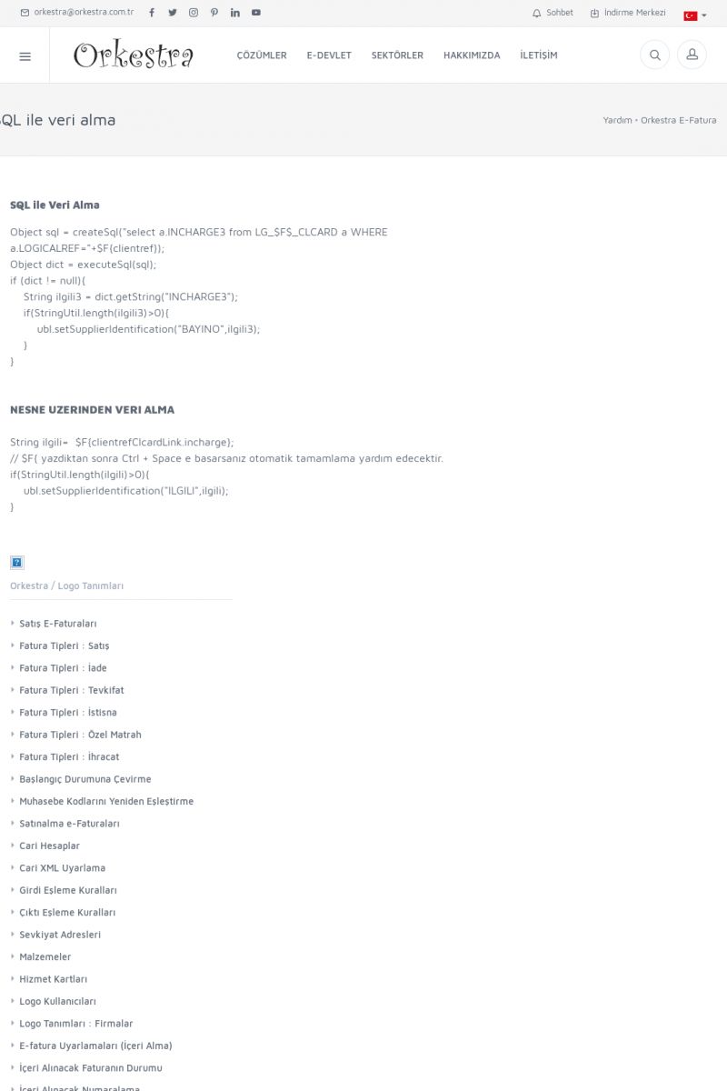 | 20 |  | Haberler / Güncel KonularBu sayfa içerisinde güncel konuları ve haberleri bulabilirsiniz. E-Fatura, E-Defter, E-Arşiv ve Orkestra Ticari Sistem ile ilgili yenilikleri buradan takip edebilirsiniz. KISA ERİŞİM KODU : XYUD / ARA20 | |
