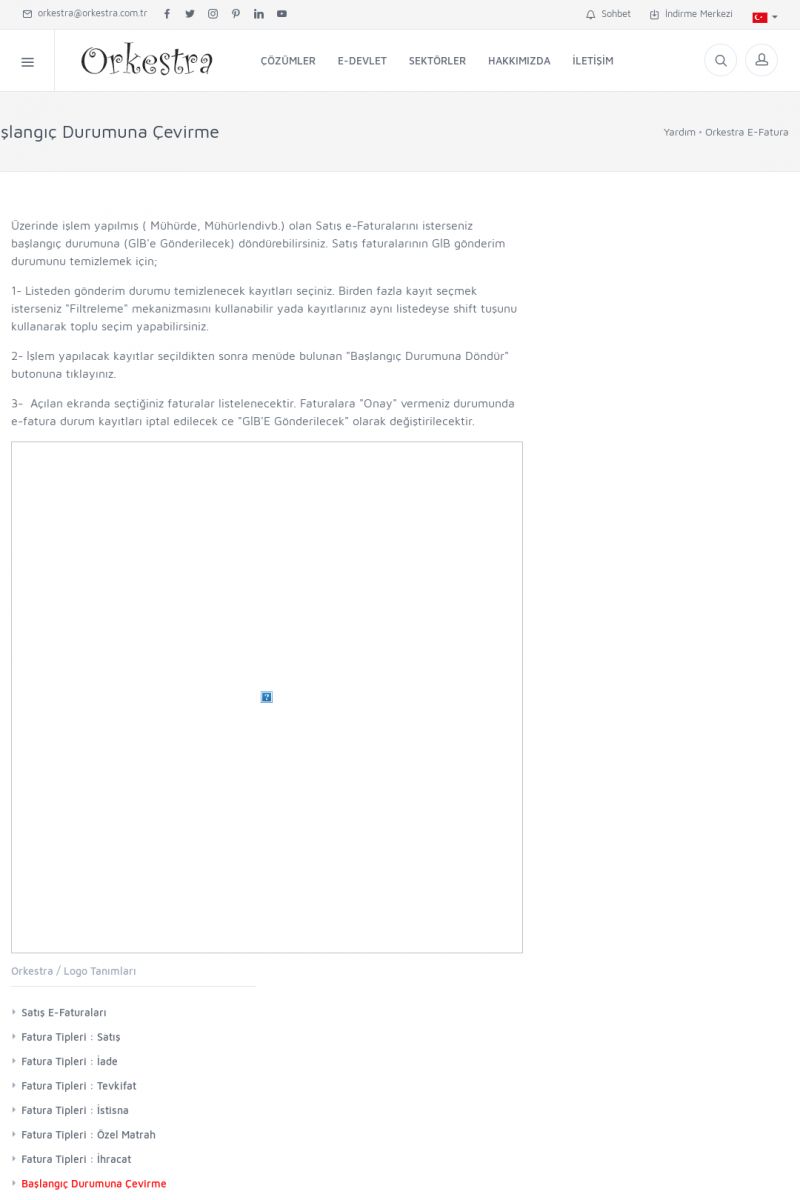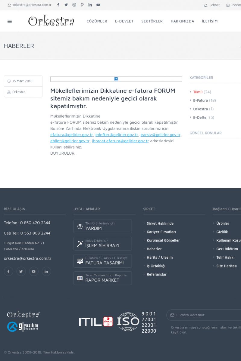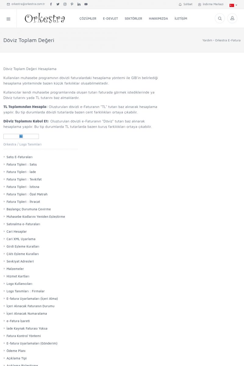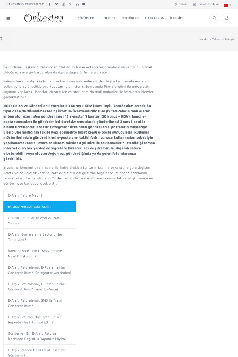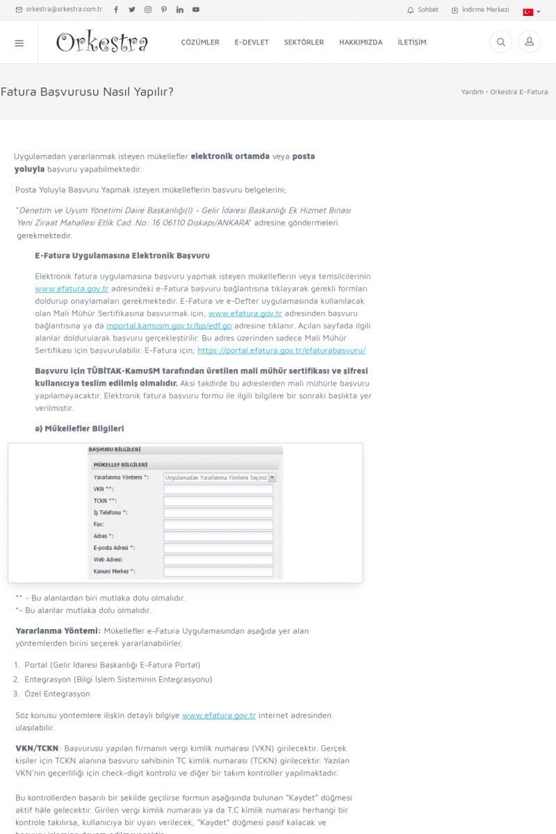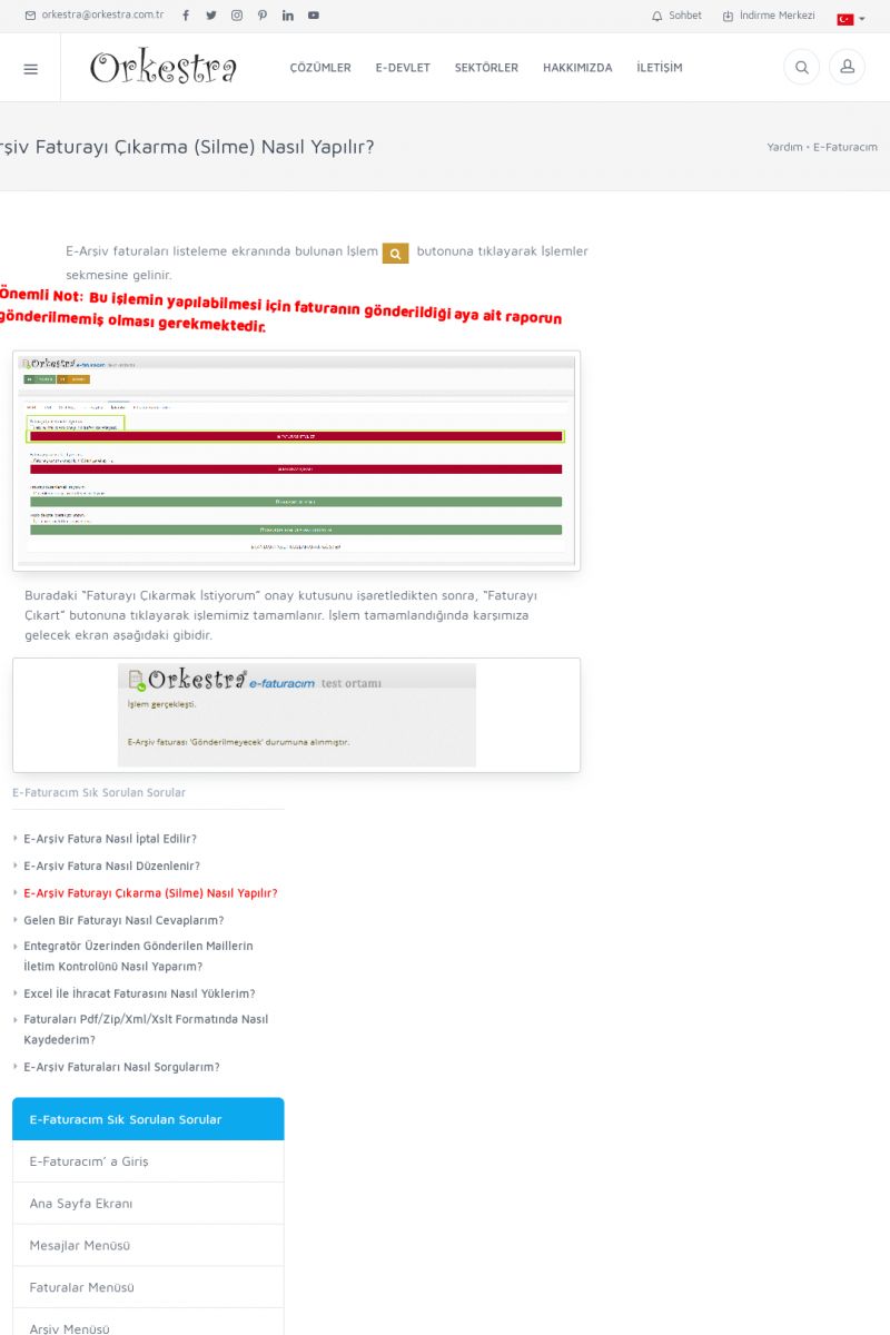 | 20 |  | Haberler / Güncel KonularBu sayfa içerisinde güncel konuları ve haberleri bulabilirsiniz. E-Fatura, E-Defter, E-Arşiv ve Orkestra Ticari Sistem ile ilgili yenilikleri buradan takip edebilirsiniz. KISA ERİŞİM KODU : XYUD / ARA20 | |