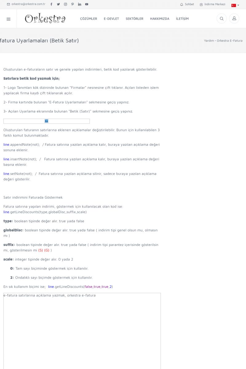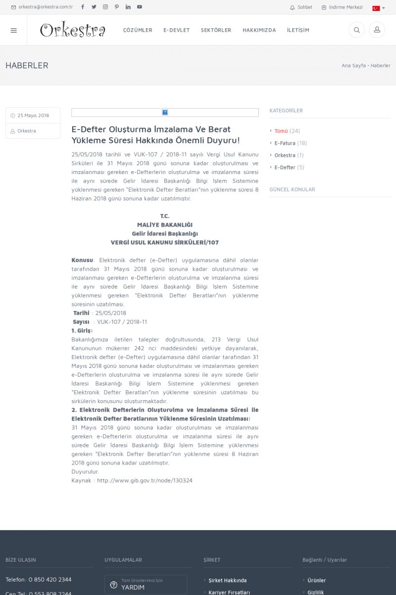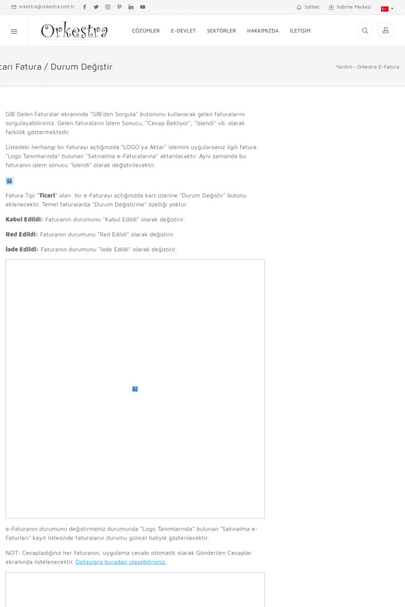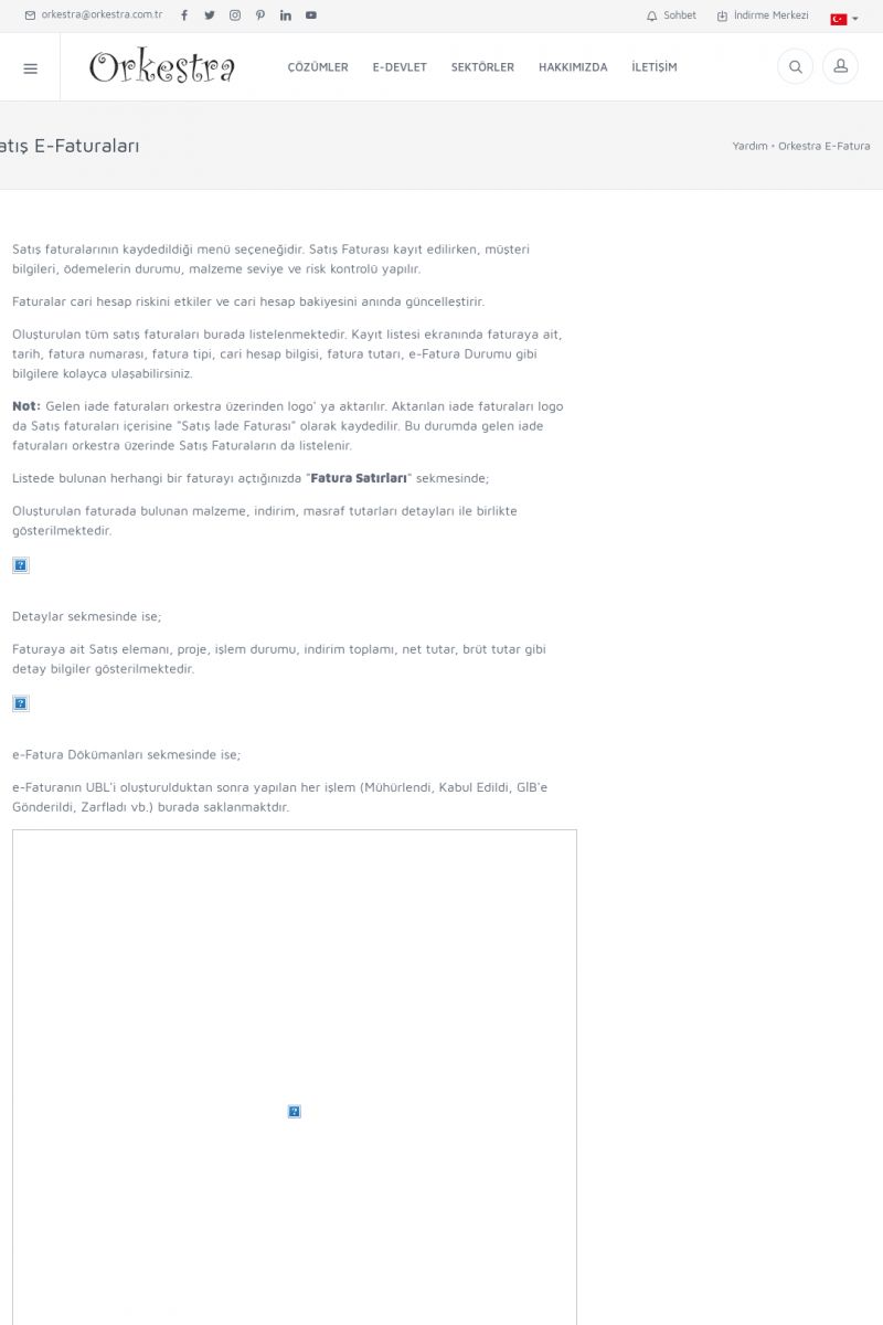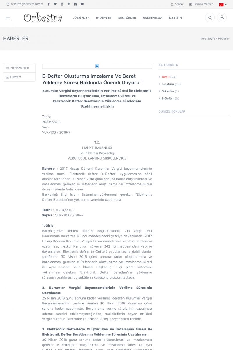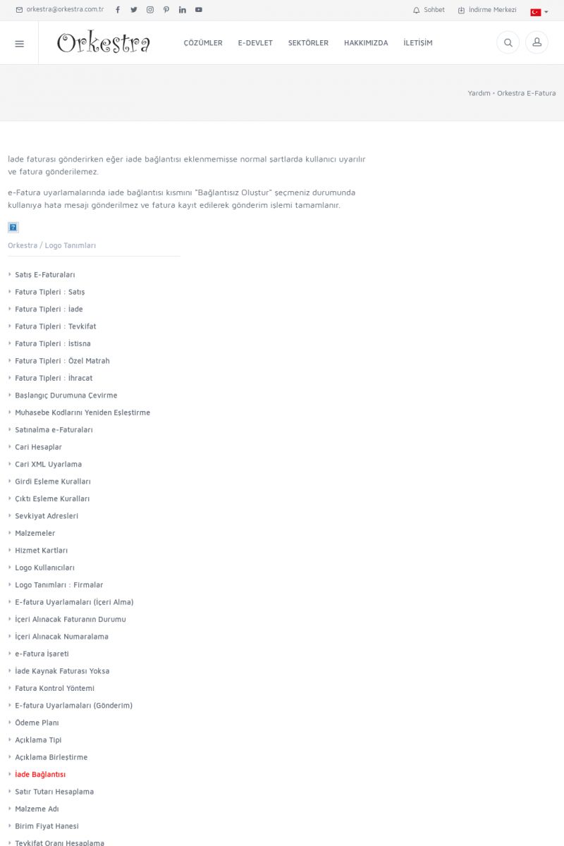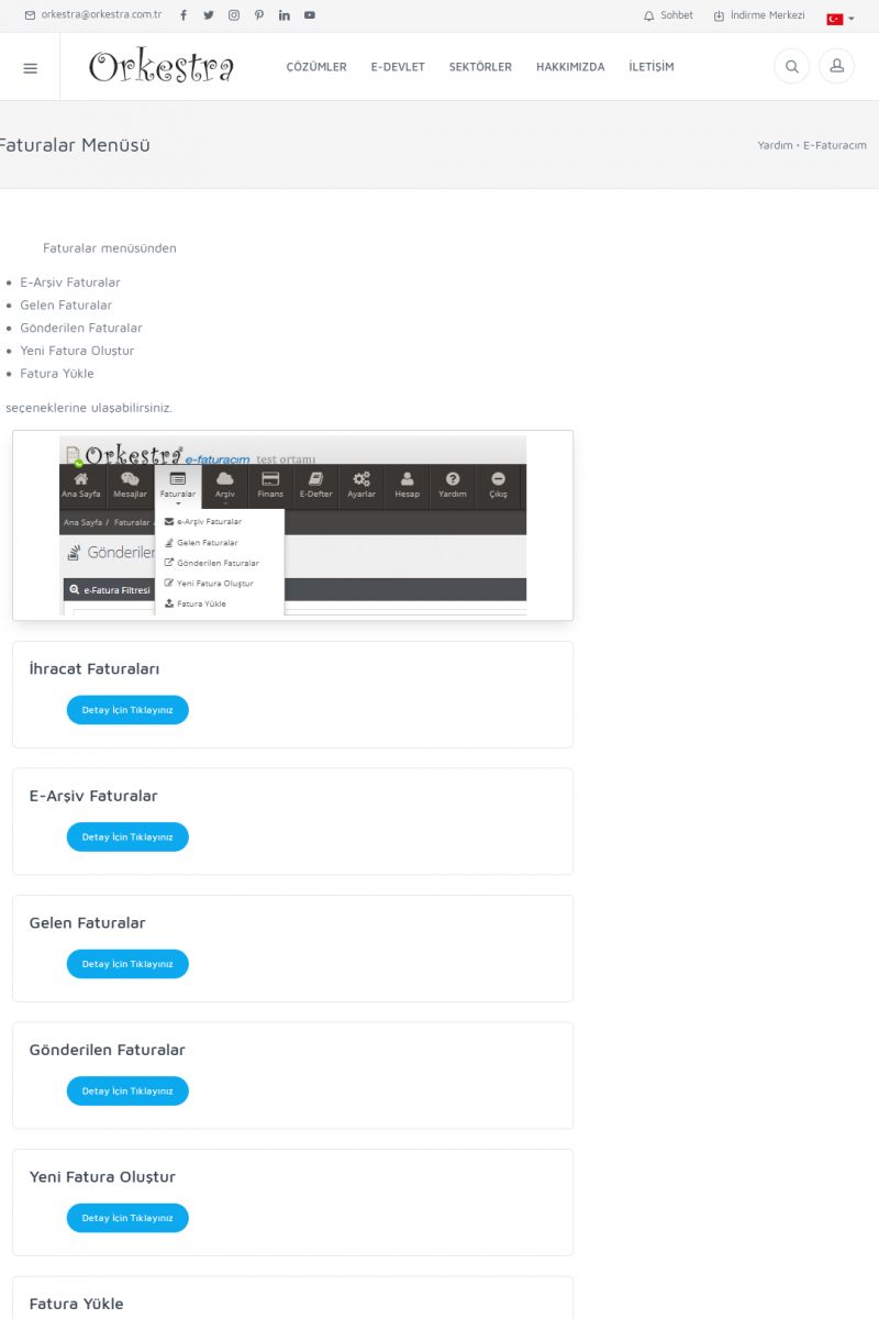 | 20 |  | Haberler / Güncel KonularBu sayfa içerisinde güncel konuları ve haberleri bulabilirsiniz. E-Fatura, E-Defter, E-Arşiv ve Orkestra Ticari Sistem ile ilgili yenilikleri buradan takip edebilirsiniz. KISA ERİŞİM KODU : XYUD / ARA20 | |