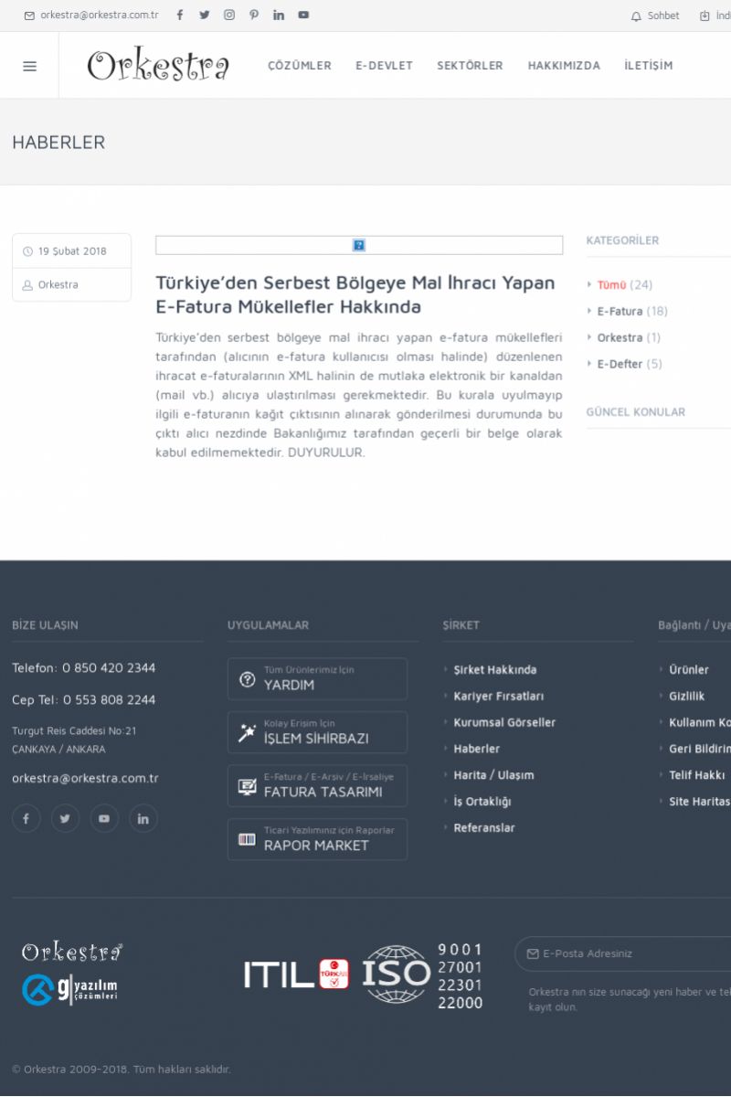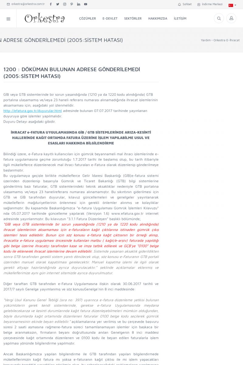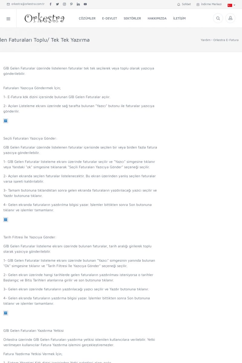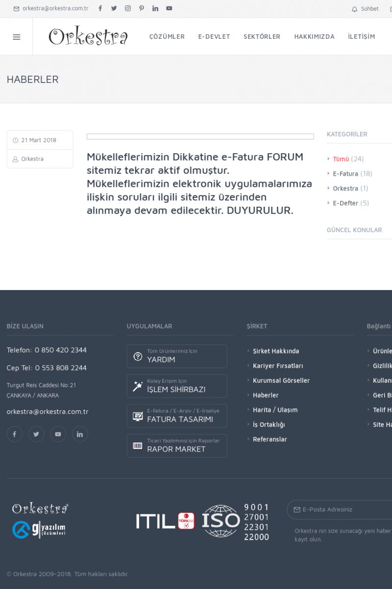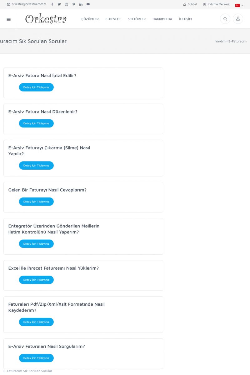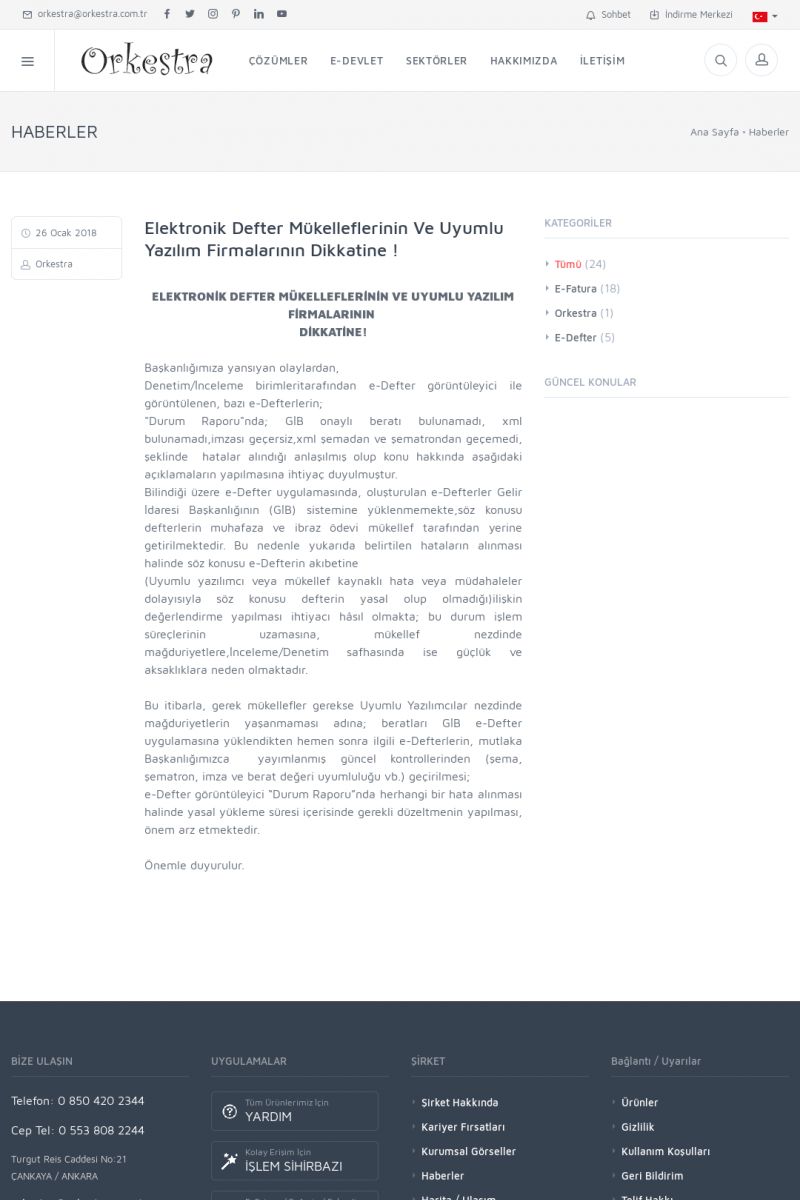 | 20 |  | Haberler / Güncel KonularBu sayfa içerisinde güncel konuları ve haberleri bulabilirsiniz. E-Fatura, E-Defter, E-Arşiv ve Orkestra Ticari Sistem ile ilgili yenilikleri buradan takip edebilirsiniz. KISA ERİŞİM KODU : XYUD / ARA20 | |