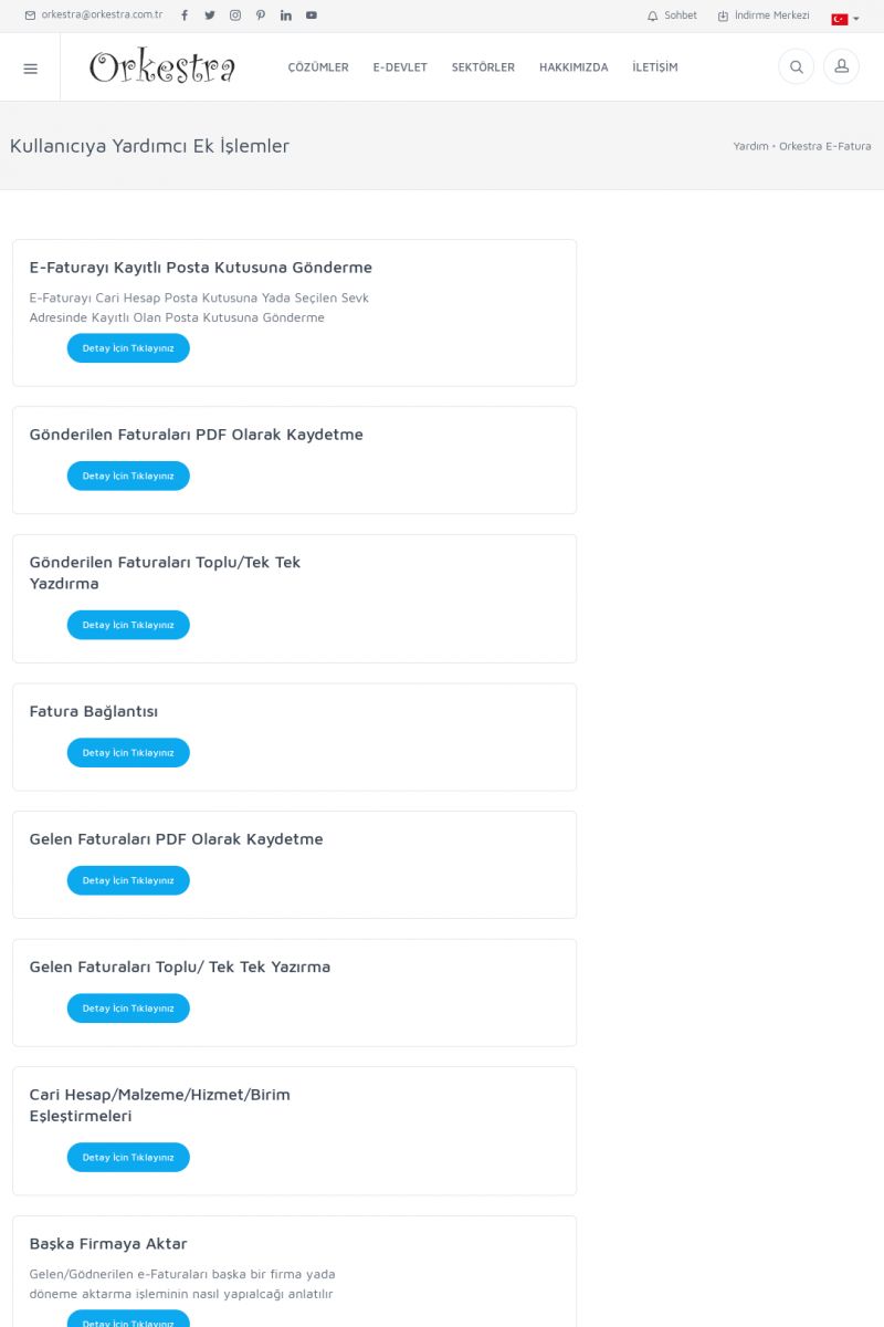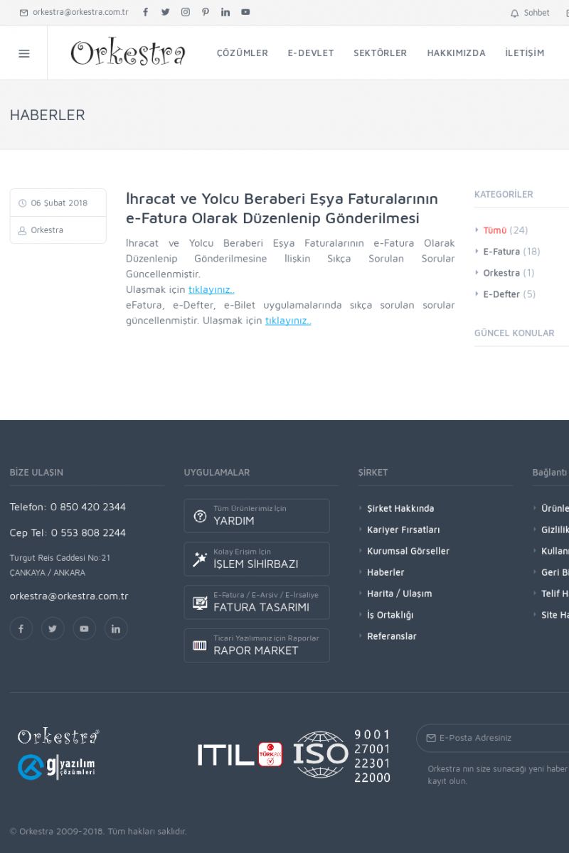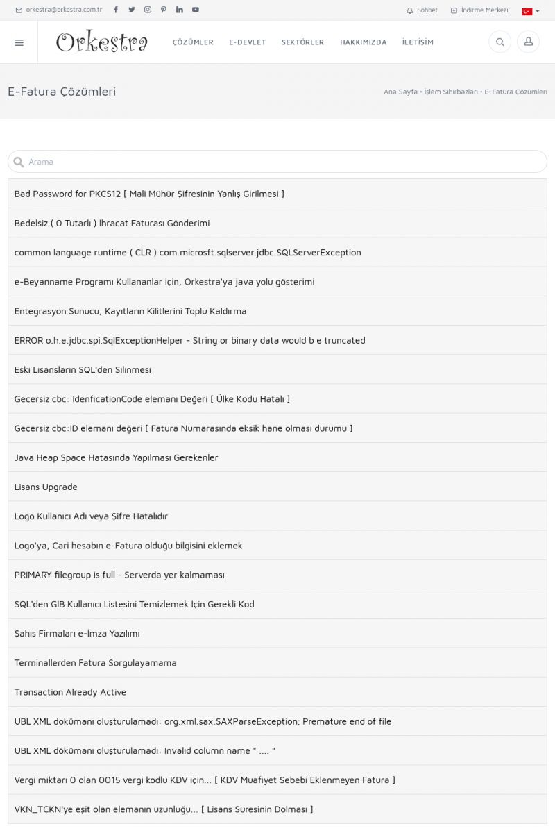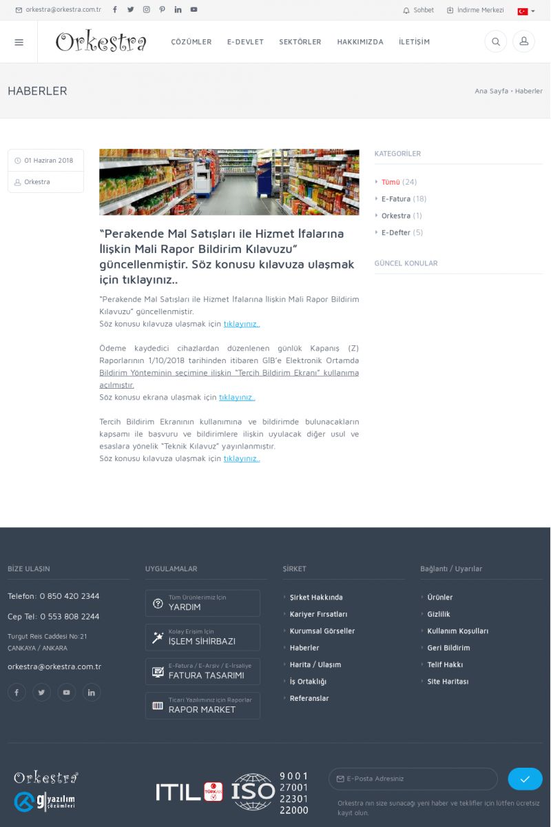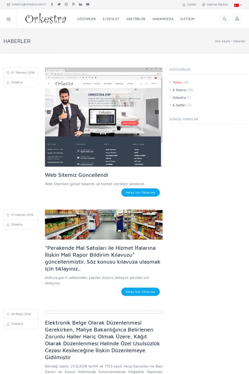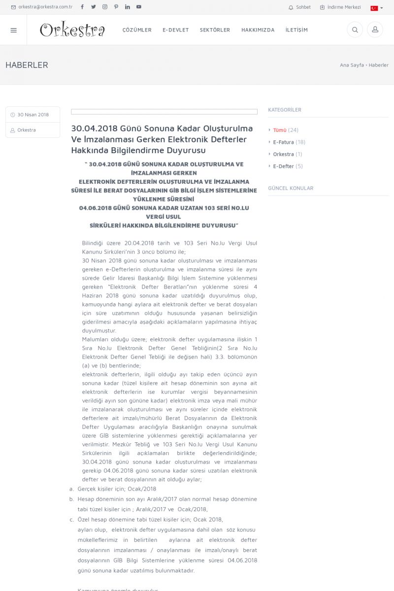 | 20 |  | Haberler / Güncel KonularBu sayfa içerisinde güncel konuları ve haberleri bulabilirsiniz. E-Fatura, E-Defter, E-Arşiv ve Orkestra Ticari Sistem ile ilgili yenilikleri buradan takip edebilirsiniz. KISA ERİŞİM KODU : XYUD / ARA20 | |