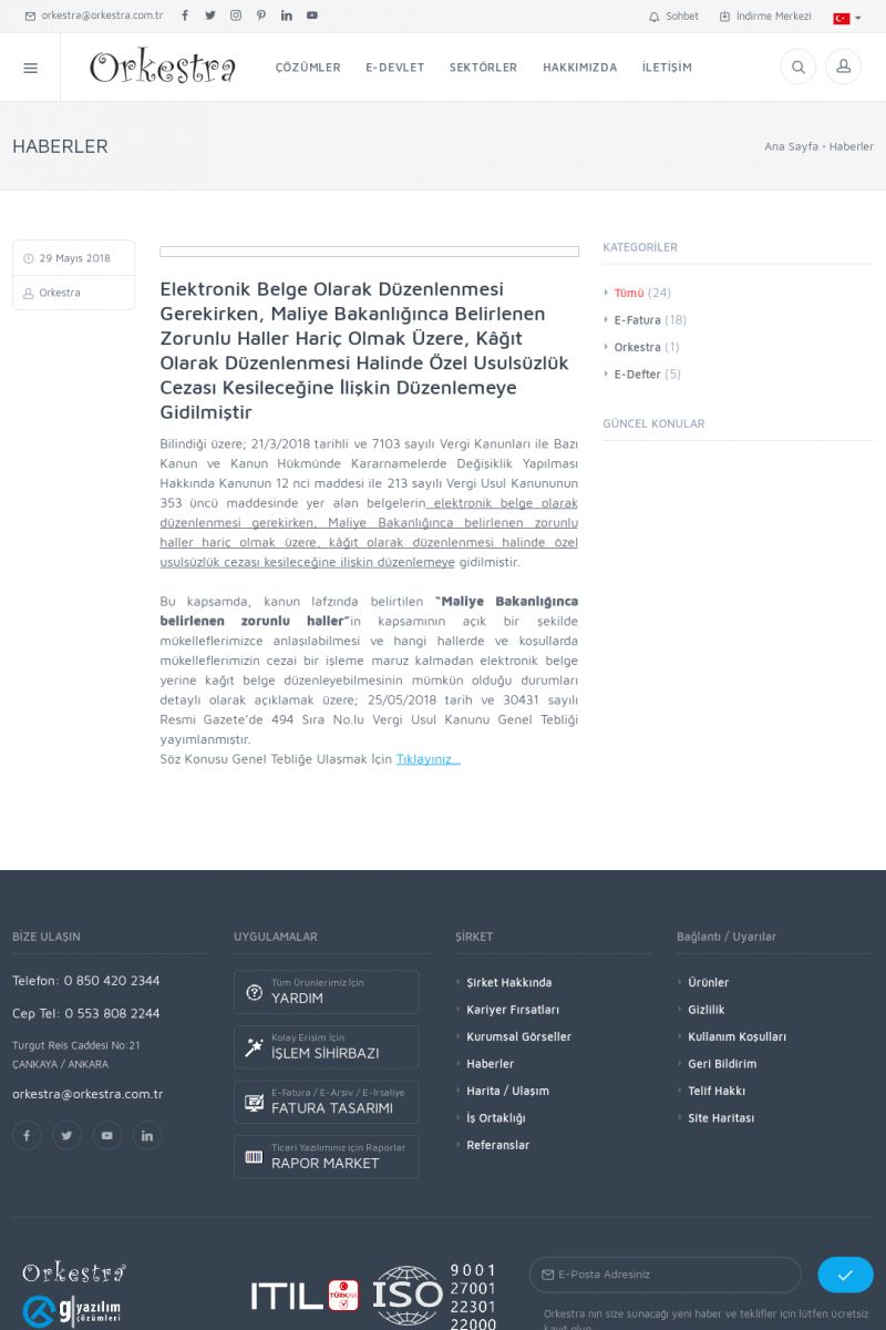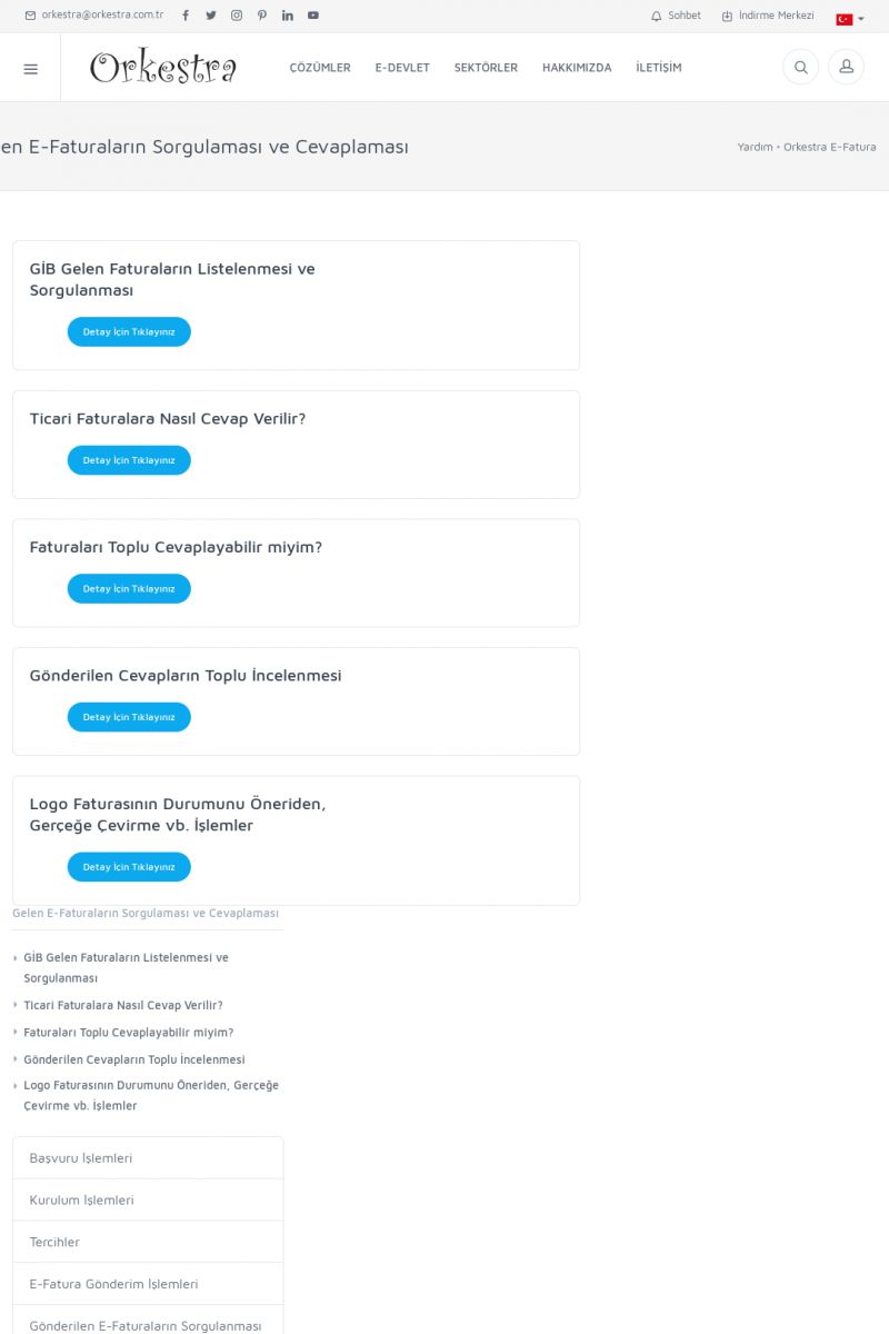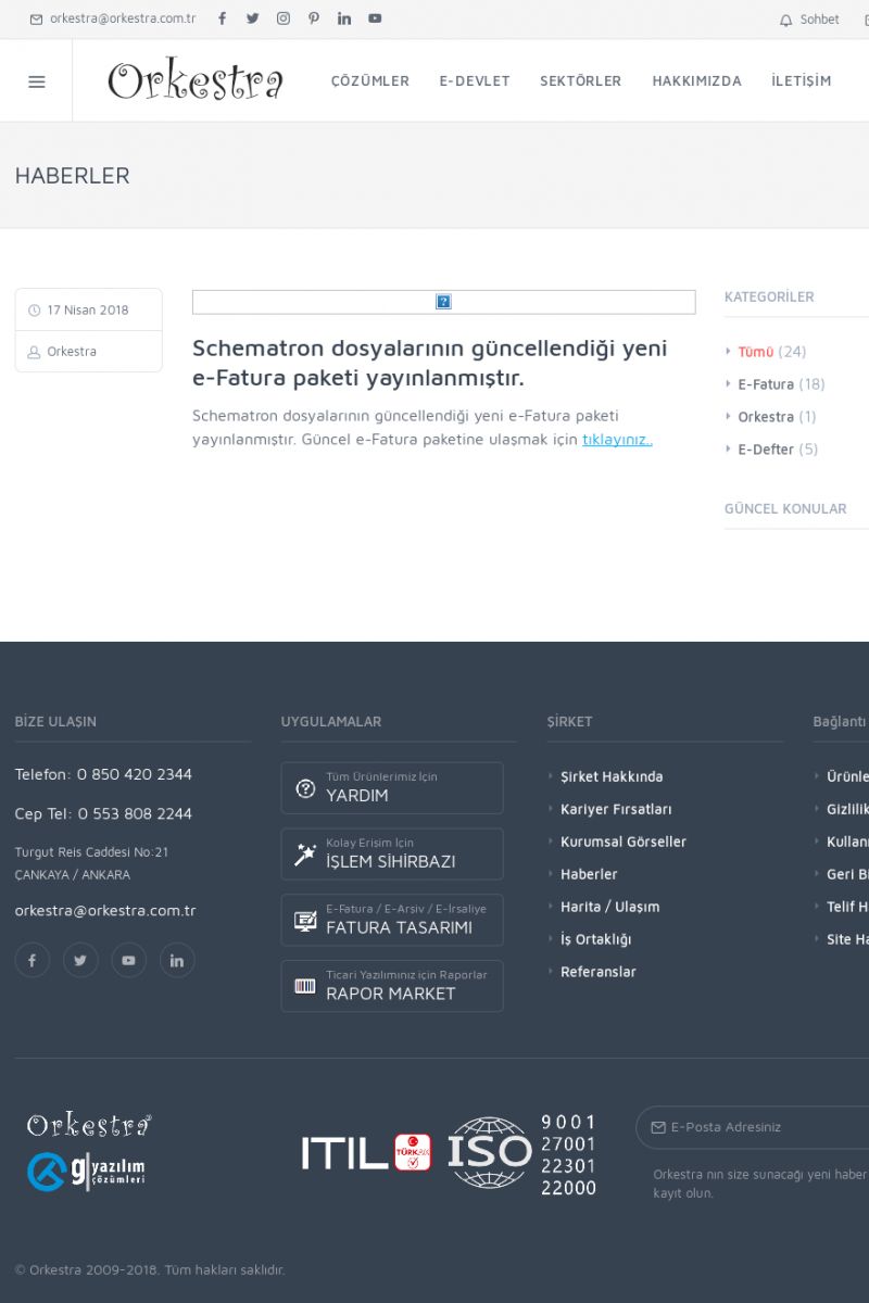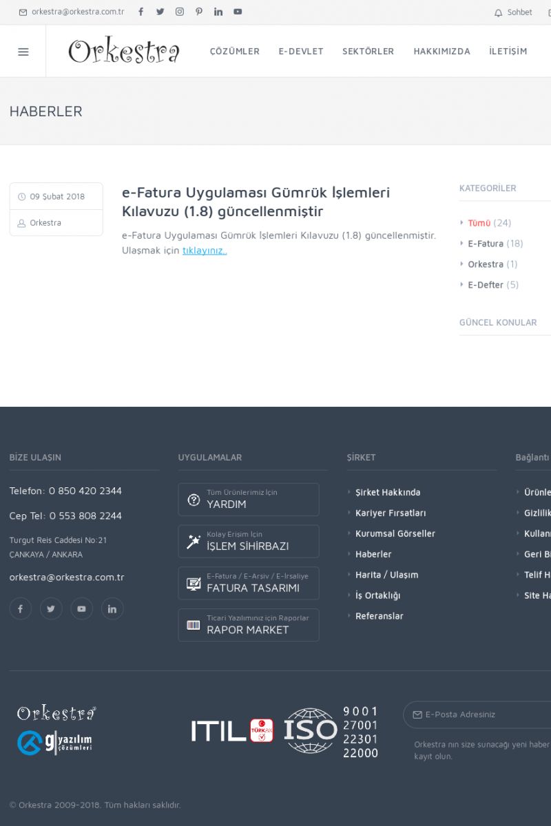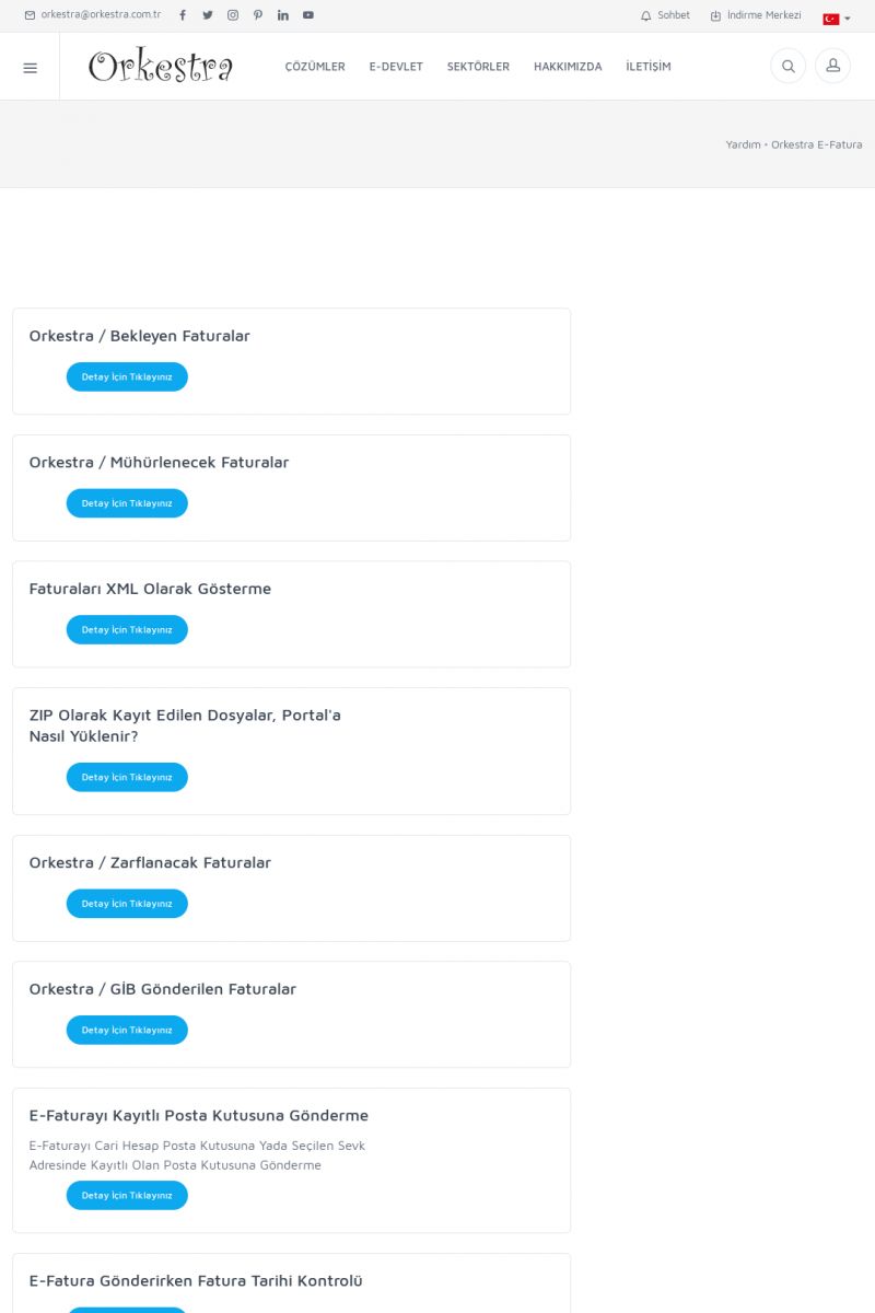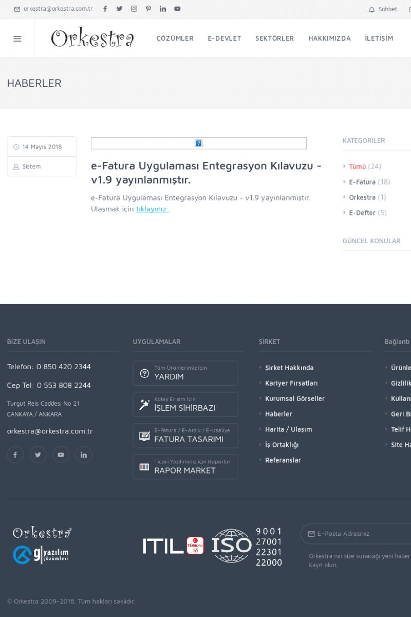 | 20 |  | Haberler / Güncel KonularBu sayfa içerisinde güncel konuları ve haberleri bulabilirsiniz. E-Fatura, E-Defter, E-Arşiv ve Orkestra Ticari Sistem ile ilgili yenilikleri buradan takip edebilirsiniz. KISA ERİŞİM KODU : XYUD / ARA20 | |