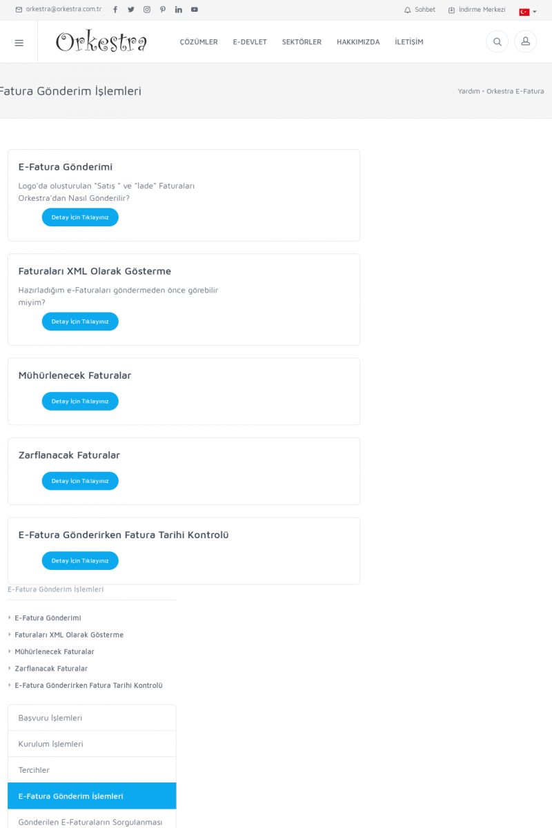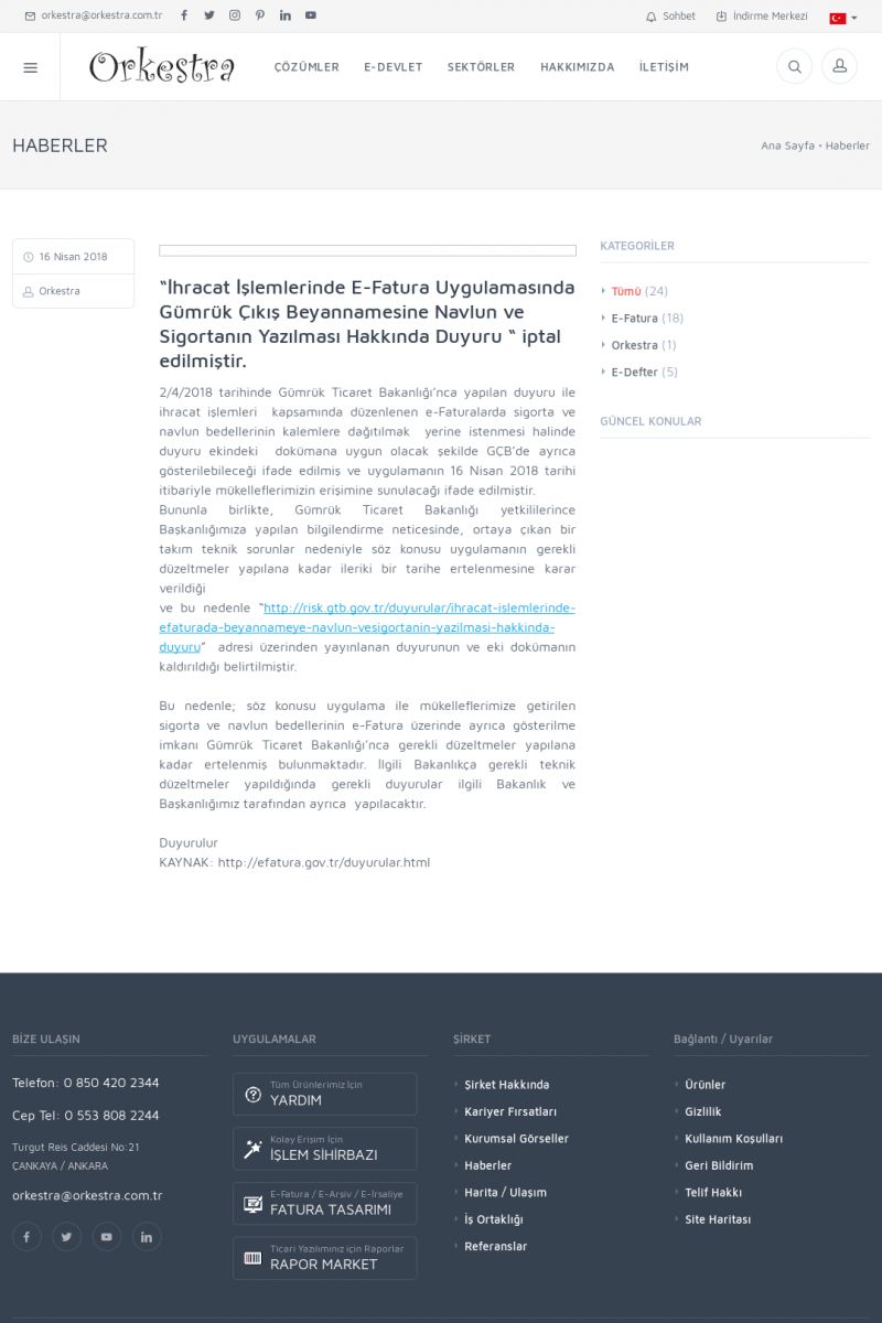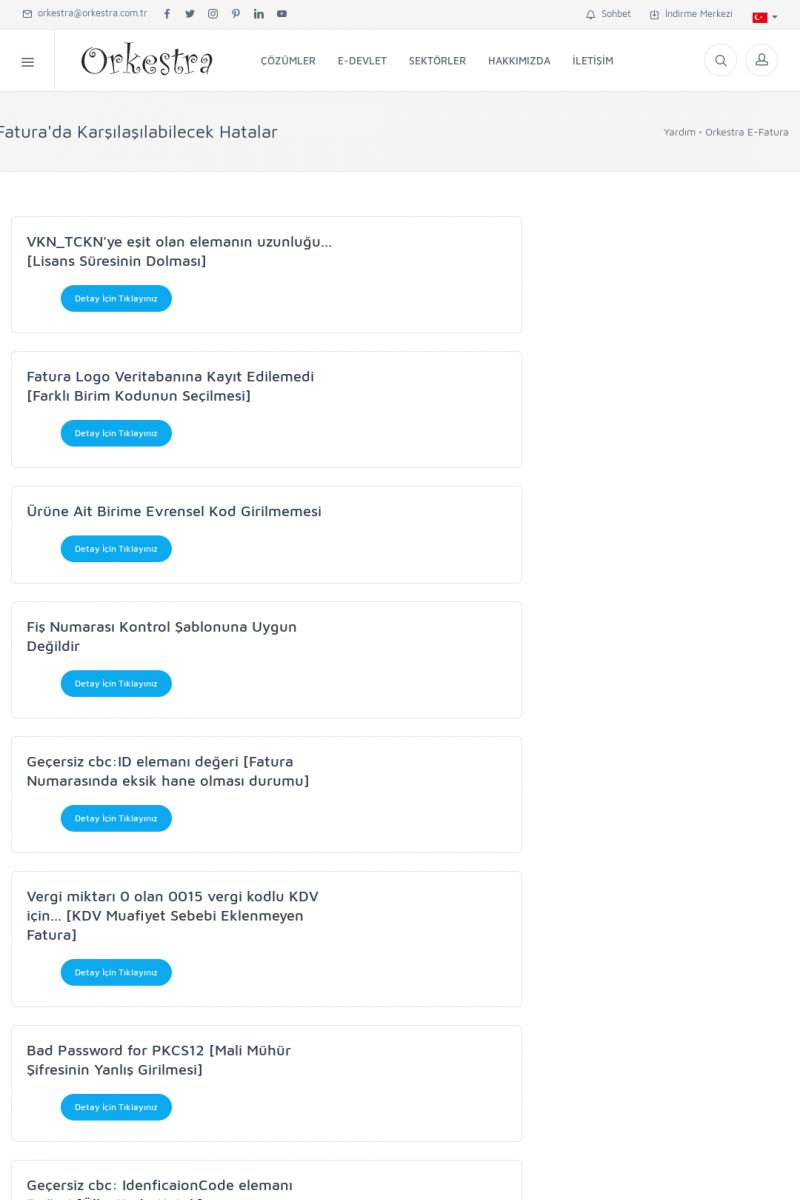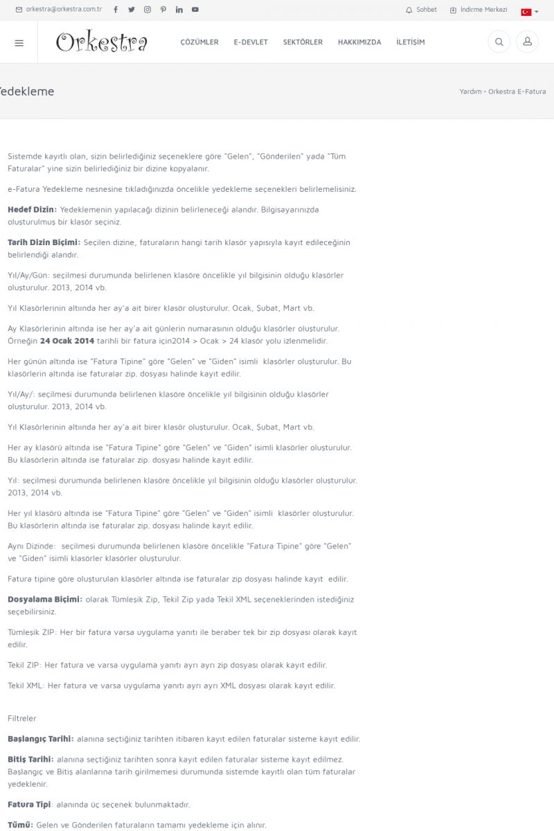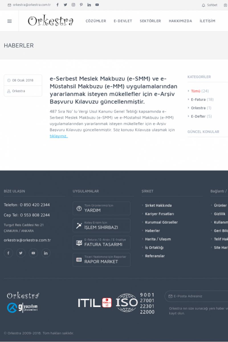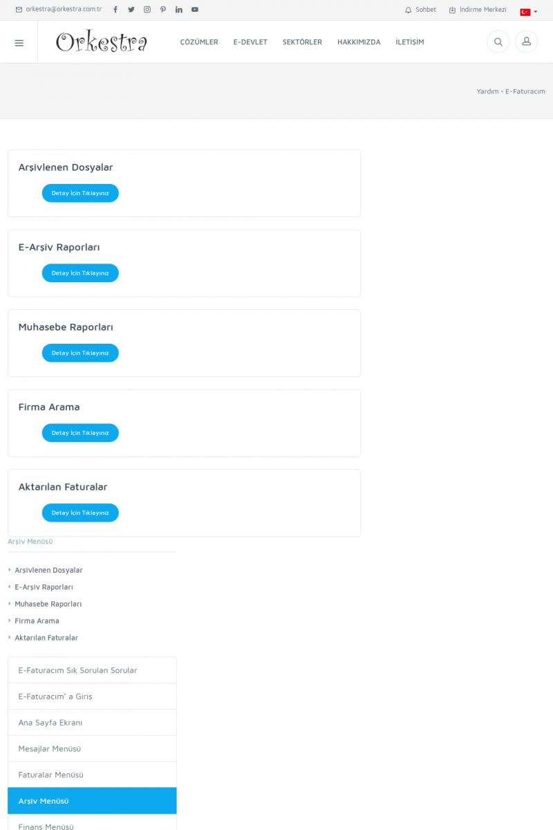 | 20 |  | Haberler / Güncel KonularBu sayfa içerisinde güncel konuları ve haberleri bulabilirsiniz. E-Fatura, E-Defter, E-Arşiv ve Orkestra Ticari Sistem ile ilgili yenilikleri buradan takip edebilirsiniz. KISA ERİŞİM KODU : XYUD / ARA20 | |