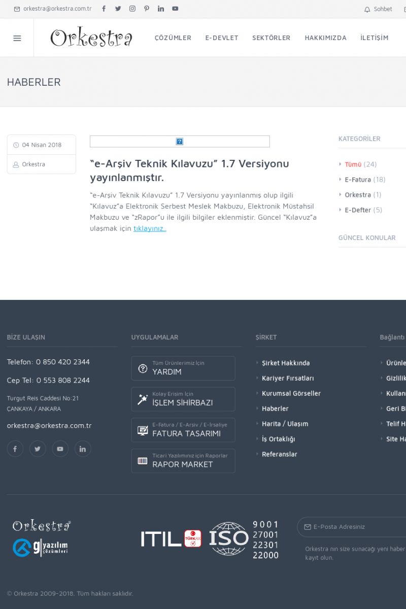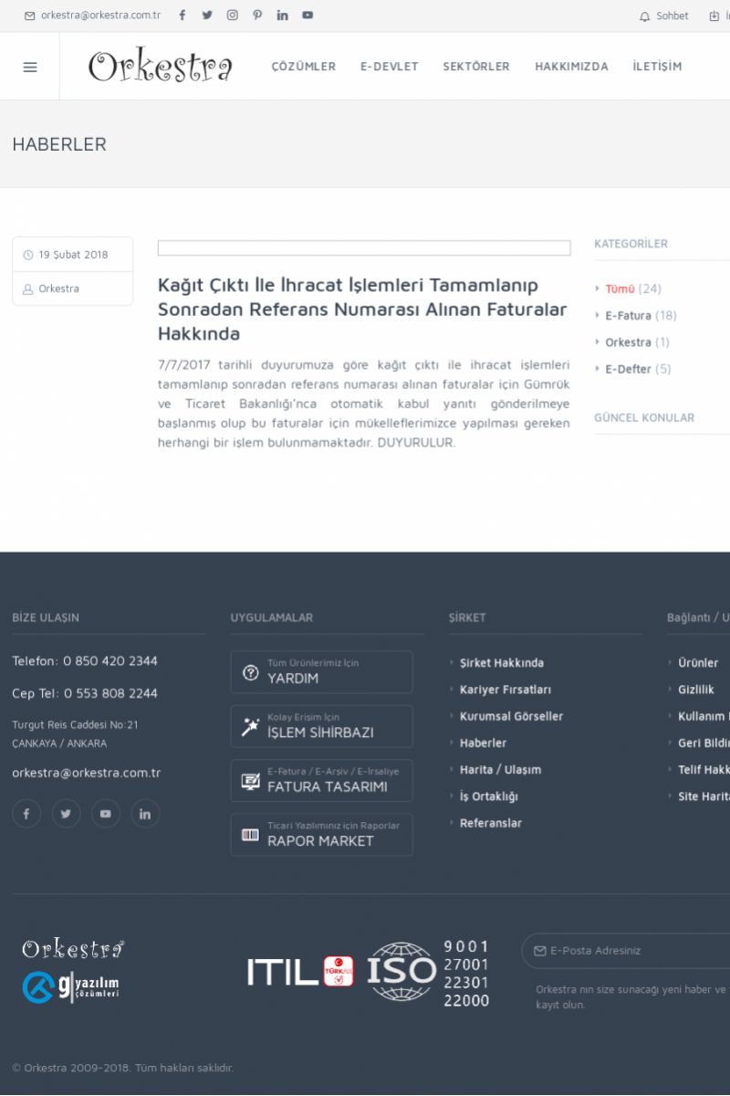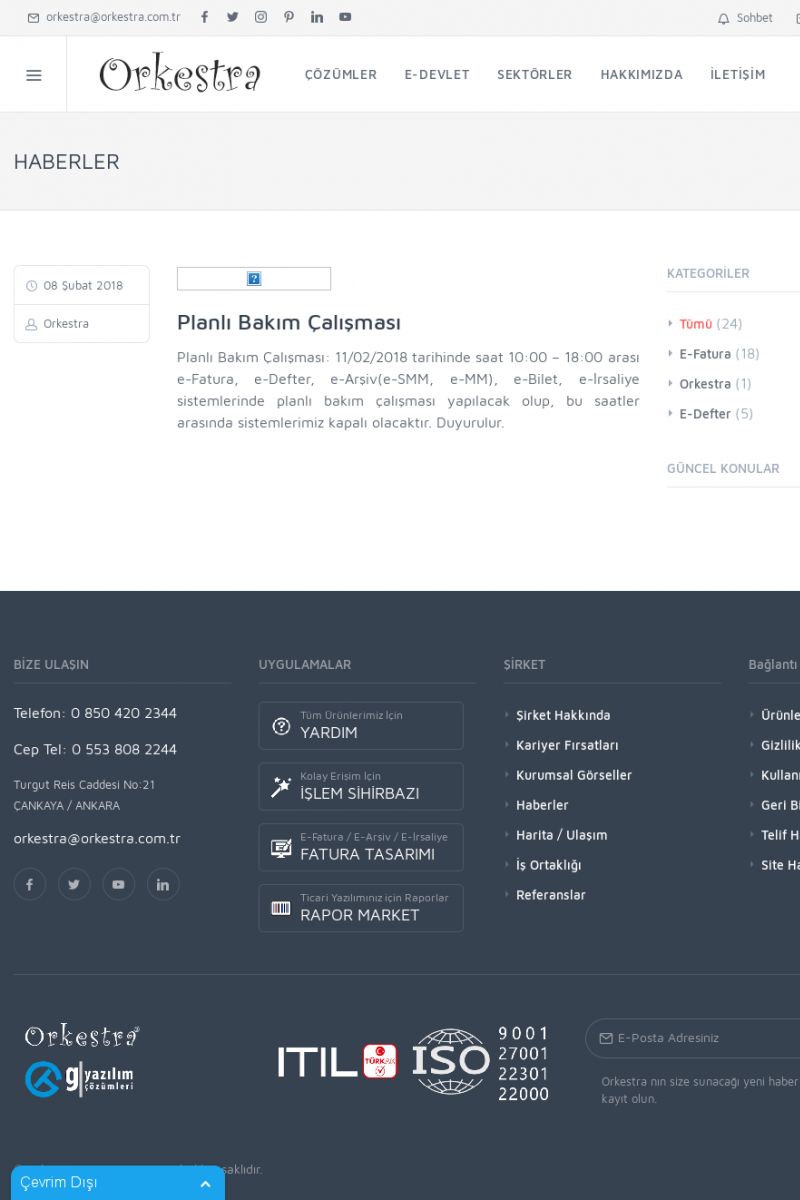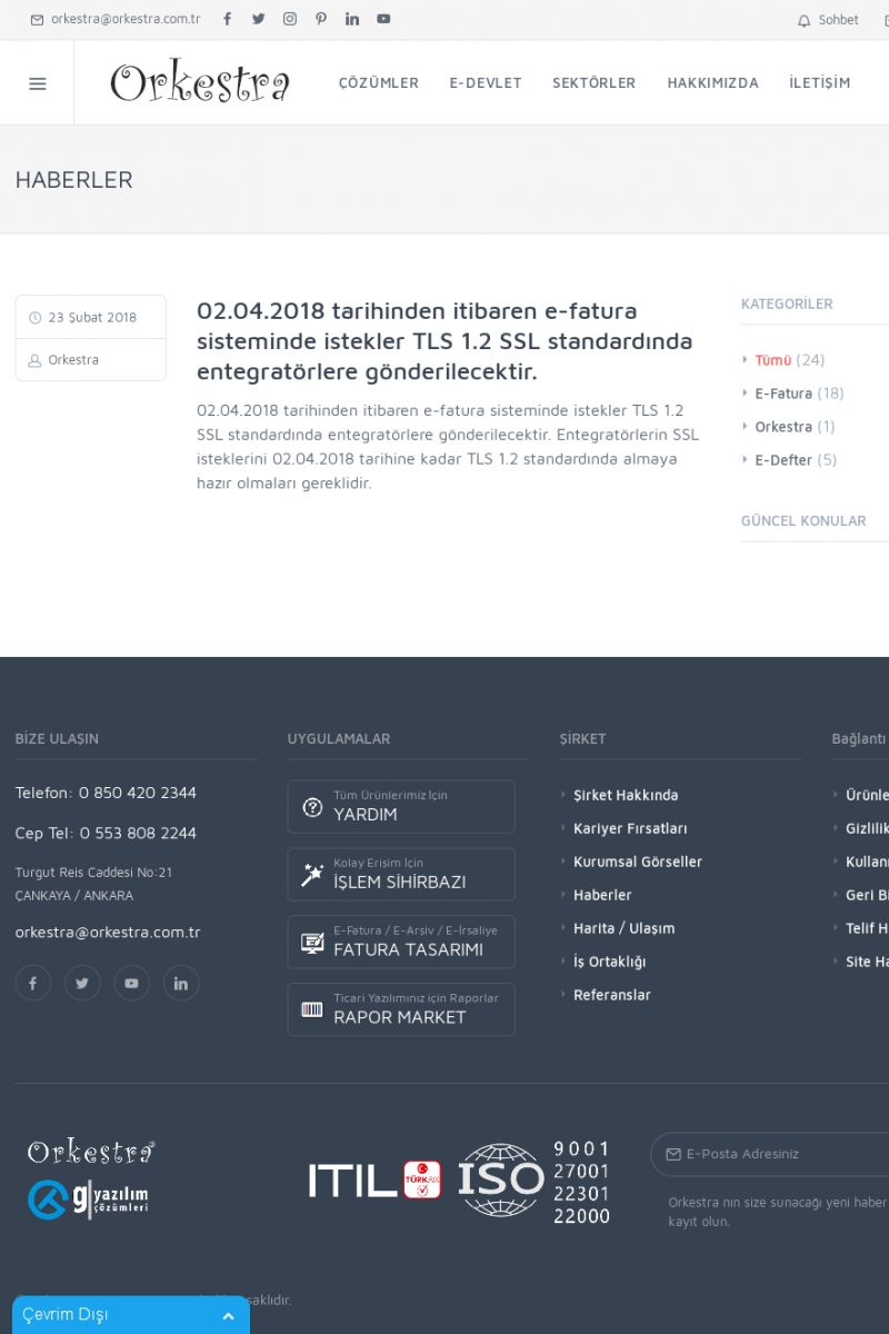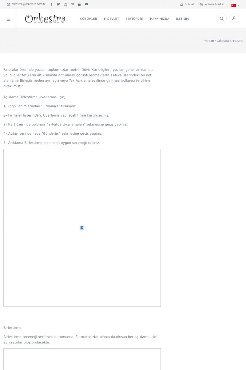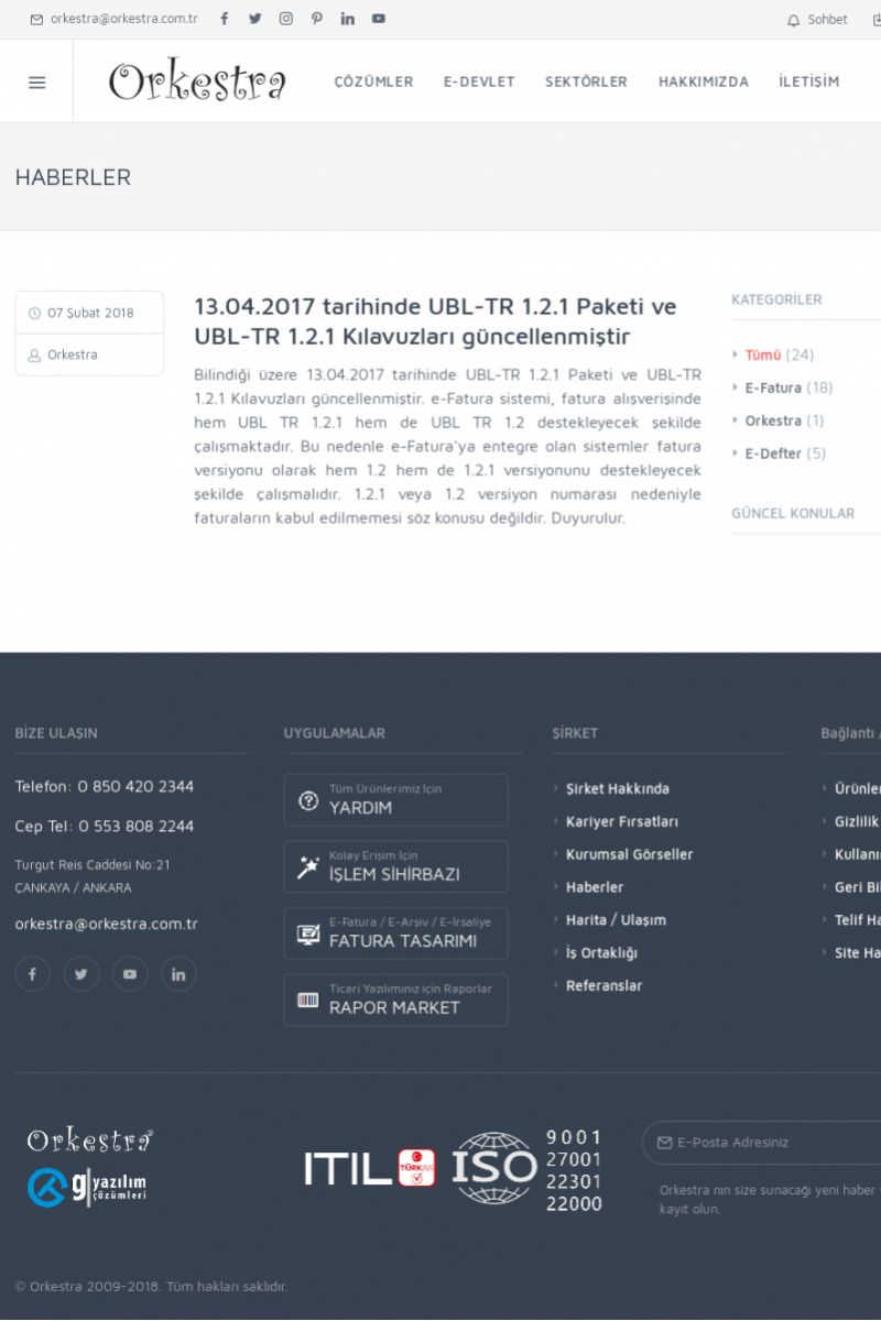 | 20 |  | Haberler / Güncel KonularBu sayfa içerisinde güncel konuları ve haberleri bulabilirsiniz. E-Fatura, E-Defter, E-Arşiv ve Orkestra Ticari Sistem ile ilgili yenilikleri buradan takip edebilirsiniz. KISA ERİŞİM KODU : XYUD / ARA20 | |