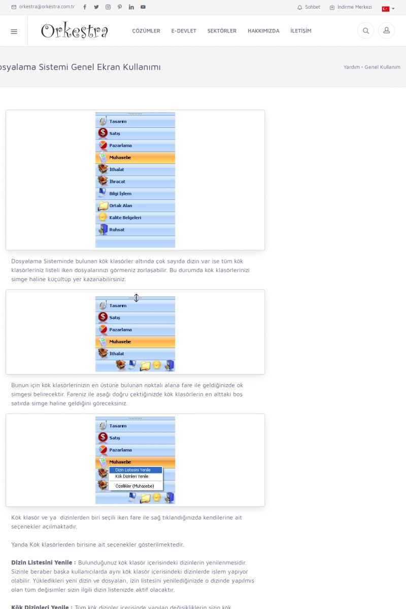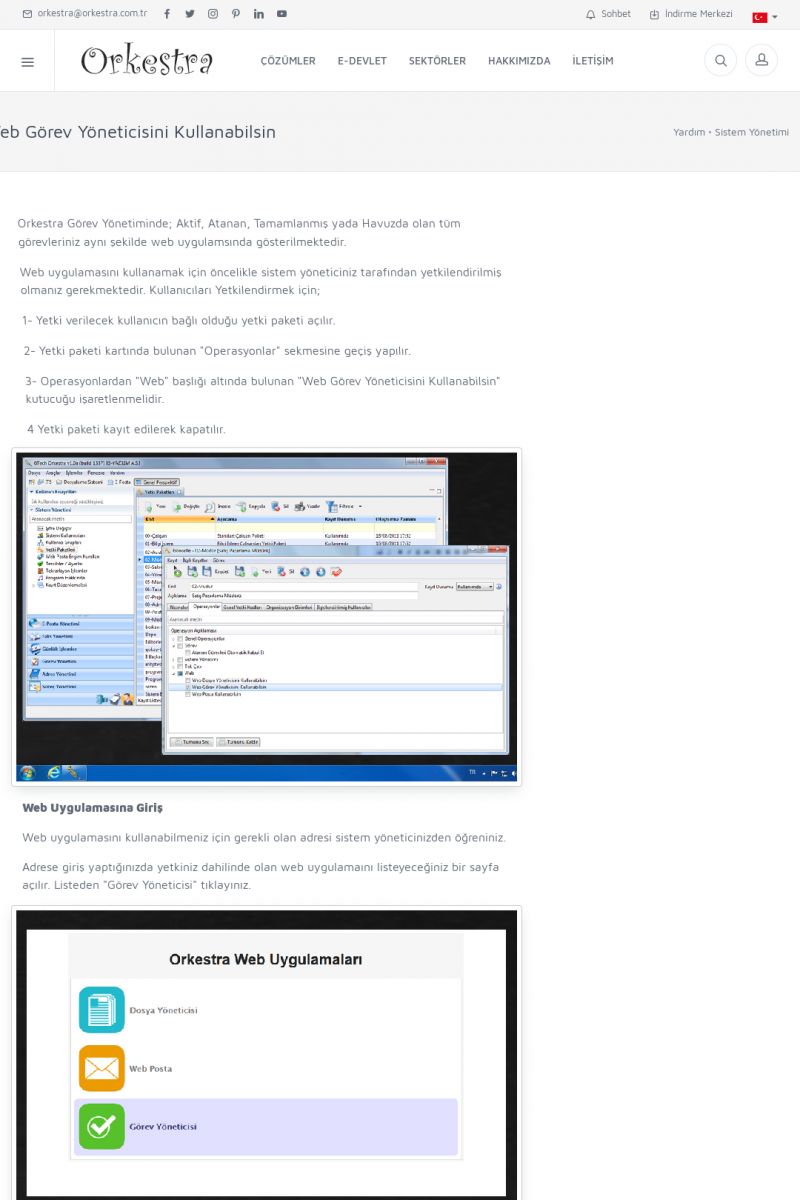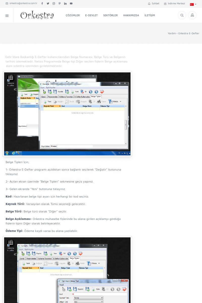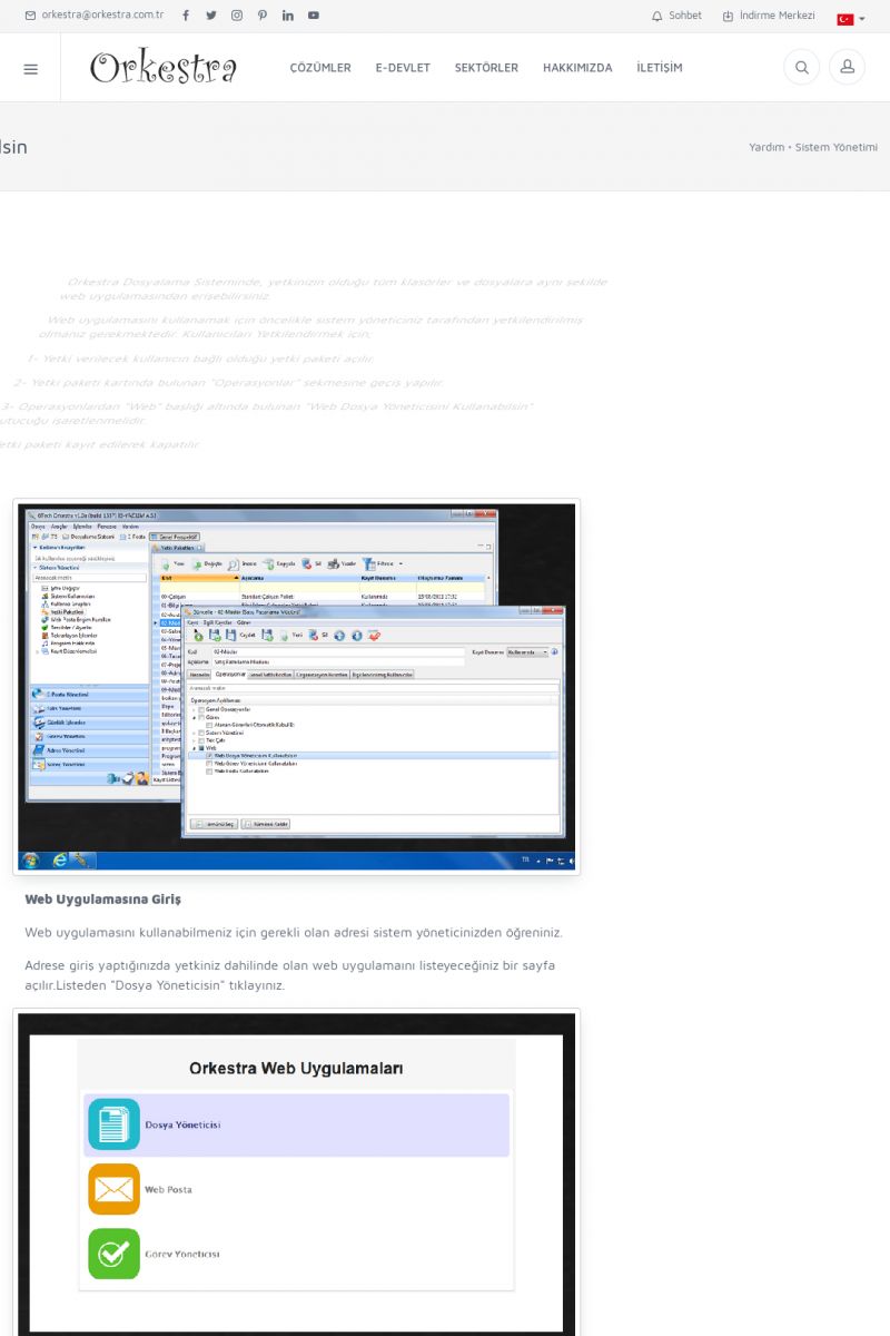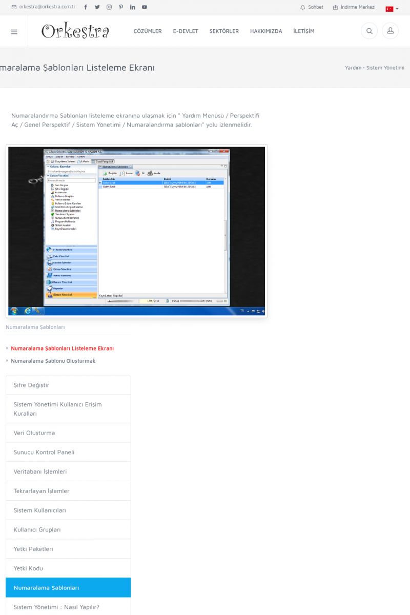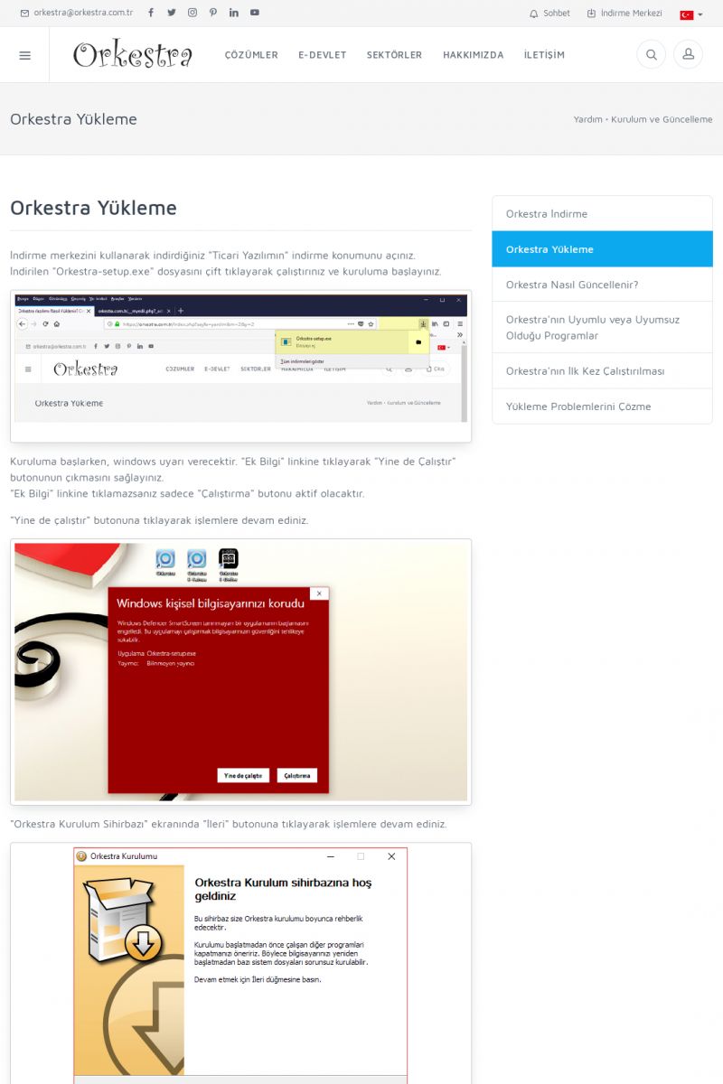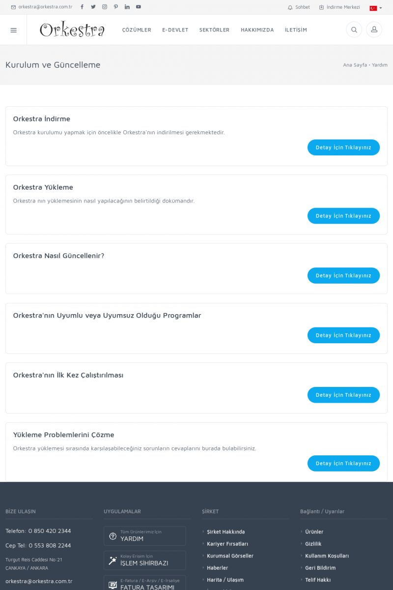 | 70 |  | Kurulum ve GüncellemeORKESTRA İNDIRME Orkestra kurulumu yapmak için öncelikle Orkestra'nın indirilmesi gerekmektedir. Detay İçin Tıklayınız [/index.php?sayfa=yardim&m=2&y=1] ORKESTRA YÜKLEME Orkestra nın yüklemesinin nasıl yapılacağının belirtildiği dokümandır. Detay İçin Tıklayınız [/index. KISA ERİŞİM KODU : XYCSI / ARA70 | |