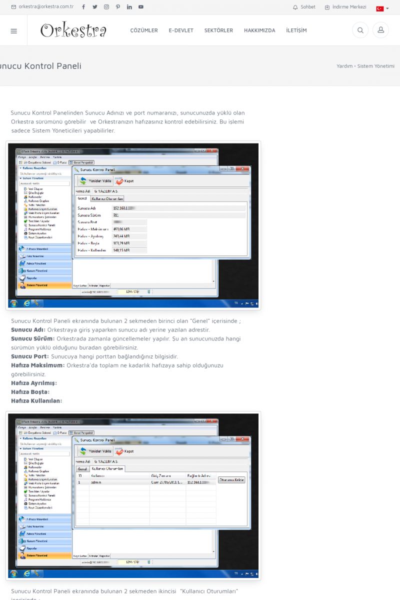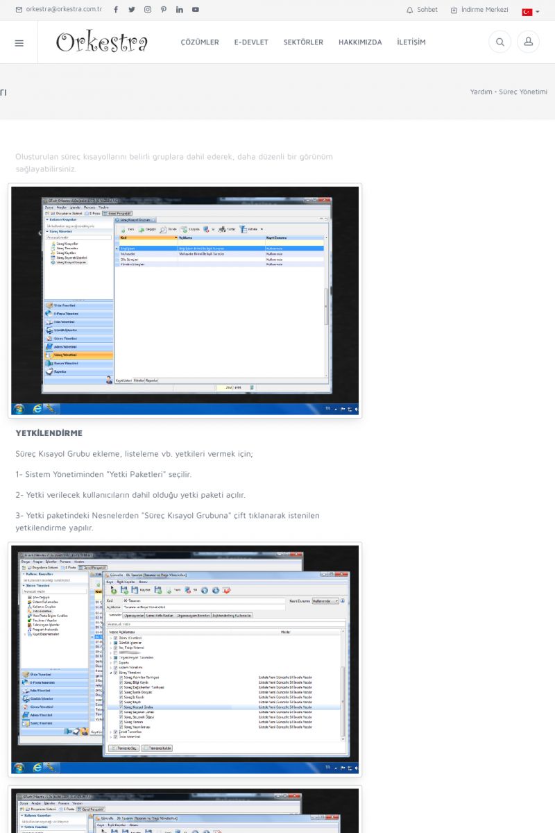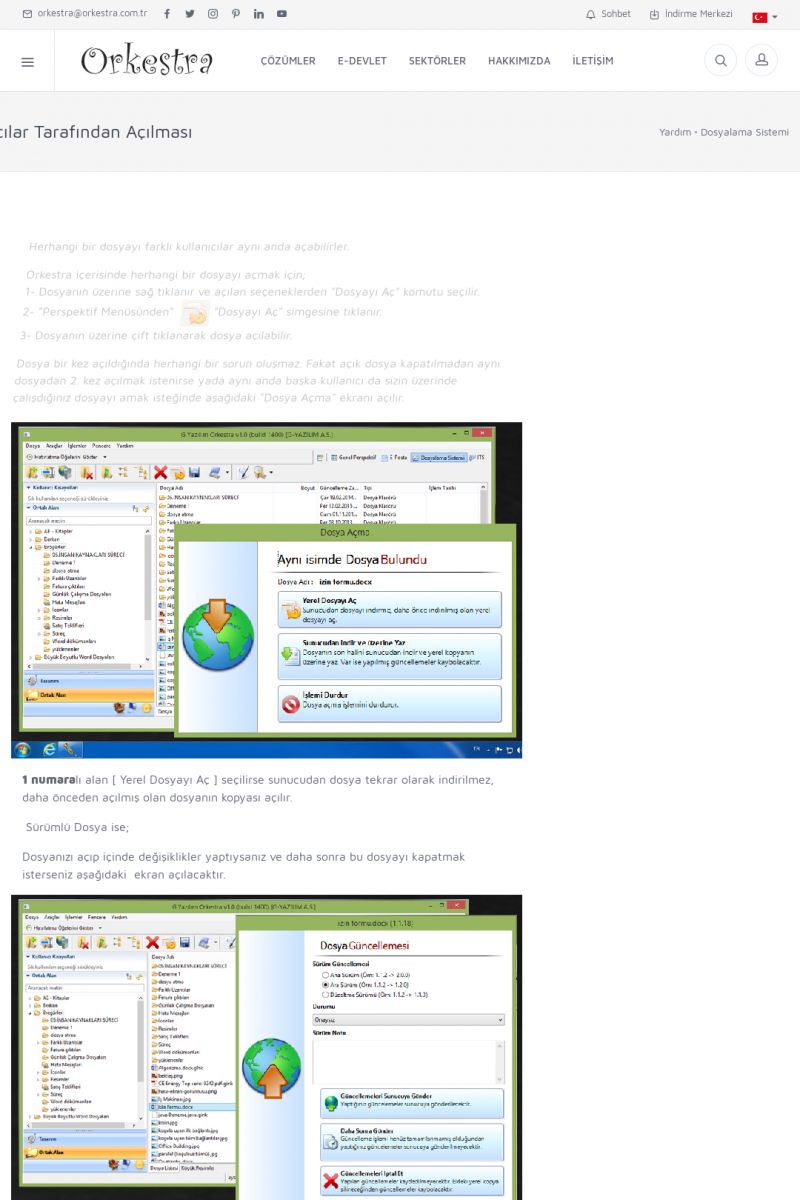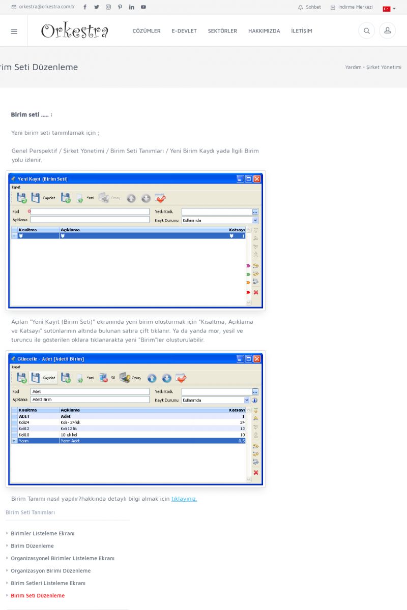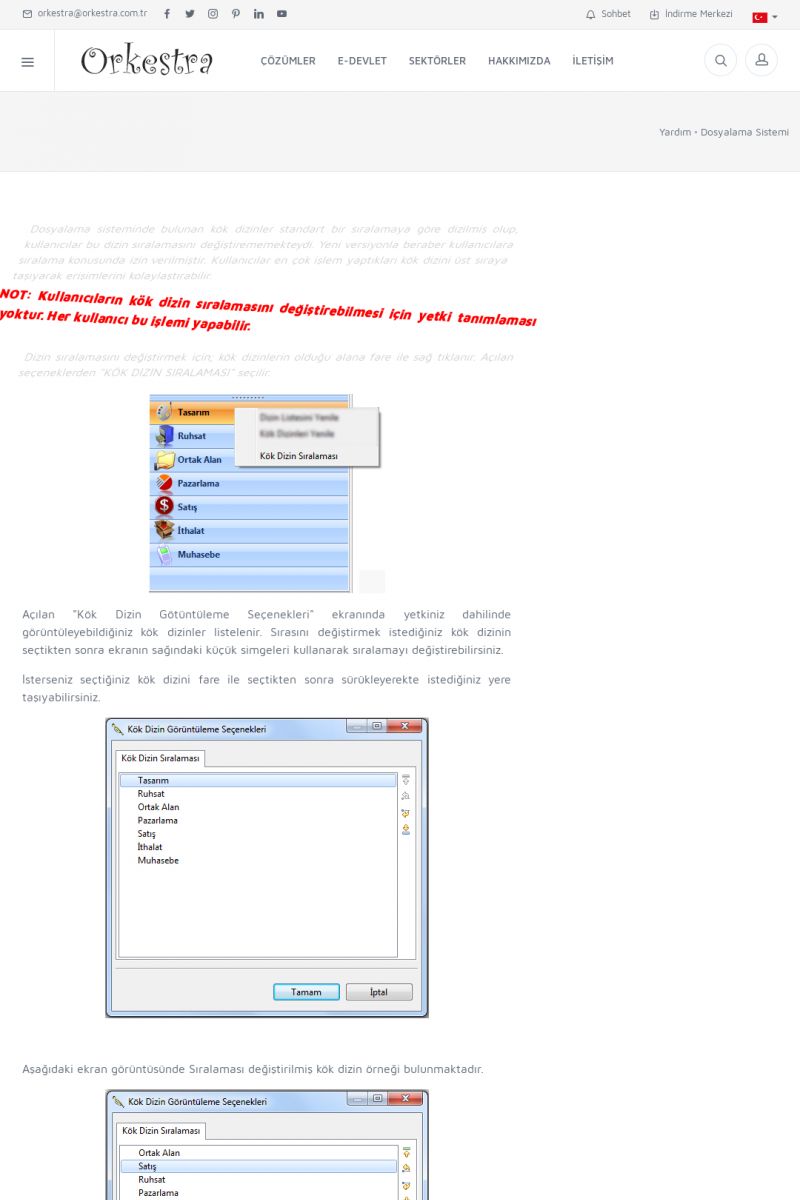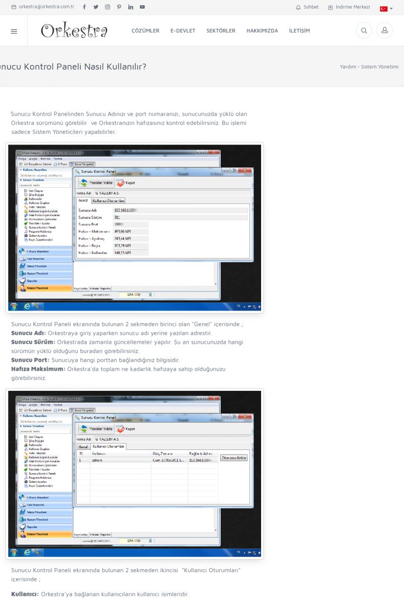 | 70 |  | Kurulum ve GüncellemeORKESTRA İNDIRME Orkestra kurulumu yapmak için öncelikle Orkestra'nın indirilmesi gerekmektedir. Detay İçin Tıklayınız [/index.php?sayfa=yardim&m=2&y=1] ORKESTRA YÜKLEME Orkestra nın yüklemesinin nasıl yapılacağının belirtildiği dokümandır. Detay İçin Tıklayınız [/index. KISA ERİŞİM KODU : XYCSI / ARA70 | |