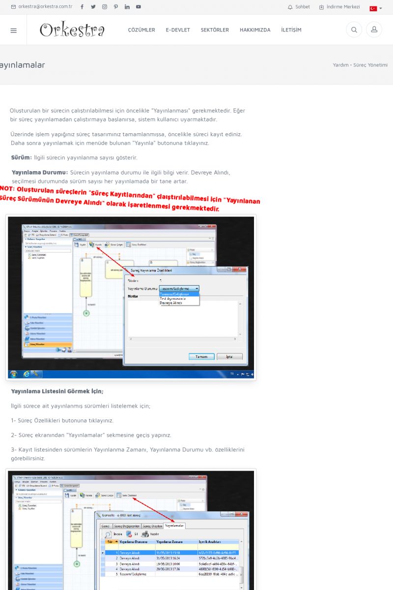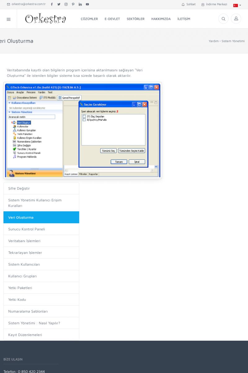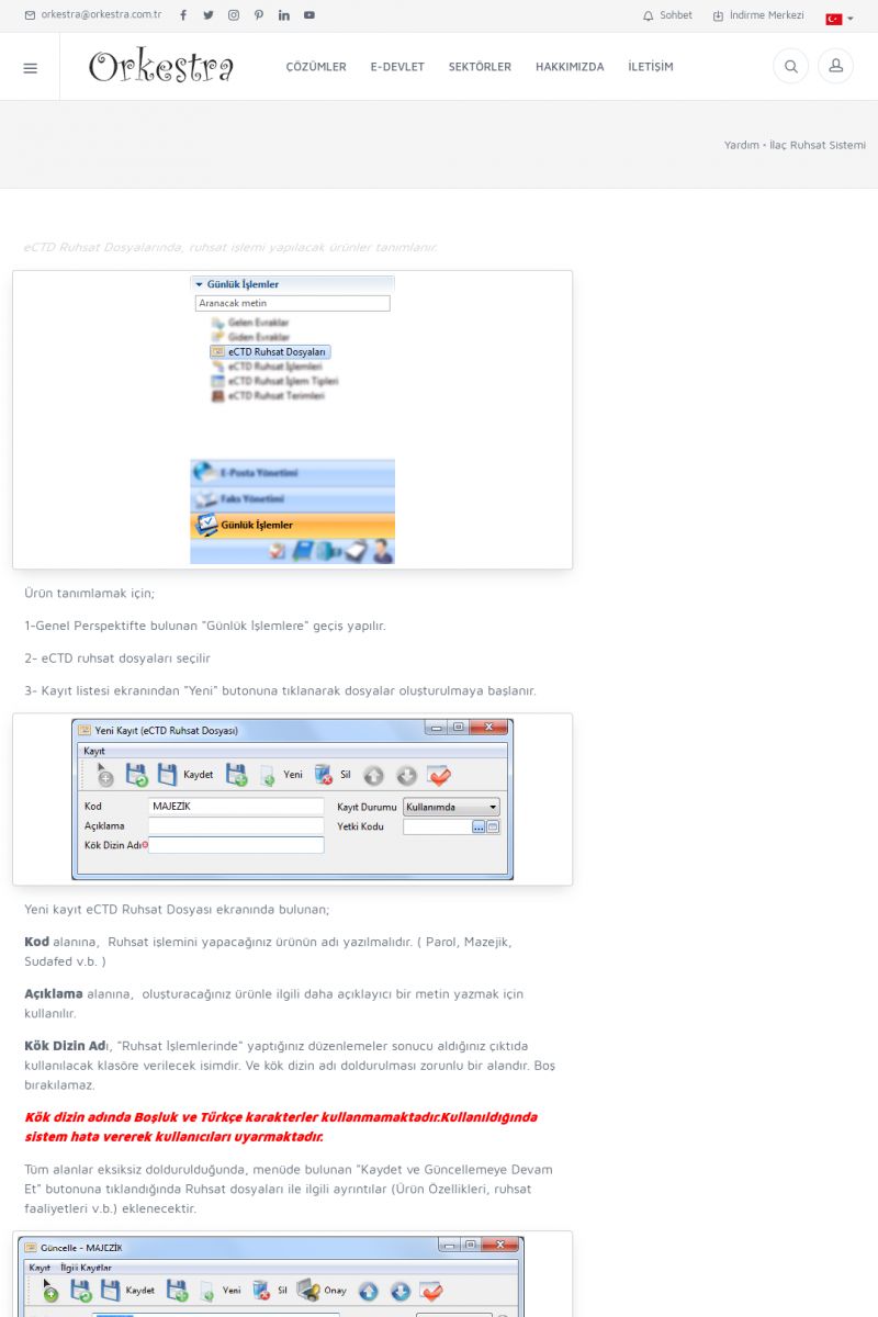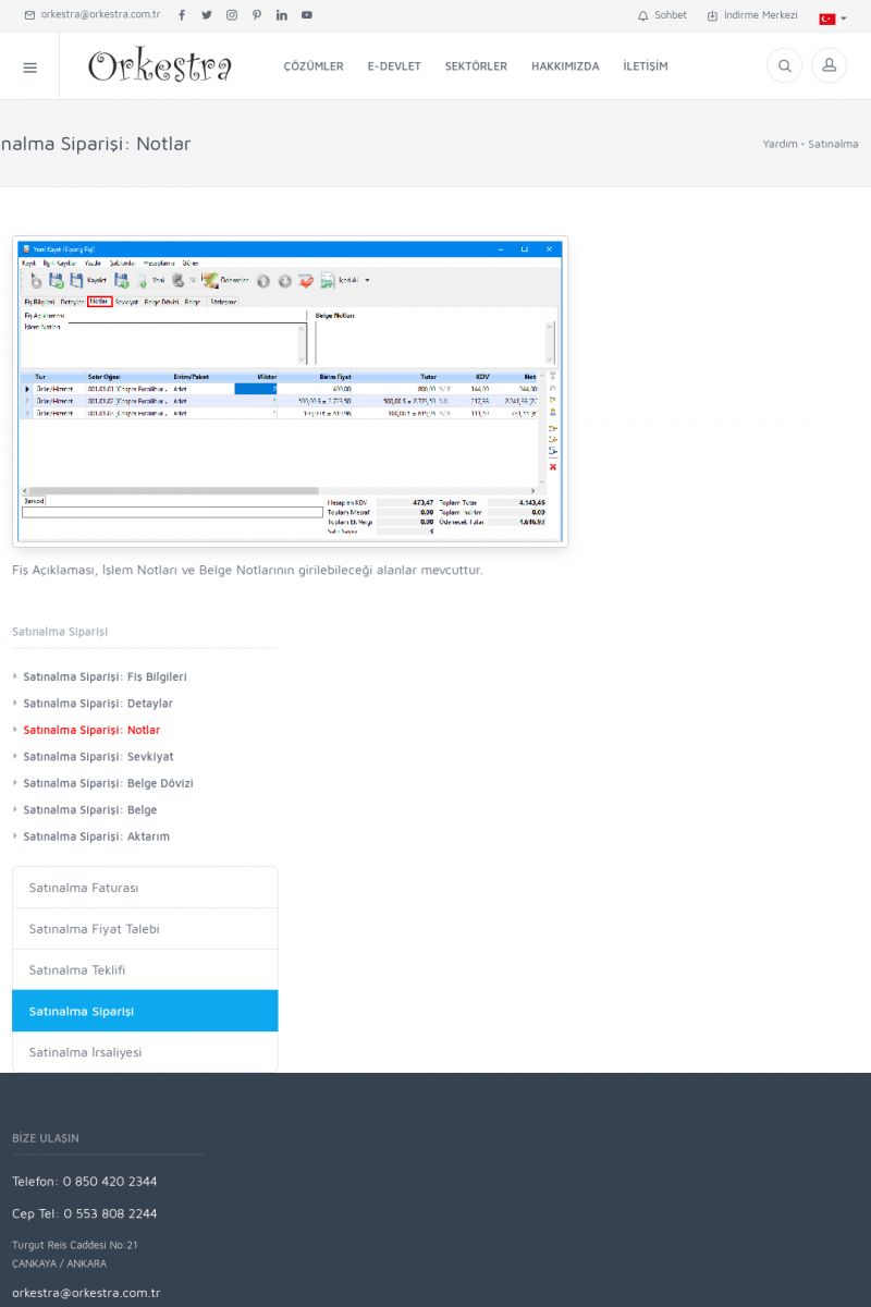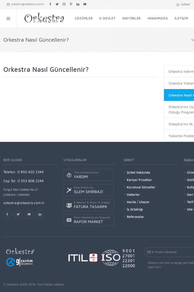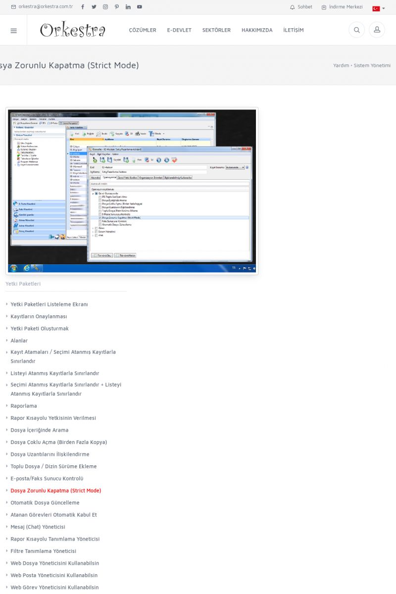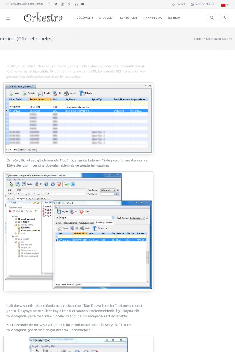 | 70 |  | Kurulum ve GüncellemeORKESTRA İNDIRME Orkestra kurulumu yapmak için öncelikle Orkestra'nın indirilmesi gerekmektedir. Detay İçin Tıklayınız [/index.php?sayfa=yardim&m=2&y=1] ORKESTRA YÜKLEME Orkestra nın yüklemesinin nasıl yapılacağının belirtildiği dokümandır. Detay İçin Tıklayınız [/index. KISA ERİŞİM KODU : XYCSI / ARA70 | |