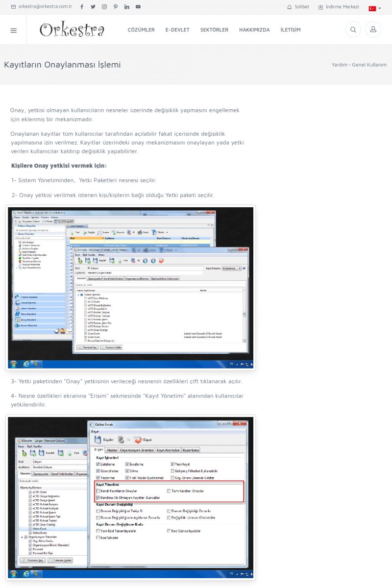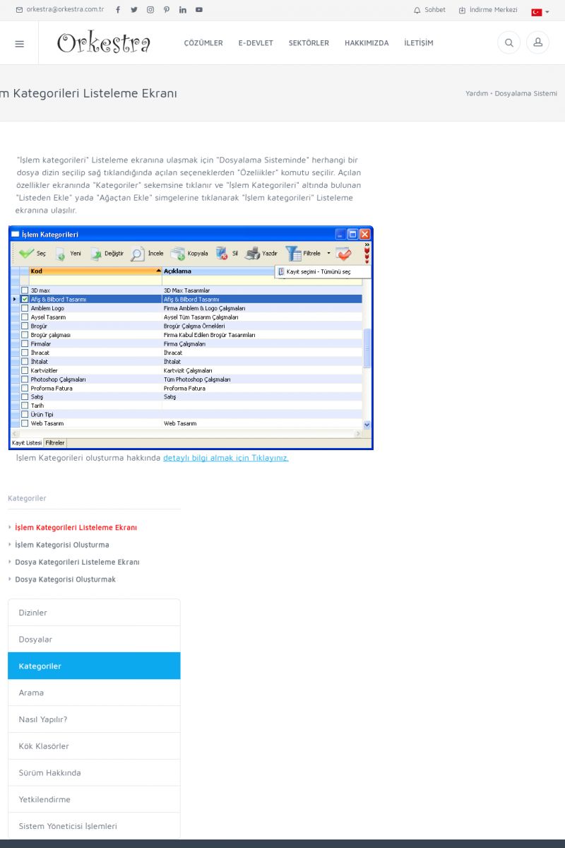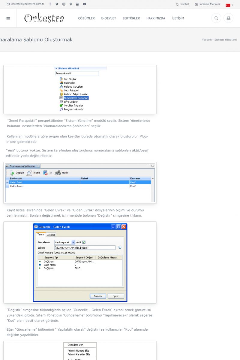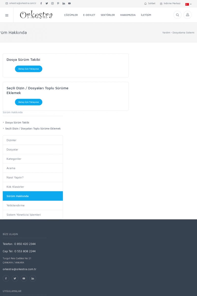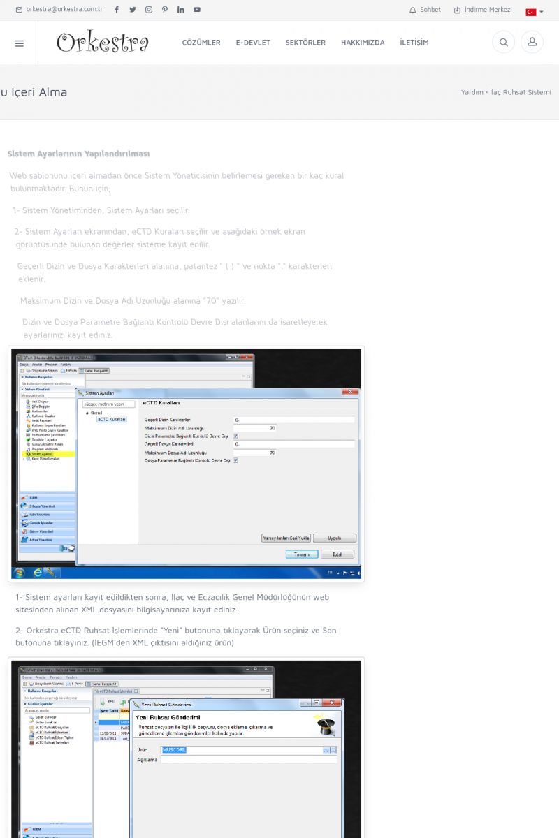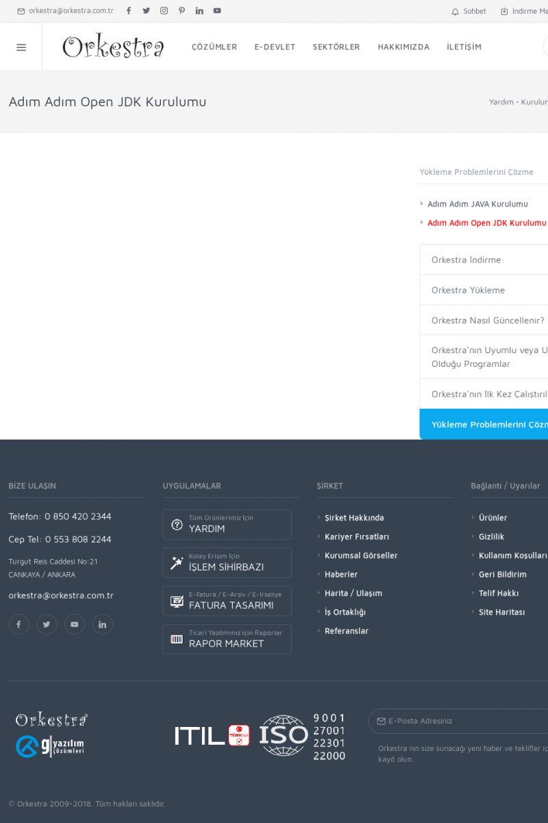 | 70 |  | Kurulum ve GüncellemeORKESTRA İNDIRME Orkestra kurulumu yapmak için öncelikle Orkestra'nın indirilmesi gerekmektedir. Detay İçin Tıklayınız [/index.php?sayfa=yardim&m=2&y=1] ORKESTRA YÜKLEME Orkestra nın yüklemesinin nasıl yapılacağının belirtildiği dokümandır. Detay İçin Tıklayınız [/index. KISA ERİŞİM KODU : XYCSI / ARA70 | |