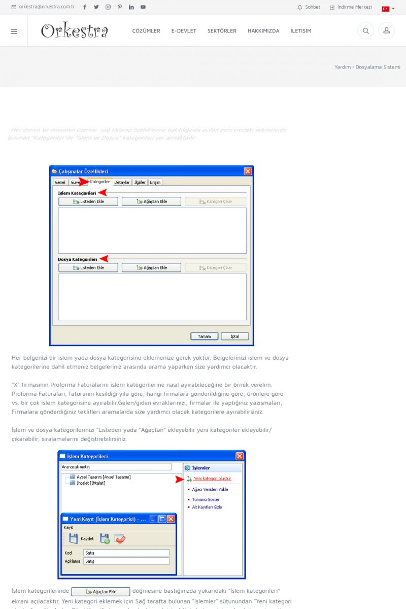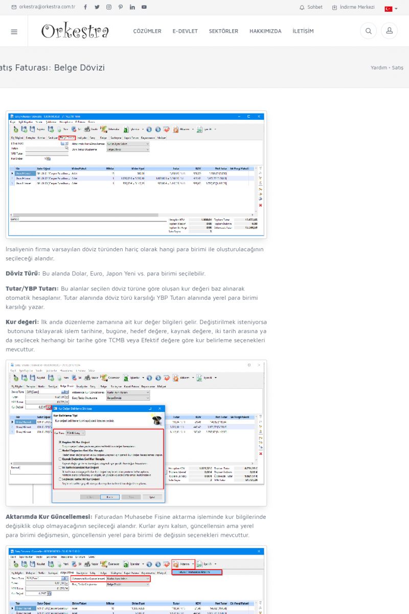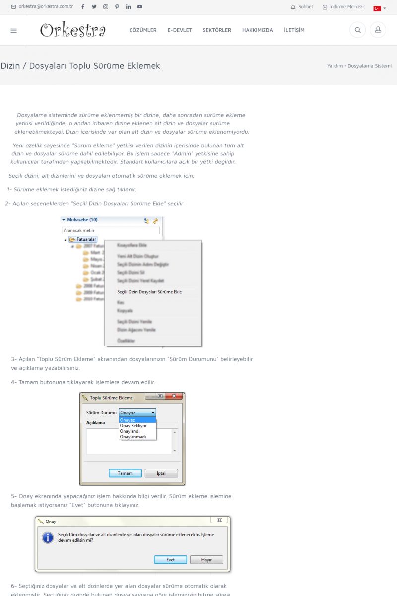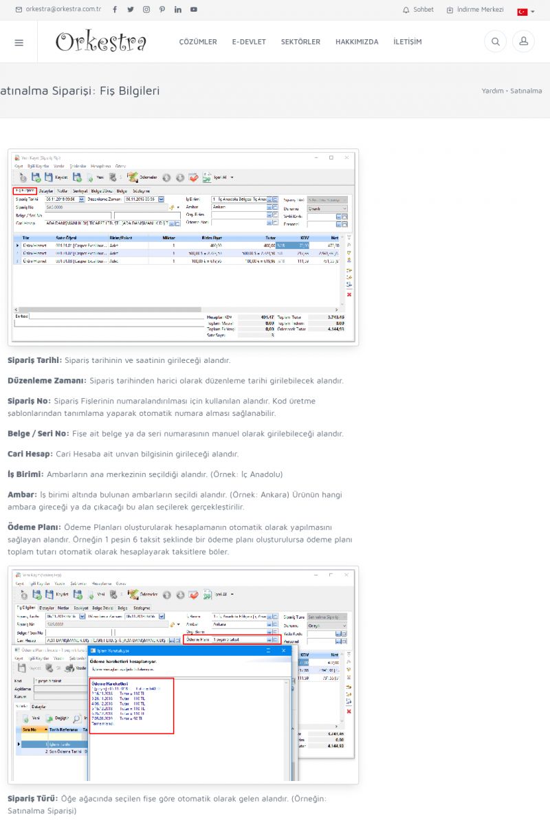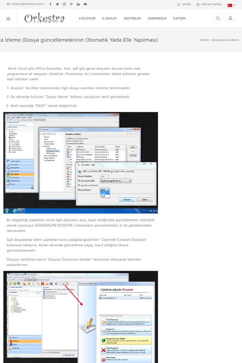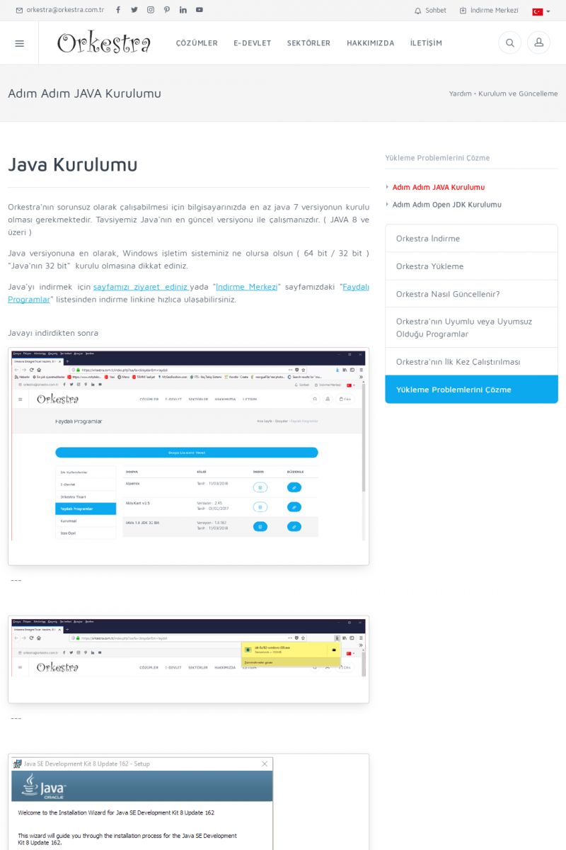 | 70 |  | Kurulum ve GüncellemeORKESTRA İNDIRME Orkestra kurulumu yapmak için öncelikle Orkestra'nın indirilmesi gerekmektedir. Detay İçin Tıklayınız [/index.php?sayfa=yardim&m=2&y=1] ORKESTRA YÜKLEME Orkestra nın yüklemesinin nasıl yapılacağının belirtildiği dokümandır. Detay İçin Tıklayınız [/index. KISA ERİŞİM KODU : XYCSI / ARA70 | |