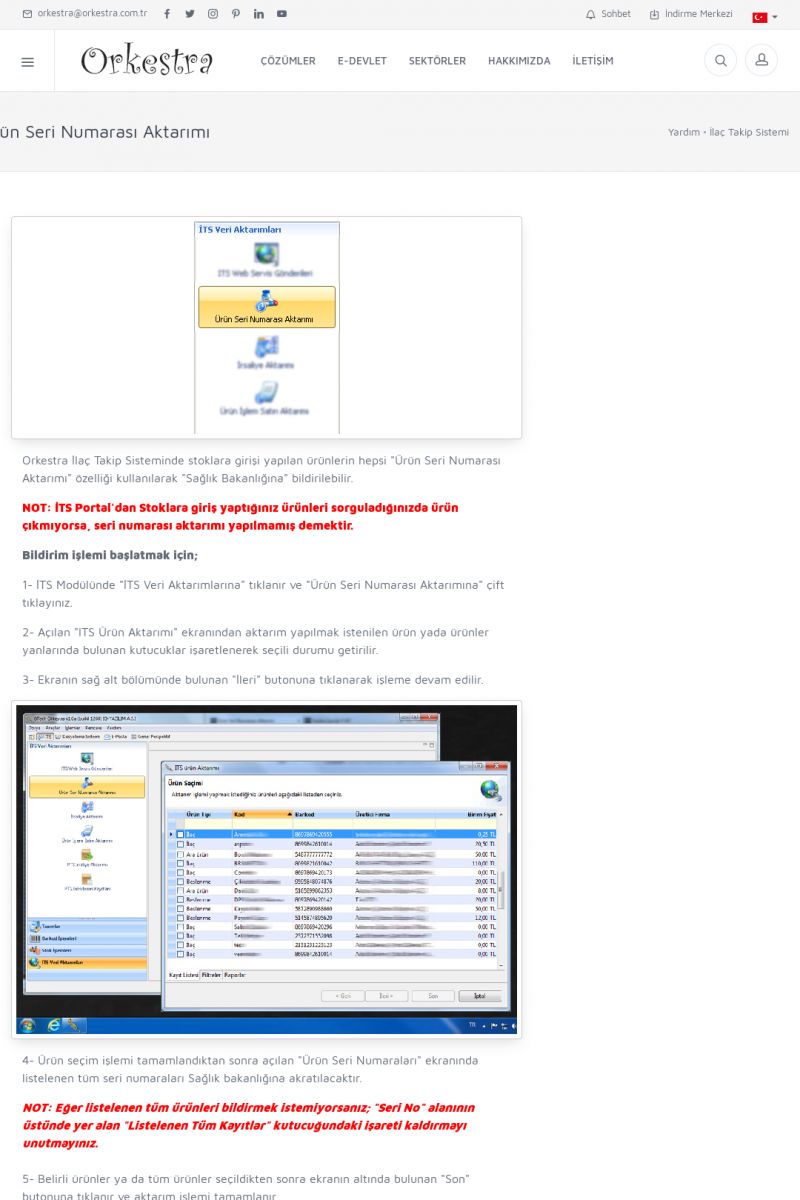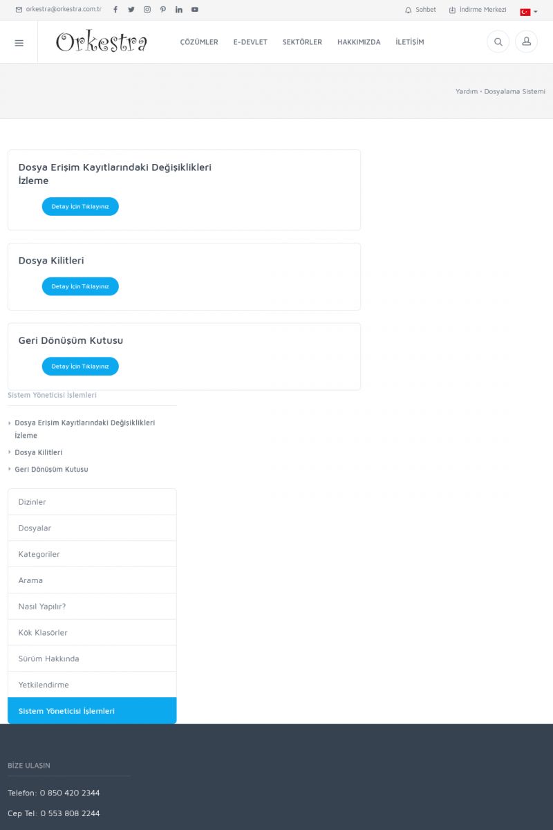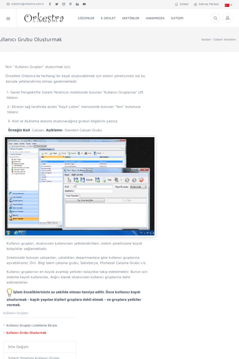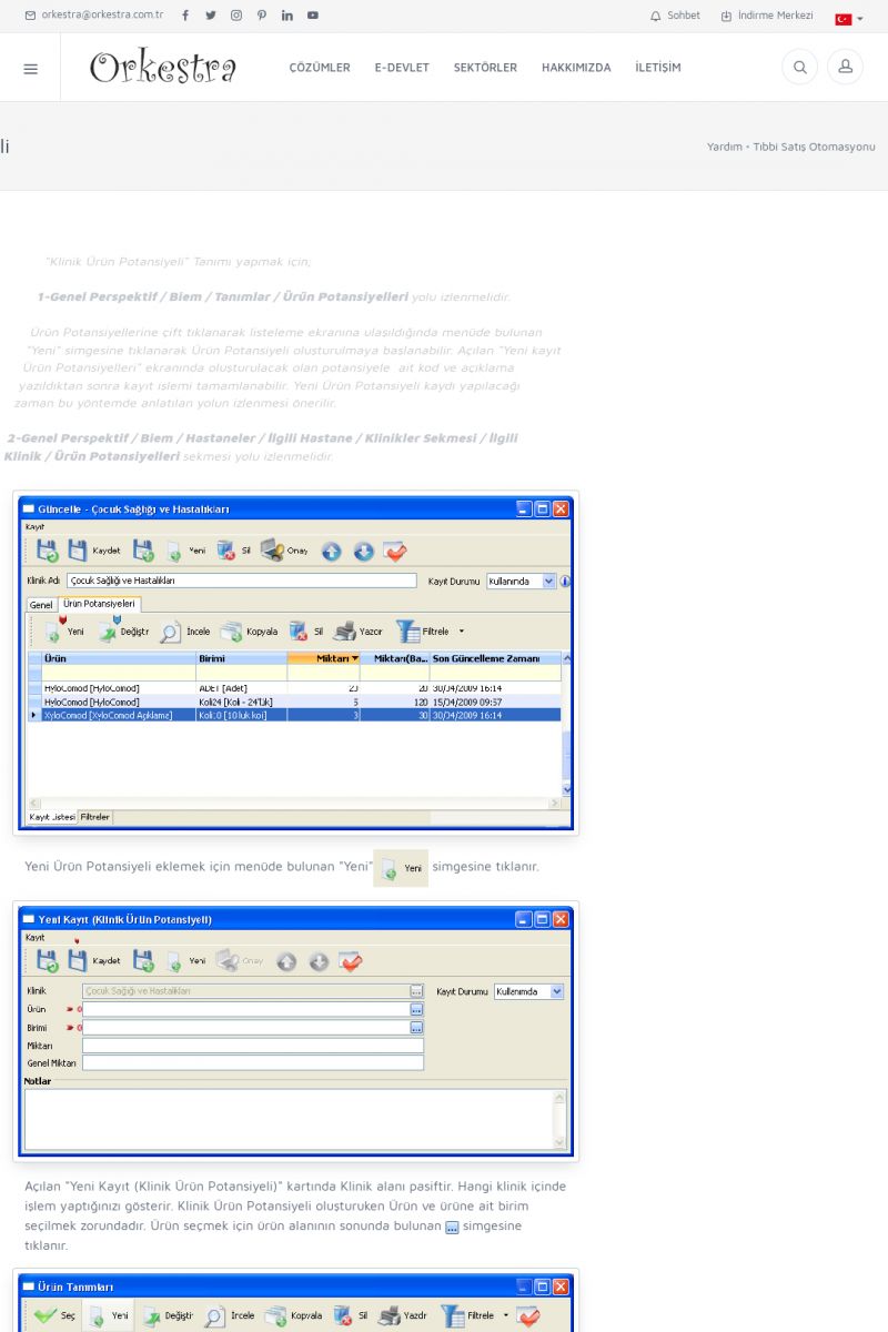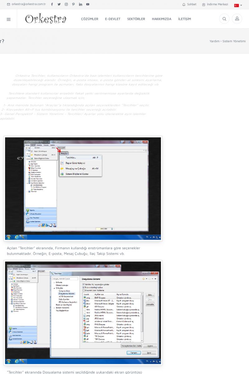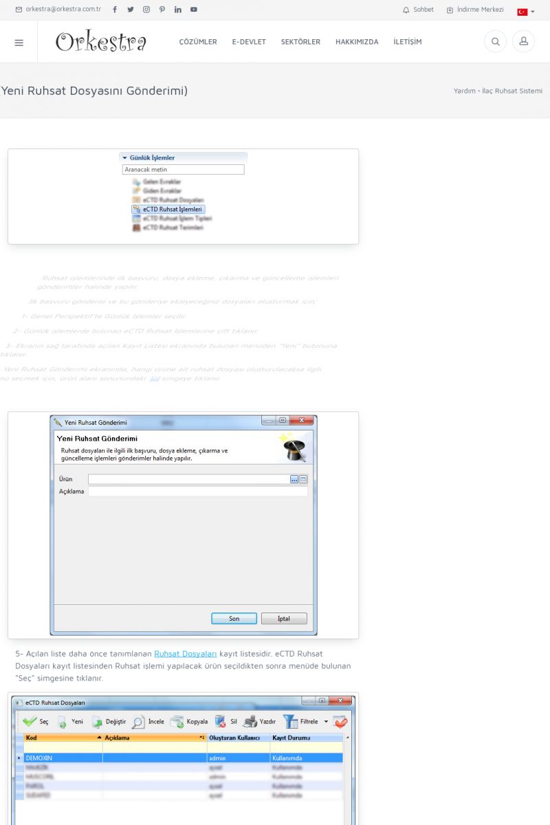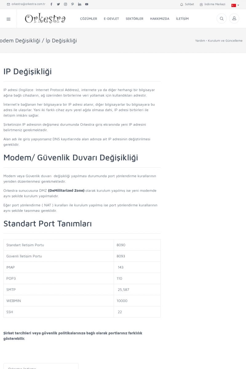 | 70 |  | Kurulum ve GüncellemeORKESTRA İNDIRME Orkestra kurulumu yapmak için öncelikle Orkestra'nın indirilmesi gerekmektedir. Detay İçin Tıklayınız [/index.php?sayfa=yardim&m=2&y=1] ORKESTRA YÜKLEME Orkestra nın yüklemesinin nasıl yapılacağının belirtildiği dokümandır. Detay İçin Tıklayınız [/index. KISA ERİŞİM KODU : XYCSI / ARA70 | |