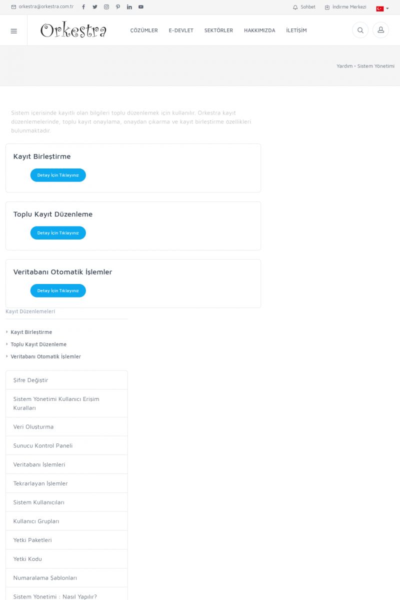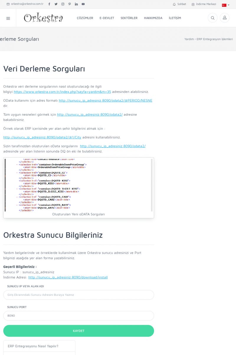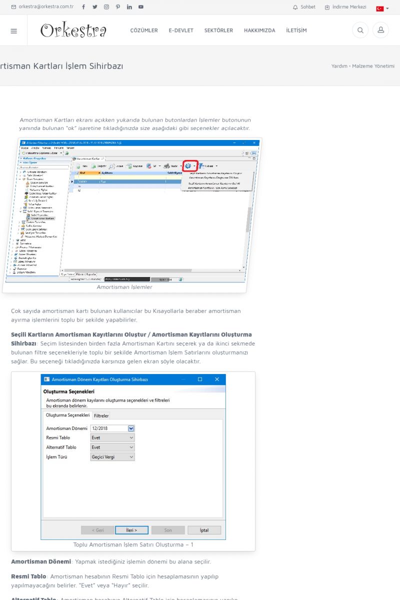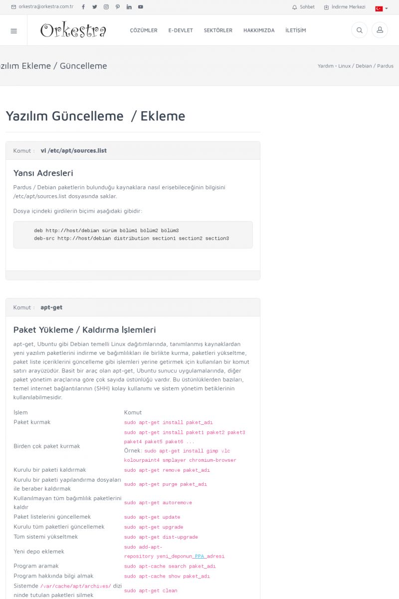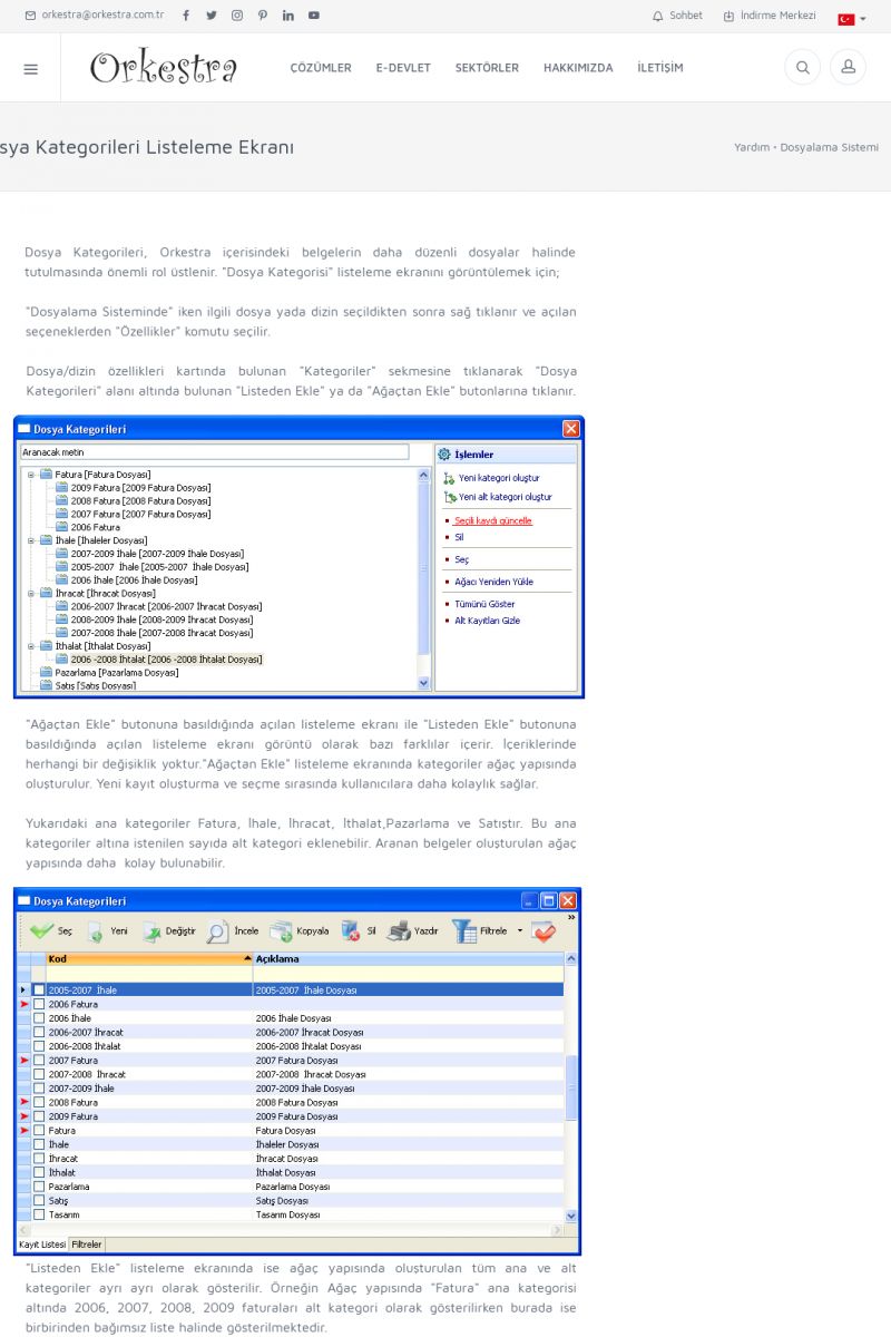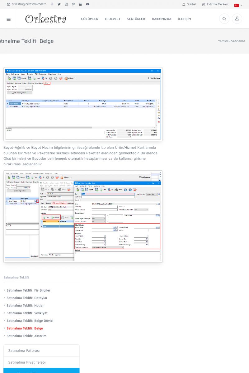 | 70 |  | Kurulum ve GüncellemeORKESTRA İNDIRME Orkestra kurulumu yapmak için öncelikle Orkestra'nın indirilmesi gerekmektedir. Detay İçin Tıklayınız [/index.php?sayfa=yardim&m=2&y=1] ORKESTRA YÜKLEME Orkestra nın yüklemesinin nasıl yapılacağının belirtildiği dokümandır. Detay İçin Tıklayınız [/index. KISA ERİŞİM KODU : XYCSI / ARA70 | |