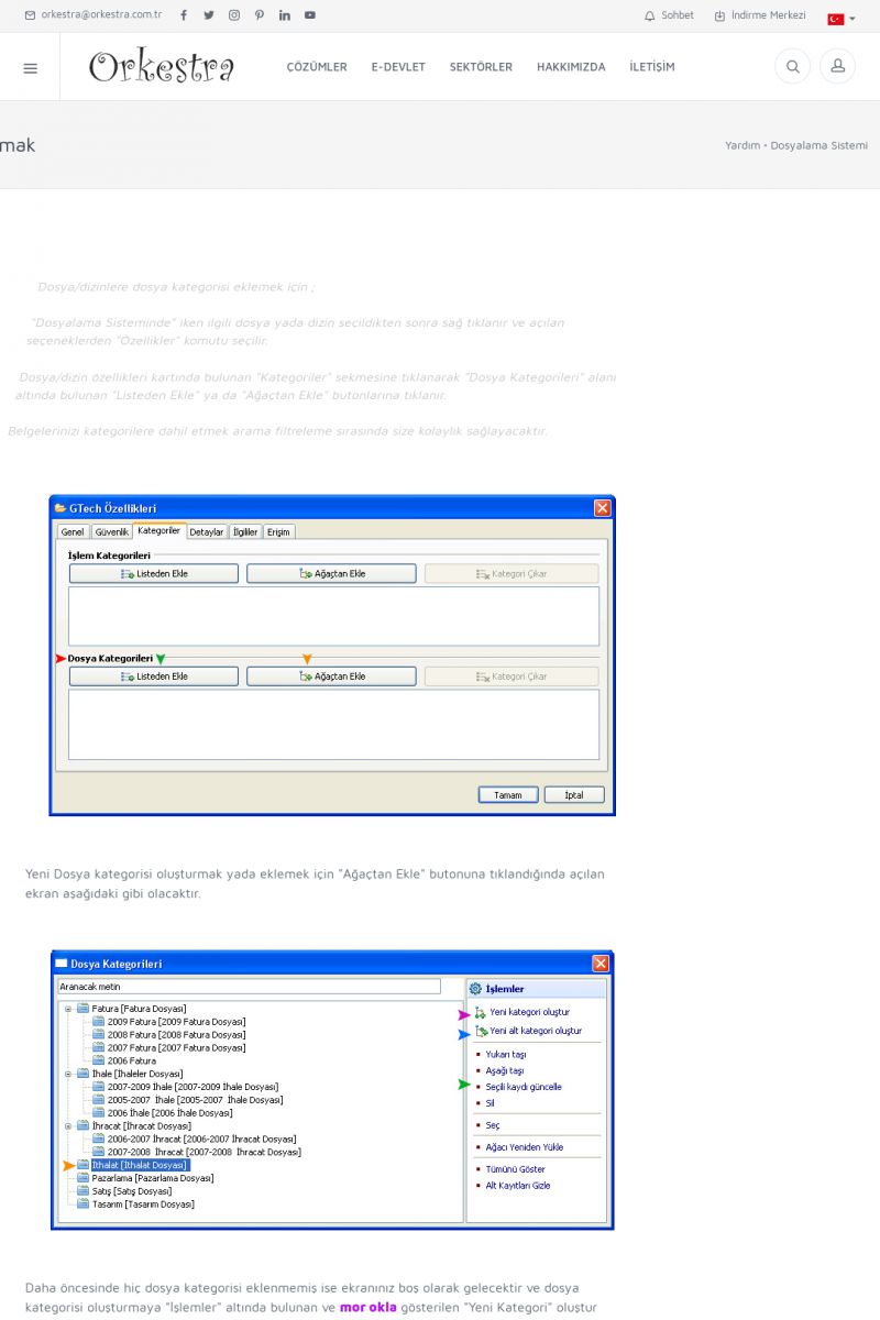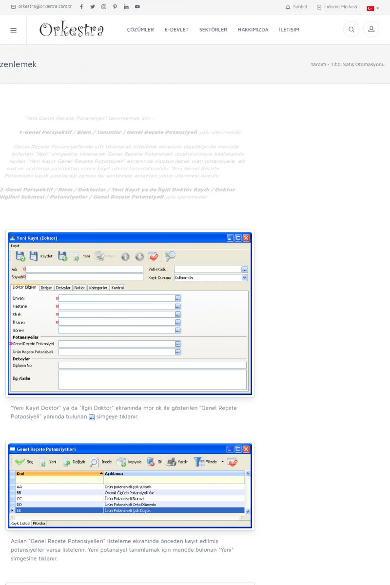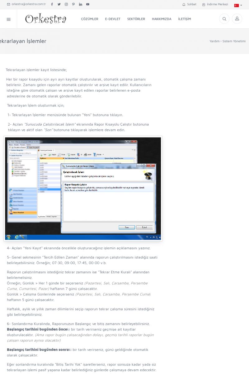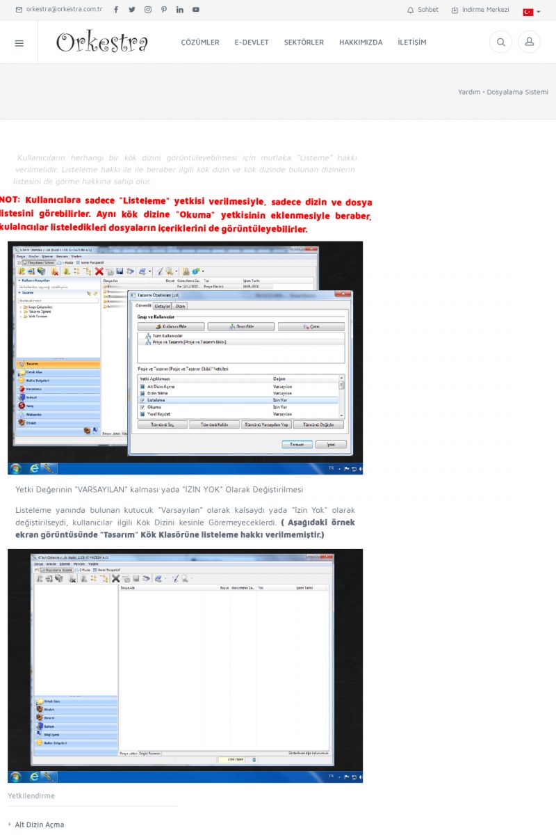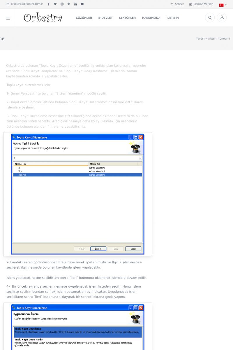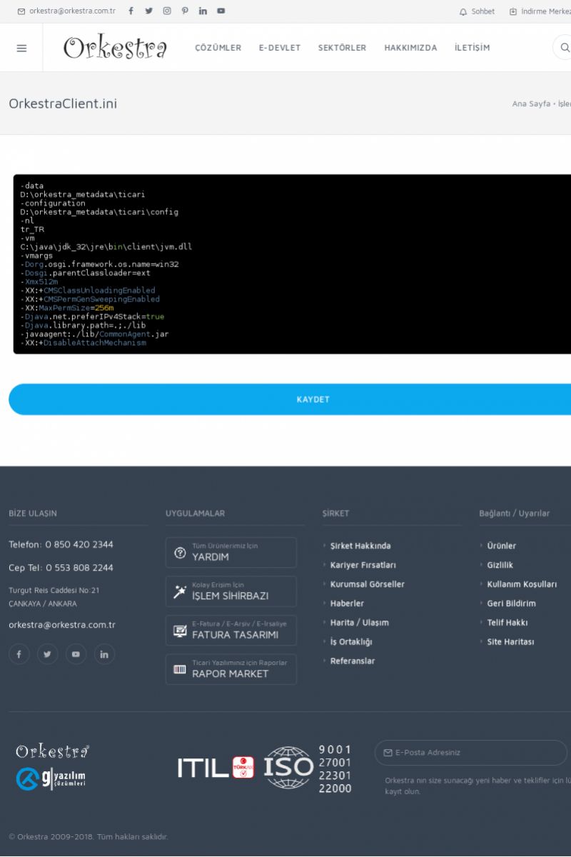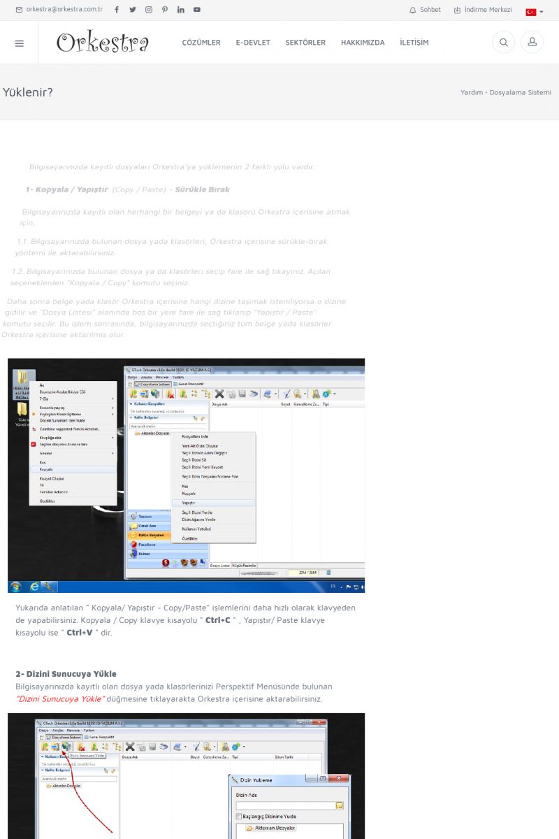 | 70 |  | Kurulum ve GüncellemeORKESTRA İNDIRME Orkestra kurulumu yapmak için öncelikle Orkestra'nın indirilmesi gerekmektedir. Detay İçin Tıklayınız [/index.php?sayfa=yardim&m=2&y=1] ORKESTRA YÜKLEME Orkestra nın yüklemesinin nasıl yapılacağının belirtildiği dokümandır. Detay İçin Tıklayınız [/index. KISA ERİŞİM KODU : XYCSI / ARA70 | |