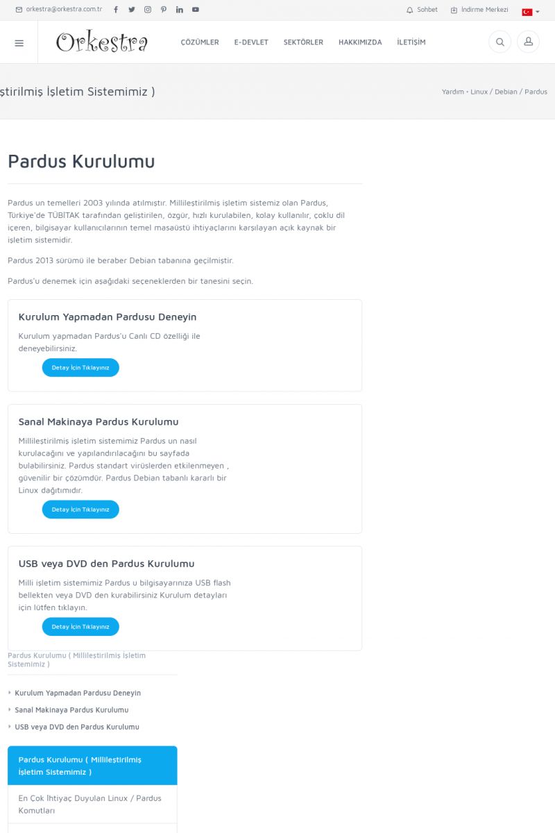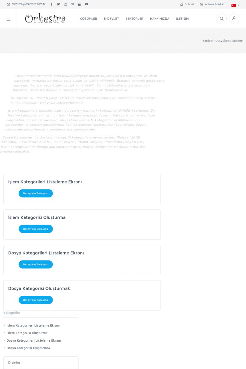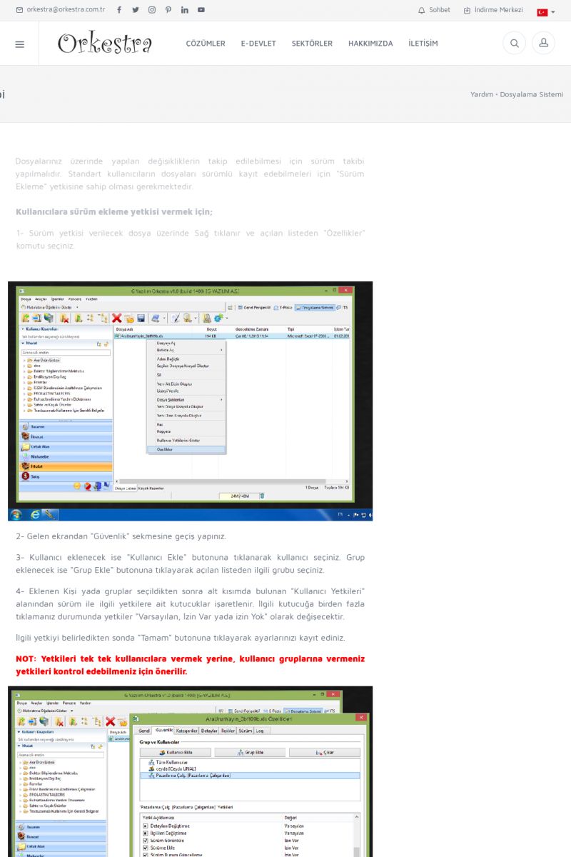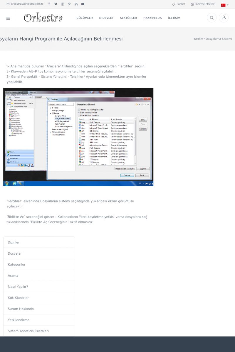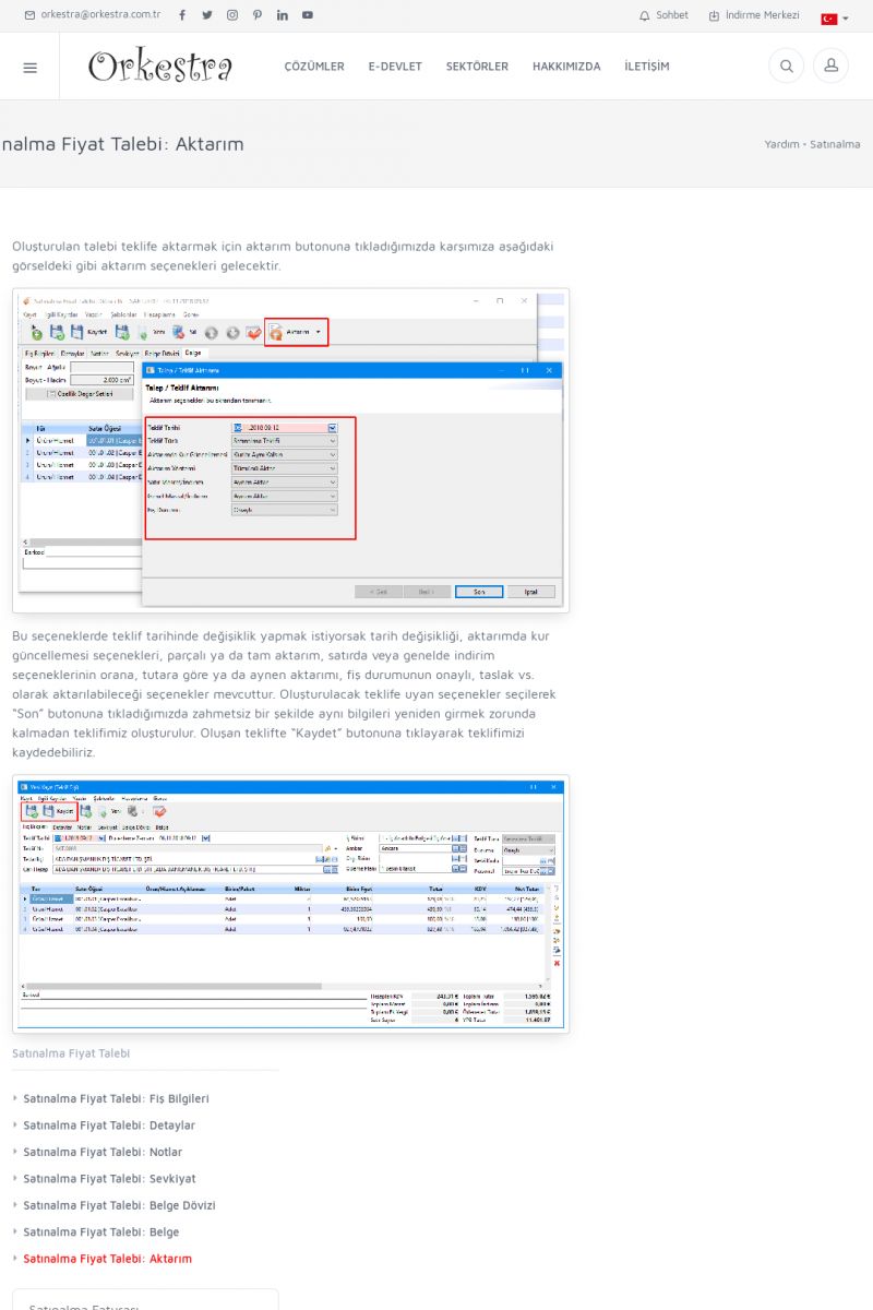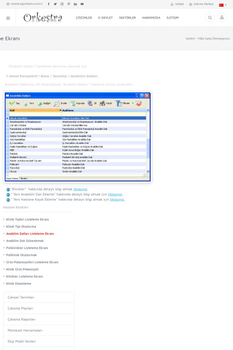 | 70 |  | Kurulum ve GüncellemeORKESTRA İNDIRME Orkestra kurulumu yapmak için öncelikle Orkestra'nın indirilmesi gerekmektedir. Detay İçin Tıklayınız [/index.php?sayfa=yardim&m=2&y=1] ORKESTRA YÜKLEME Orkestra nın yüklemesinin nasıl yapılacağının belirtildiği dokümandır. Detay İçin Tıklayınız [/index. KISA ERİŞİM KODU : XYCSI / ARA70 | |