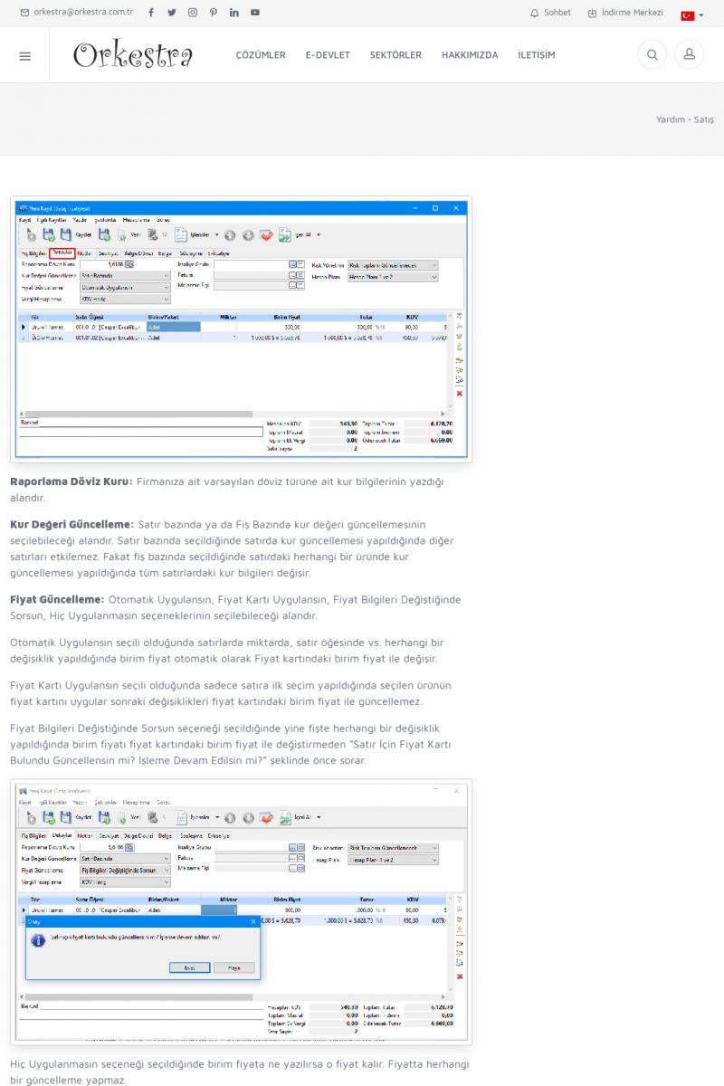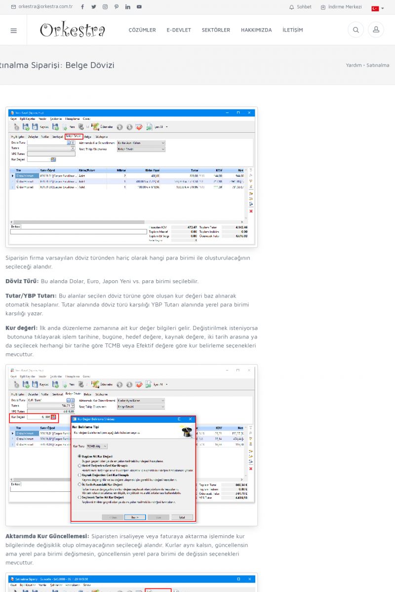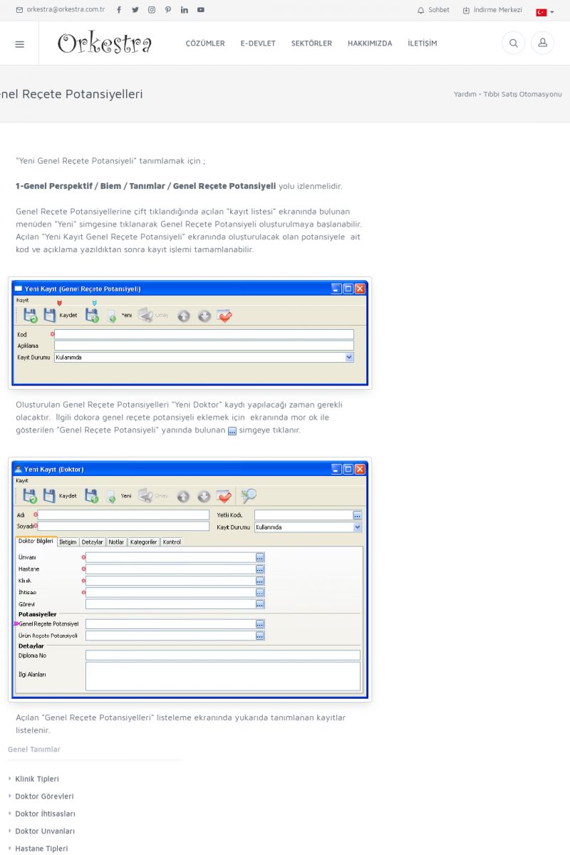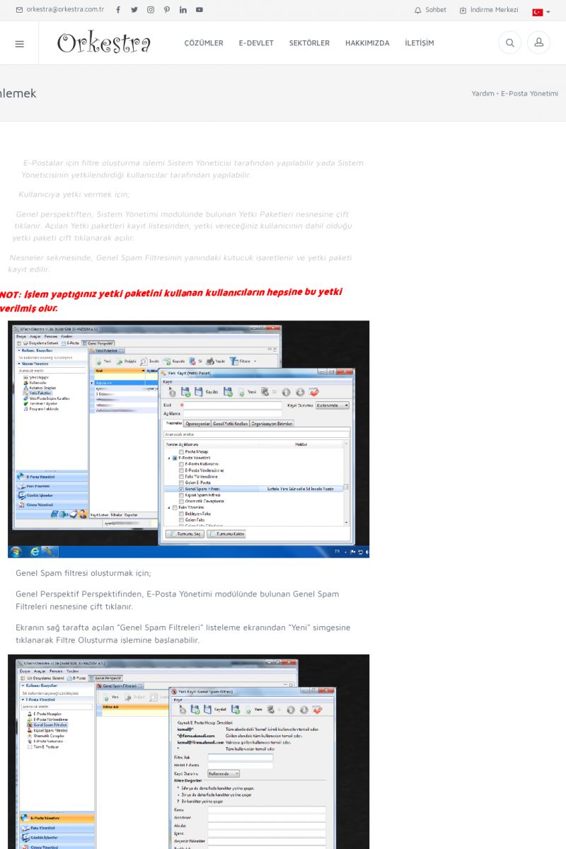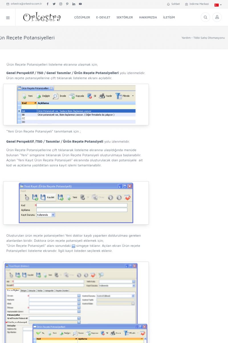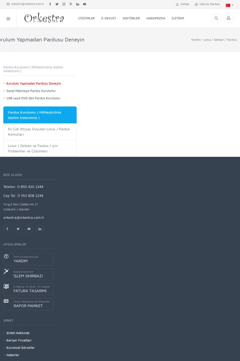 | 70 |  | Kurulum ve GüncellemeORKESTRA İNDIRME Orkestra kurulumu yapmak için öncelikle Orkestra'nın indirilmesi gerekmektedir. Detay İçin Tıklayınız [/index.php?sayfa=yardim&m=2&y=1] ORKESTRA YÜKLEME Orkestra nın yüklemesinin nasıl yapılacağının belirtildiği dokümandır. Detay İçin Tıklayınız [/index. KISA ERİŞİM KODU : XYCSI / ARA70 | |