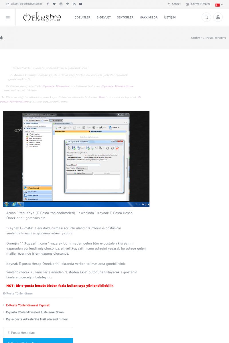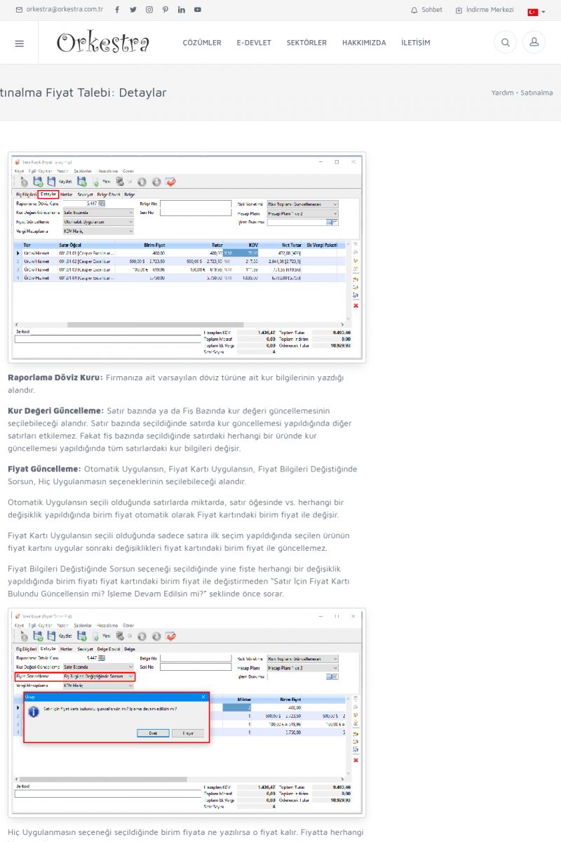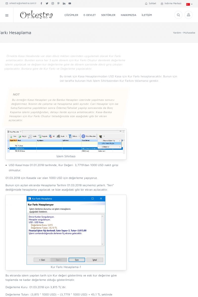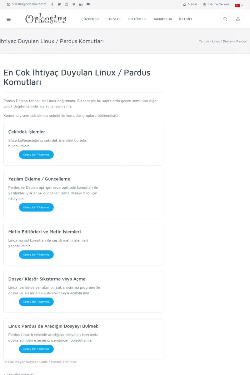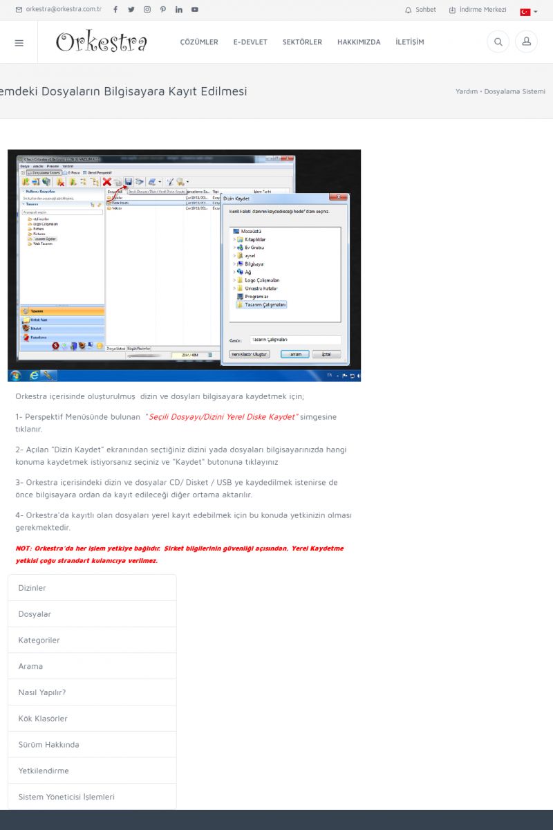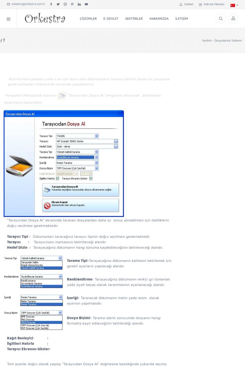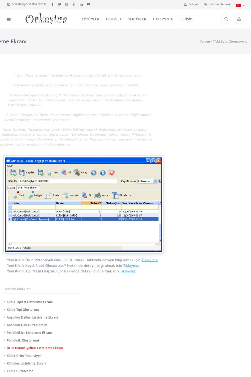 | 70 |  | Kurulum ve GüncellemeORKESTRA İNDIRME Orkestra kurulumu yapmak için öncelikle Orkestra'nın indirilmesi gerekmektedir. Detay İçin Tıklayınız [/index.php?sayfa=yardim&m=2&y=1] ORKESTRA YÜKLEME Orkestra nın yüklemesinin nasıl yapılacağının belirtildiği dokümandır. Detay İçin Tıklayınız [/index. KISA ERİŞİM KODU : XYCSI / ARA70 | |