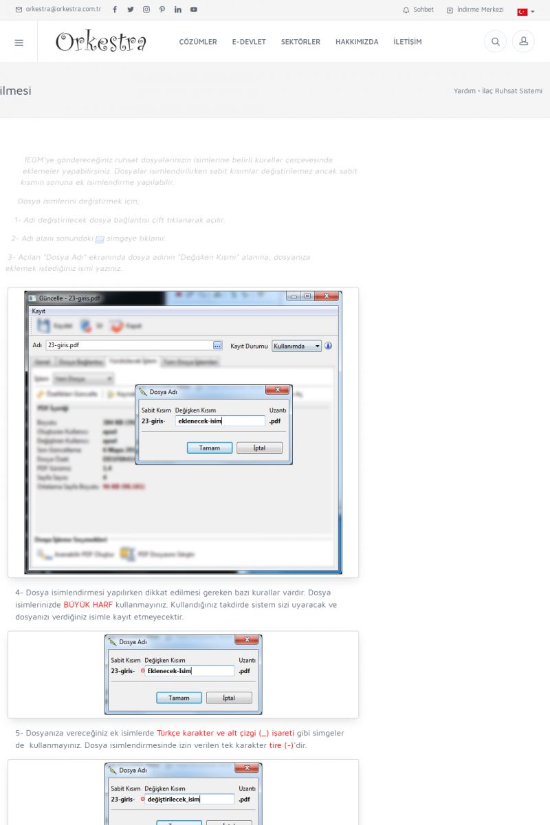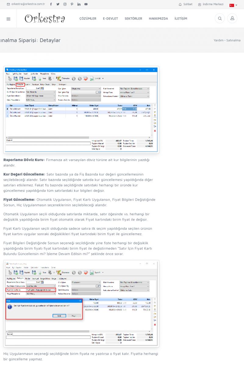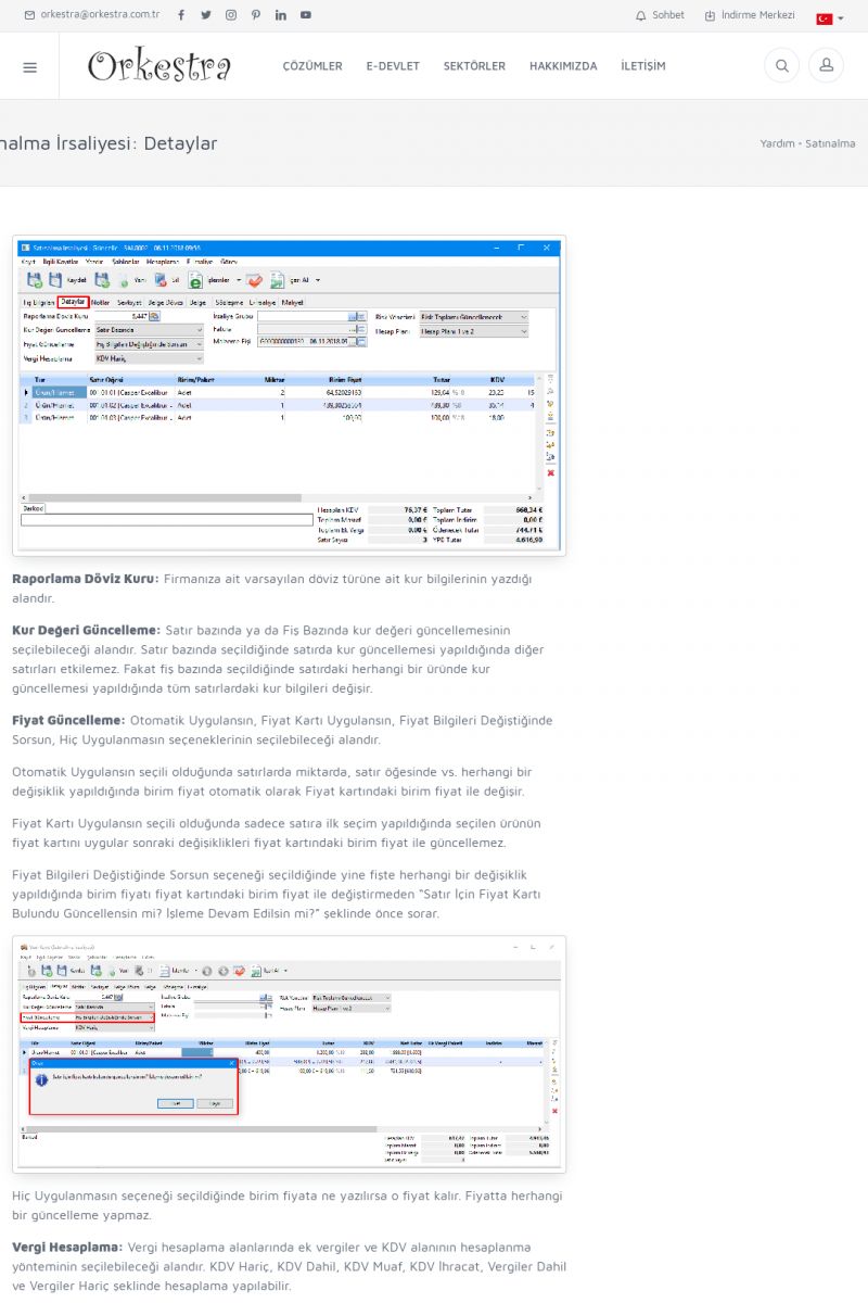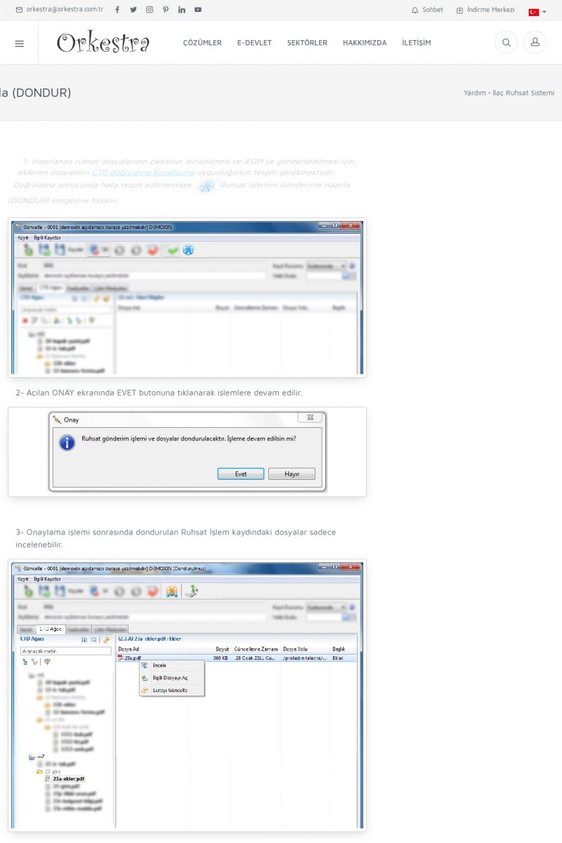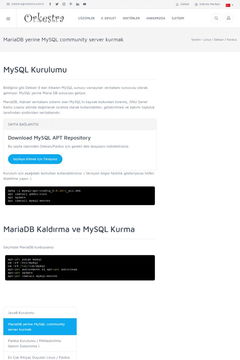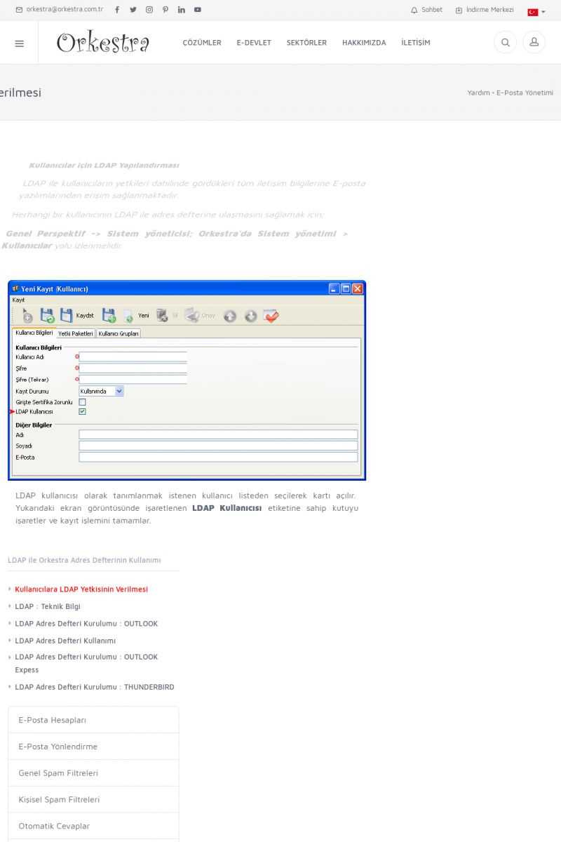 | 70 |  | Kurulum ve GüncellemeORKESTRA İNDIRME Orkestra kurulumu yapmak için öncelikle Orkestra'nın indirilmesi gerekmektedir. Detay İçin Tıklayınız [/index.php?sayfa=yardim&m=2&y=1] ORKESTRA YÜKLEME Orkestra nın yüklemesinin nasıl yapılacağının belirtildiği dokümandır. Detay İçin Tıklayınız [/index. KISA ERİŞİM KODU : XYCSI / ARA70 | |