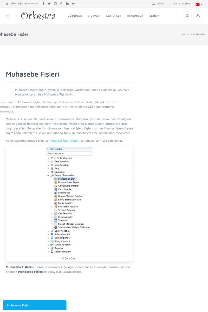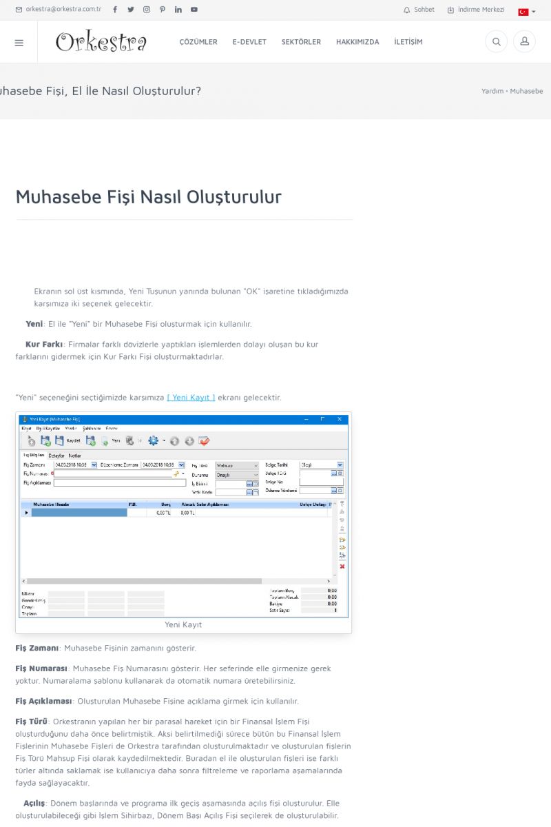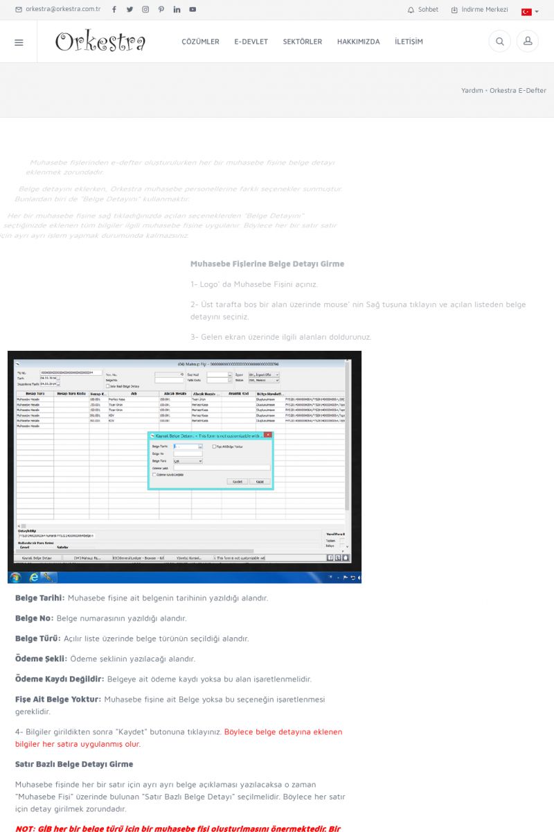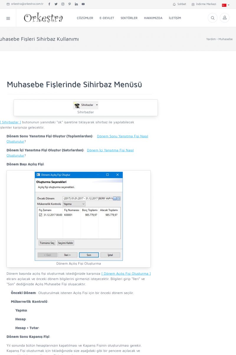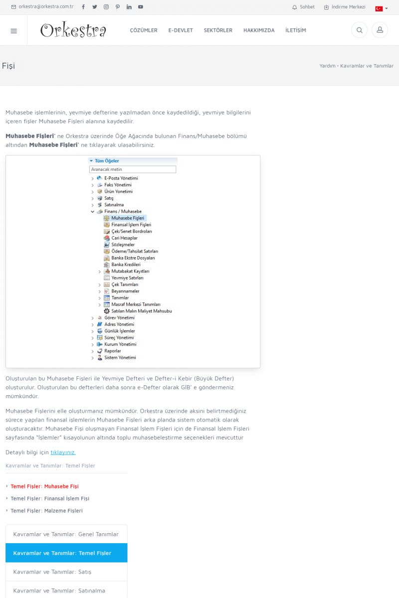 | 1819 |  | Orkestra Saklama Hizmeti Dosya TarayıcısıORKESTRA E-DEFTER İŞLEMLERI * e-Defter Oluşturma Yetkisi Nasıl Verilir? [/index.php?sayfa=yardim&m=14&y=1177&y2=1746] * e-Defter Ayarları Nasıl Yapılır? [/index.php?sayfa=yardim&m=14&y=1177&y2=1747] * Muhasebe Fişlerinin Yevmiye Madde Numaralarının Verilmesi [/index. KISA ERİŞİM KODU : XYCSAM / ARA1820 | |