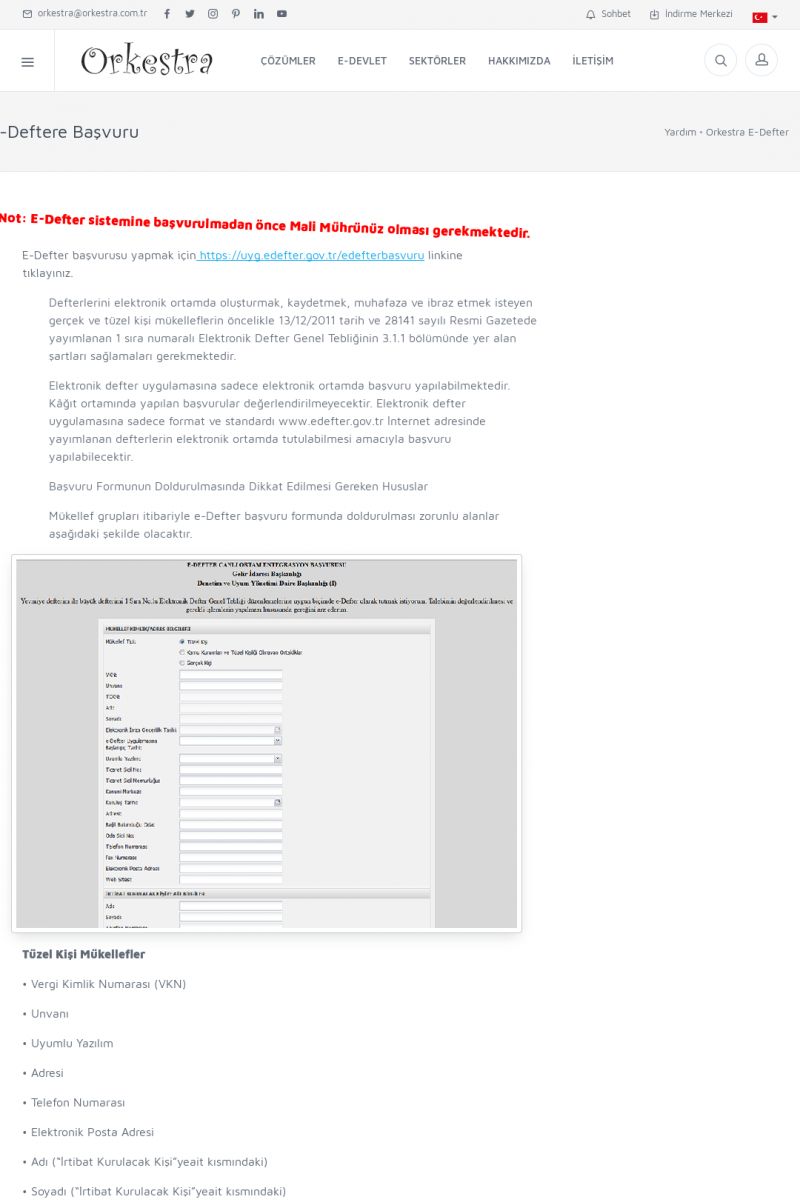 | 1877 |  | Ticari Sistem E-Defter Gönderim KılavuzuE-DEFTER GÖNDERIM KILAVUZU Kılavuza erişmek için lütfen aşağıdaki linki kullanınız. Gönderim Kılavuzu [/usr_img/usr/contents/yardim_belgeleri/Orkestra_ticari_tumlesik_yonetim/muhasebe_fisleri/ork_e_defter/Ticari_Sistem_E-defter_gonderim_kilavuzu_2. KISA ERİŞİM KODU : XYCUGZ / ARA1878 | |