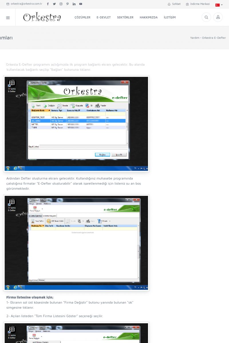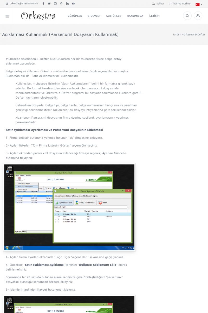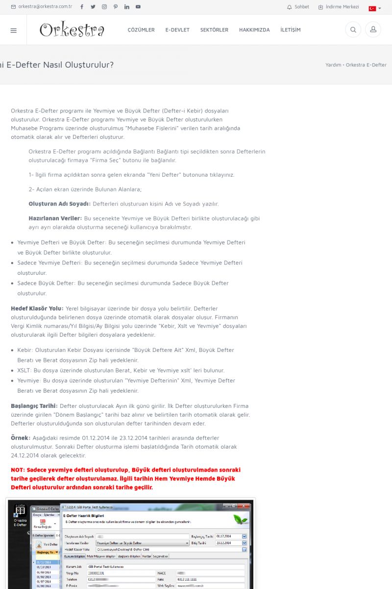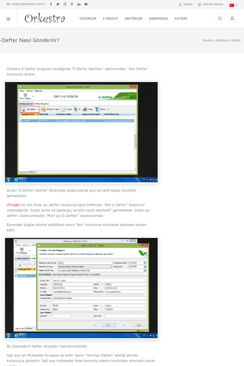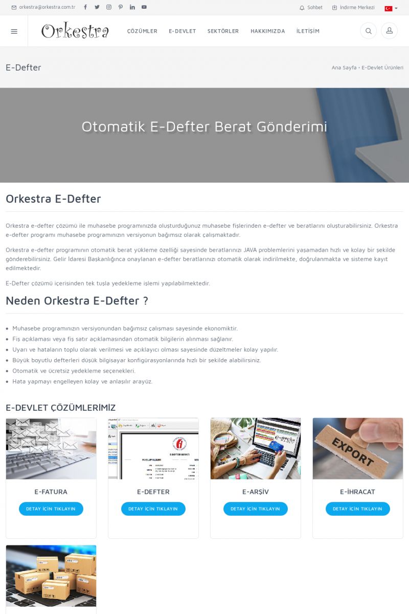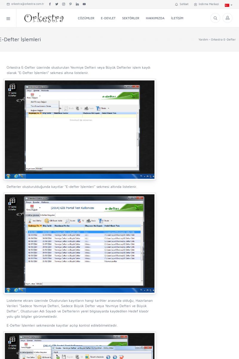 | 6 |  | Orkestra E-DefterOtomatik E-Defter Berat Gönderimi ORKESTRA E-DEFTER ------------------------- Orkestra e-defter çözümü ile muhasebe programınızda oluşturduğunuz muhasebe fişlerinden e-defter ve beratlarını oluşturabilirsiniz. Orkestra e-defter programı muhasebe programınızın versiyonun bağımsız olarak çalışmaktadır. KISA ERİŞİM KODU : XYGH / ARA6 | |