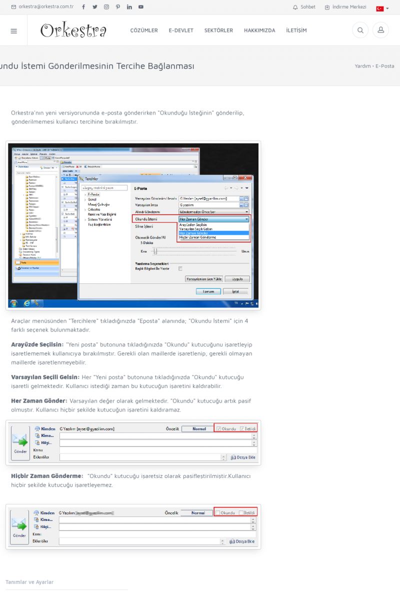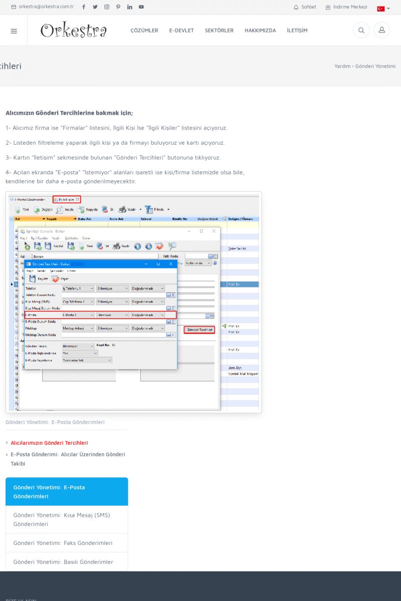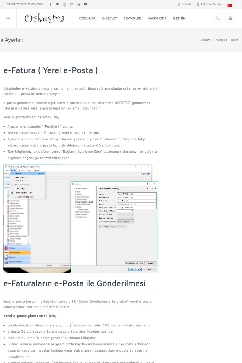 | 1842 |  | E-İrsaliyelerimi E-Posta Olarak Nasıl Gönderebilirim?E-irsaliyeleri e-posta olarak carilere mail atabiliriz. Bunun için iki farklı yerde ayar mevcuttur. Orkestra programında Araçlar > Tercihler'de "E-Fatura/E-Arşiv (E-Posta)" başlığı altında E-İrsaliye/E-Fatura Gönderimi alanından bunu ayarlayabiliriz. [/usr_img/usr/contents/yardim_belgeleri/irsaliye/eirsaliye_14. KISA ERİŞİM KODU : XYCSXR / ARA1843 | |