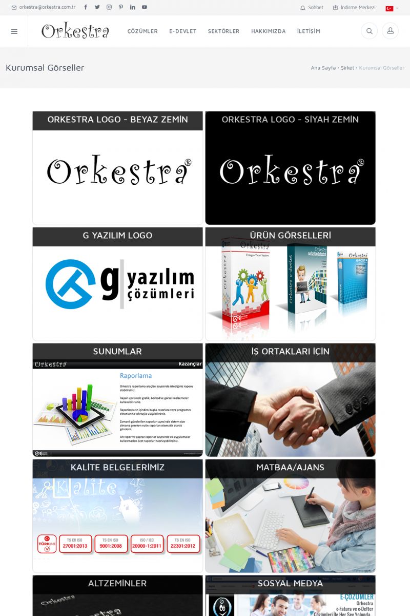 | 12 |  | Orkestra / G Yazılım İçin Kurumsal Görseller SayfasıBu sayfa içerisinde Orkestra ve G Yazılım Ltd. Şti. ye ait kurumsal görseller yer almaktadır. Kurumsal görsel sayfasındaki görsellerin indirme ve önizleme işlemlerini yapabilmek için lütfen sayfa içerisindeki resimlere tıklayınız. KISA ERİŞİM KODU : XYME / ARA12 | |
