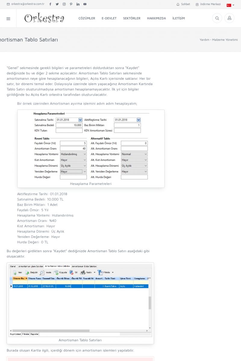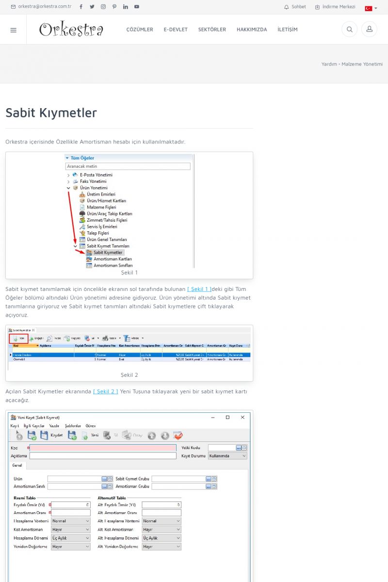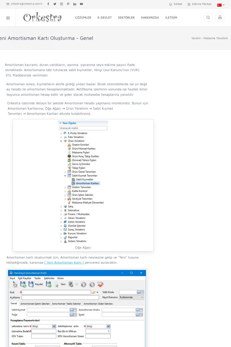 | 79 |  | Malzeme YönetimiMALZEME KARTLARI (ÜRÜN/HIZMET KARTLARI) Malzeme Kartları (Ürün/Hizmet Kartları) Detay İçin Tıklayınız [/index.php?sayfa=yardim&m=11&y=41] MALZEME FIŞLERI Malzeme Fişleri Detay İçin Tıklayınız [/index.php?sayfa=yardim&m=11&y=706] AMORTISMAN KARTI Amortisman Kartı Detay İçin Tıklayınız [/index. KISA ERİŞİM KODU : XYDBR / ARA79 | |