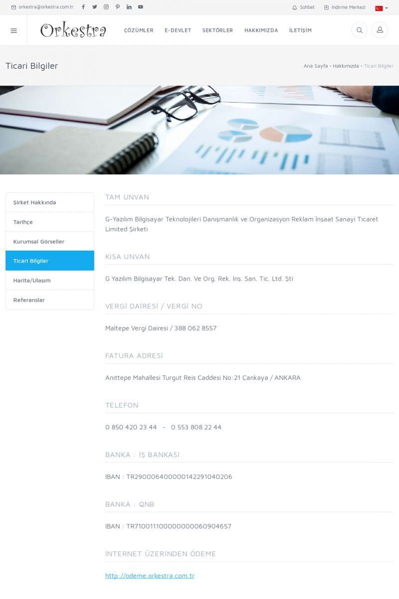 | 10 |  | Orkestra Ticari Yazılım , G Yazılım Hakkında Şirket Hakkında [/index.php?sayfa=hakkimizda]Tarihçe [/index.php?sayfa=sirket_tarihce]Kurumsal Görseller [/index.php?sayfa=sirket_kurumsal]Ticari Bilgiler [/index.php?sayfa=sirket_ticari]Harita/Ulaşım [/index.php?sayfa=ulasim]Referanslar [/index.php?sayfa=referanslar] G Yazılım Ltd. Şti. KISA ERİŞİM KODU : XYKC / ARA10 | |