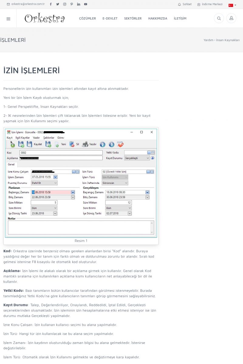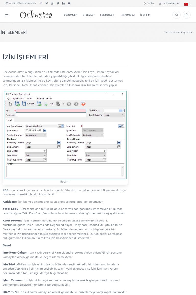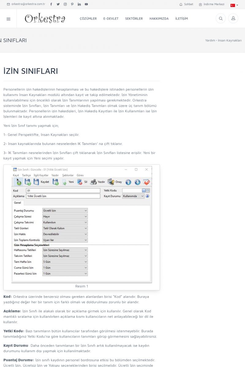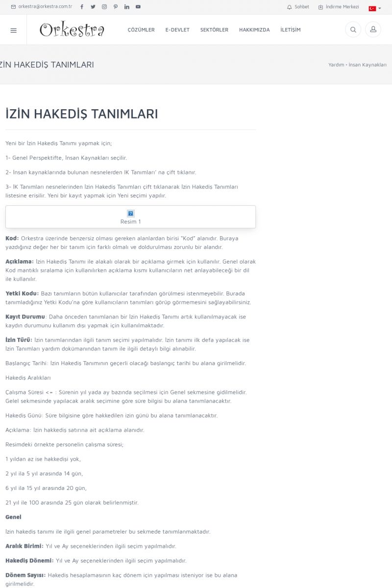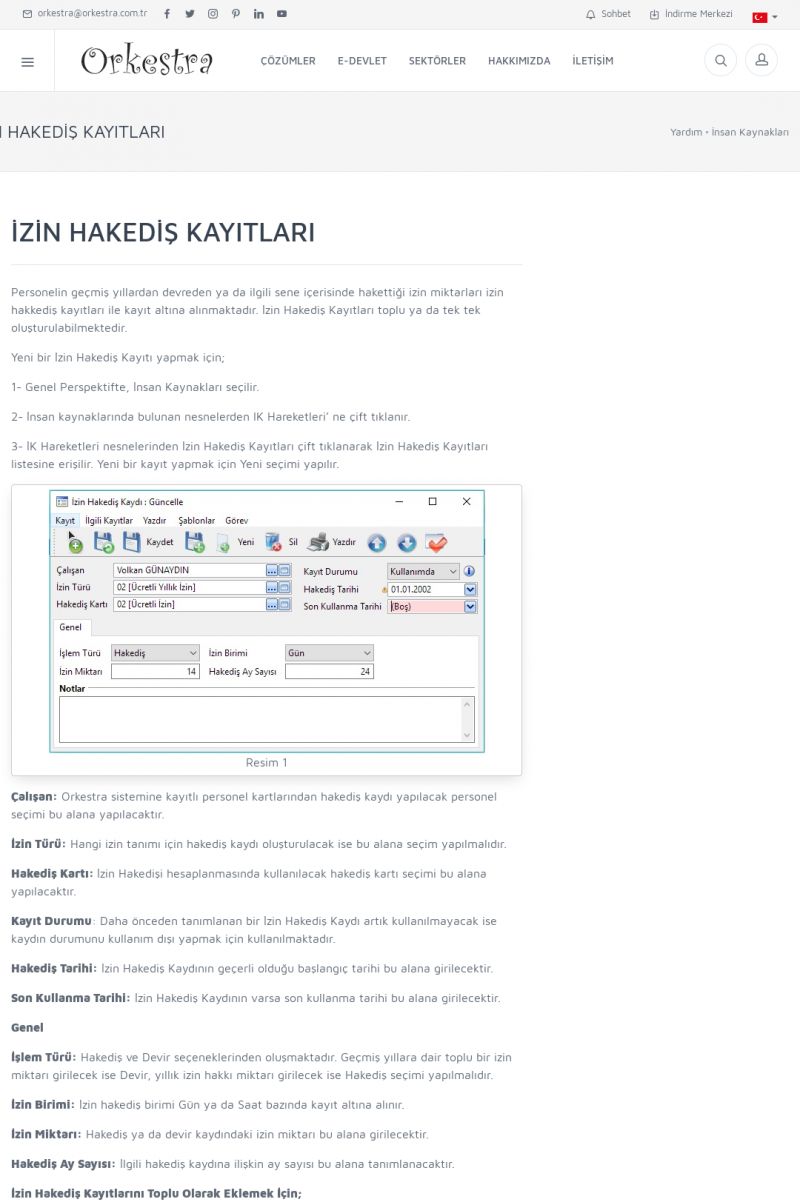 | 1885 |  | İZİN İŞLEMLERİ-HAKEDİŞ VE KULLANIM DETAYLARIİzin işlemleri nesnesinde Orkestra içerisinde Personelin hak ettiği ve kullanmış olduğu izin bilgileri detaylı bir şekilde görünmektedir. İlk olarak Orkestra içerisinde Sistem Ayarları içerisinde bulunan Kontrol Parametreleri içerisinden İzin Birleştirme Yöntemi FIFO,