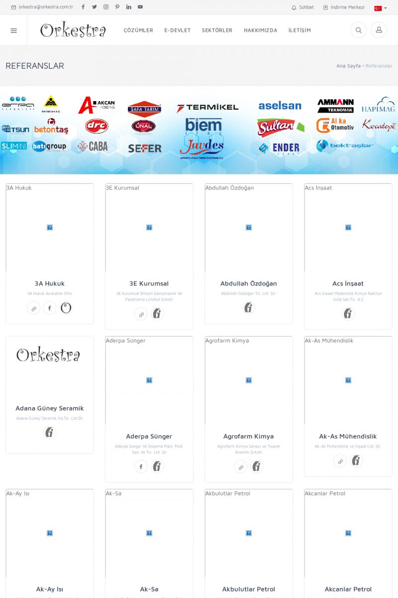 | 15 |  | Referans ListesiBu sayfa içerisinde referanslarımızdan bazıları listelenmektedir. Listelenen referanslarımızın kullandığı ürünler : Orkestra E-Fatura, Orkestra E-Defter, E-İrsaliye, E-Arşiv, ERP, Ticari Yazılım, CRM olarak listelenebilir. KISA ERİŞİM KODU : XYPH / ARA15 | |