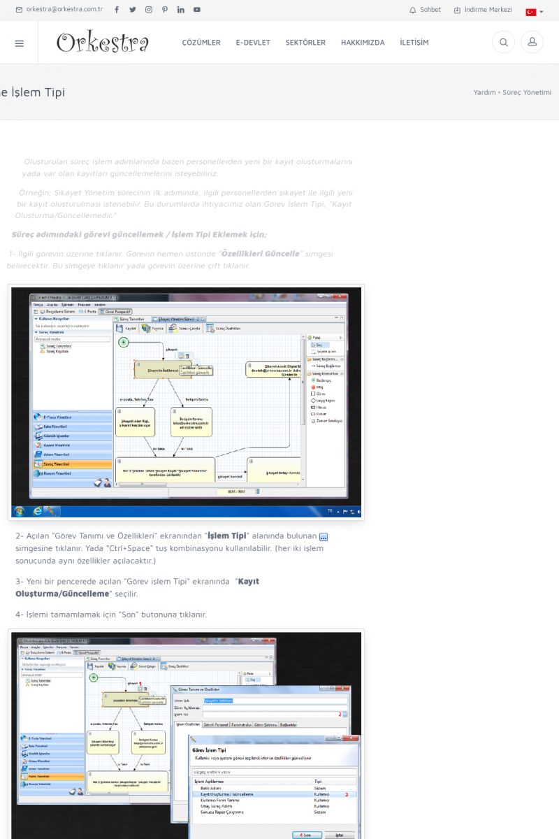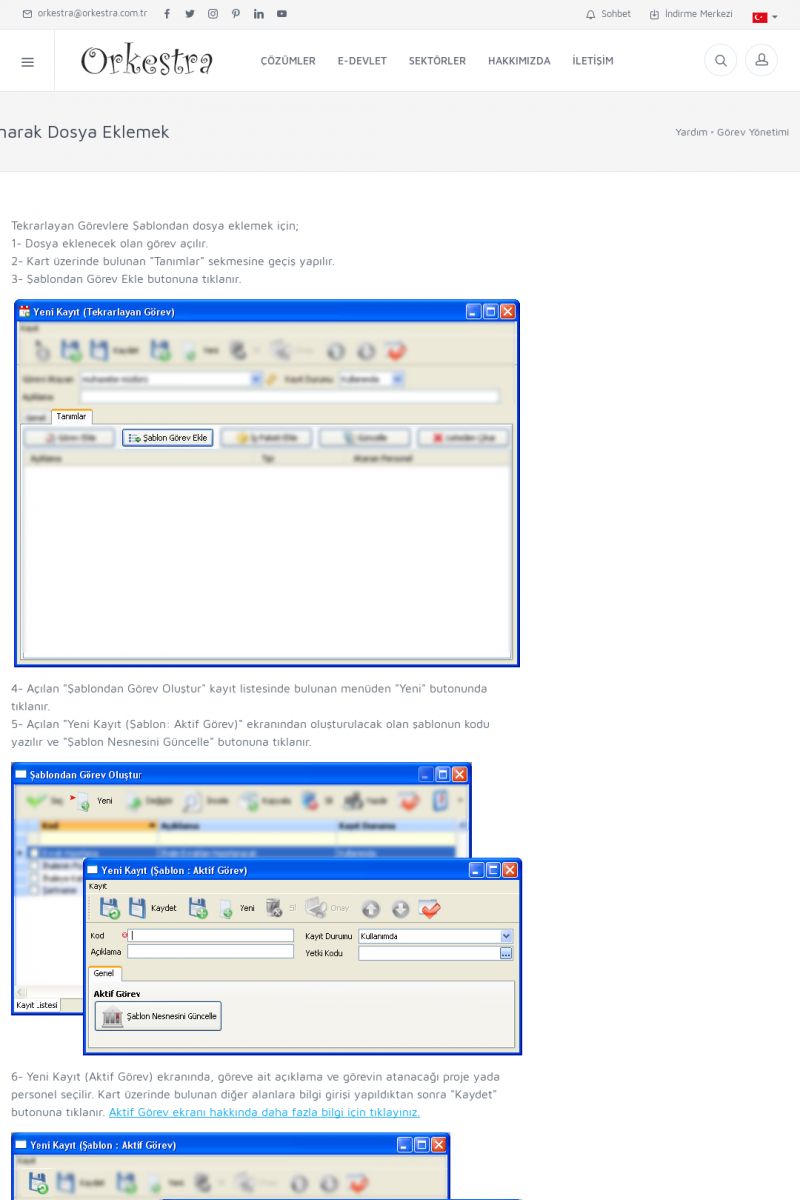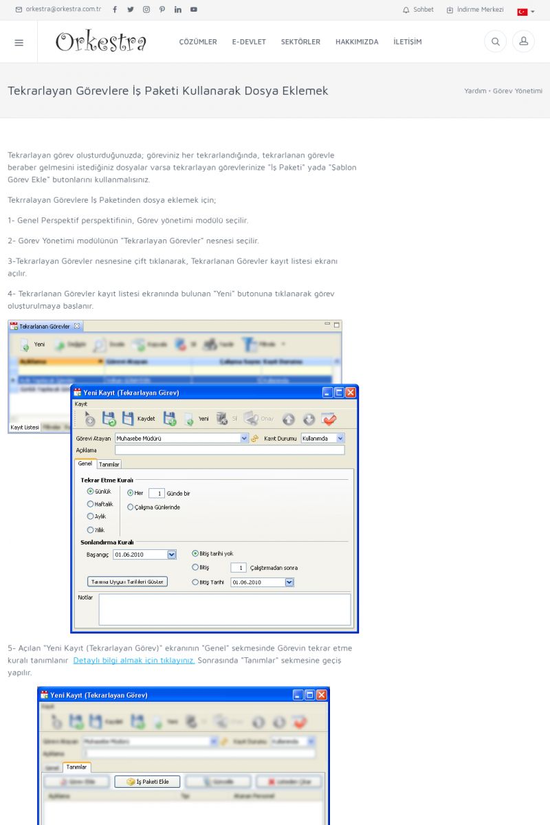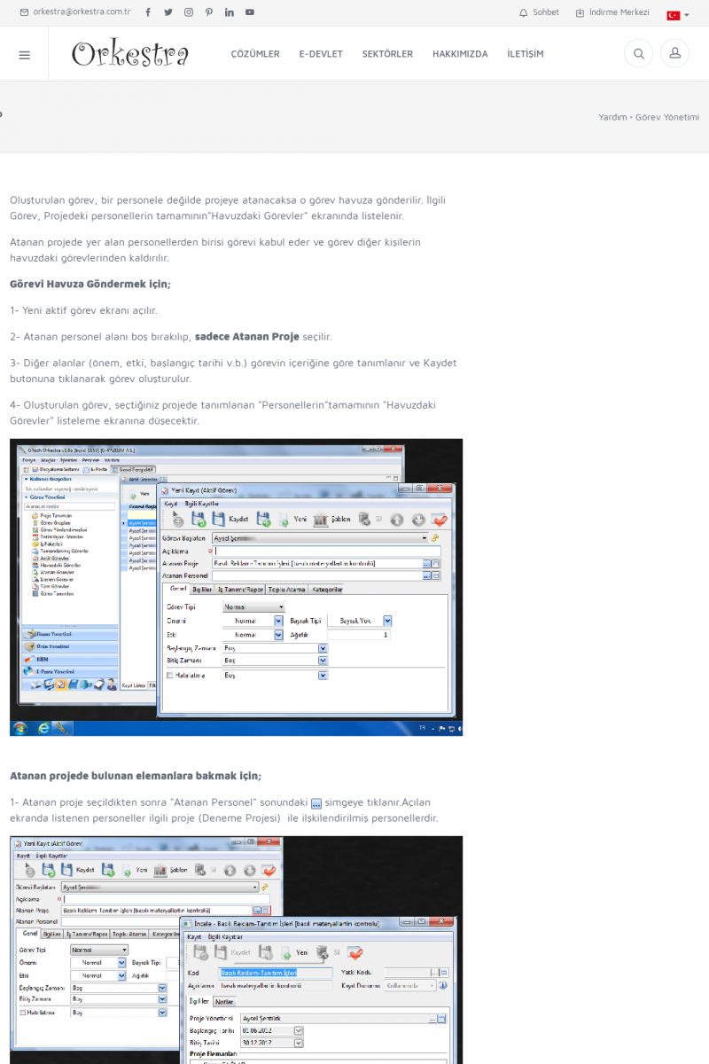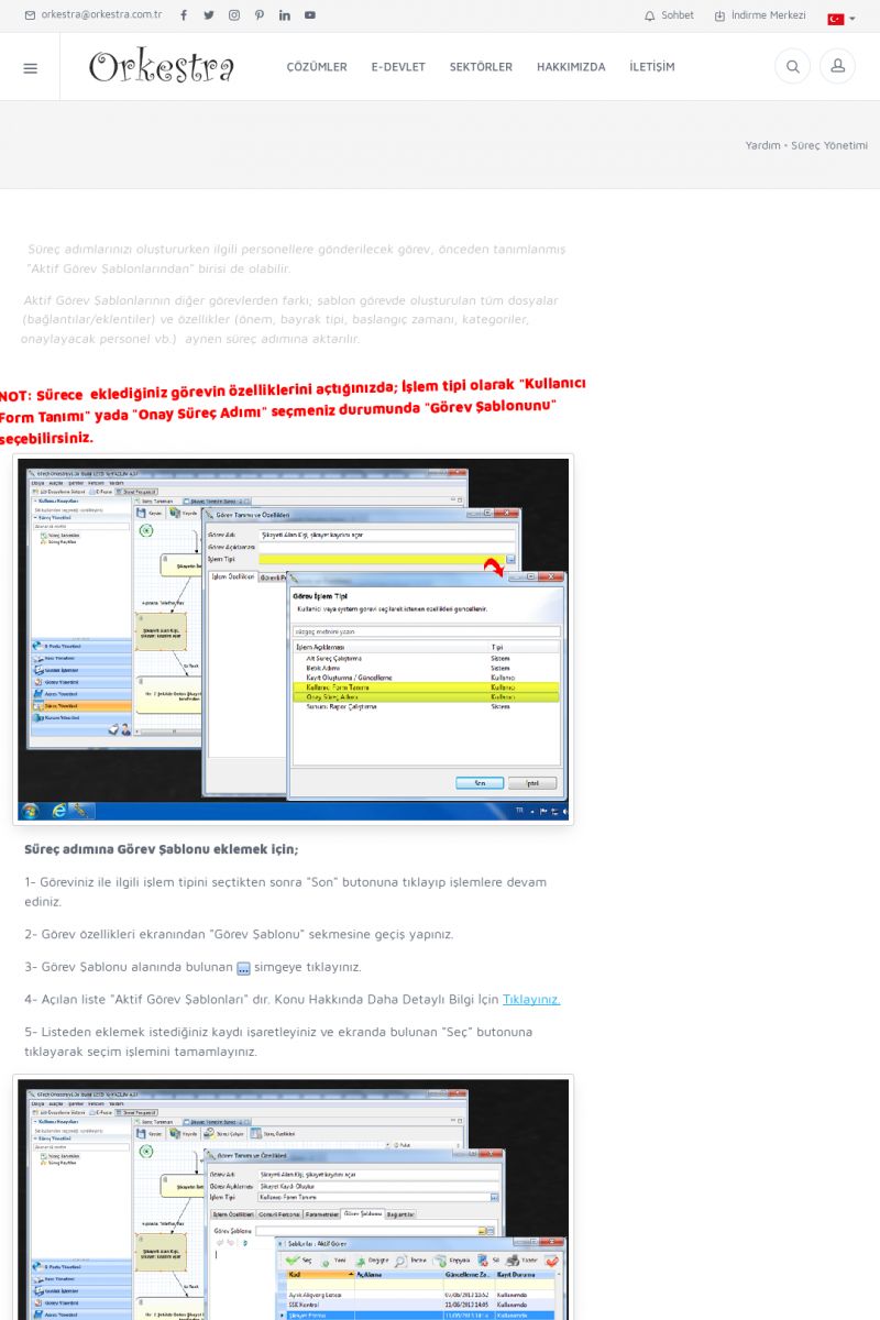 | 2 |  | Orkestra Görev Yönetimi , Süreç Yönetimi İle Şirketinizi Yönetin , İş AkışEkibinize Görev Verin, Orkestra İle Takip Edin ORKESTRA GÖREV YÖNETIMI ------------------------- ORKESTRA GÖREV YÖNETIMI ile şirketinizde çalışan insanları verimli ekipler haline getirebilirsiniz. Yapılacak görevleri düzenleyebilir, her görevin zamanında yapılmasını kolayca sağlayabilirsiniz. KISA ERİŞİM KODU : XYCD / ARA2 | |