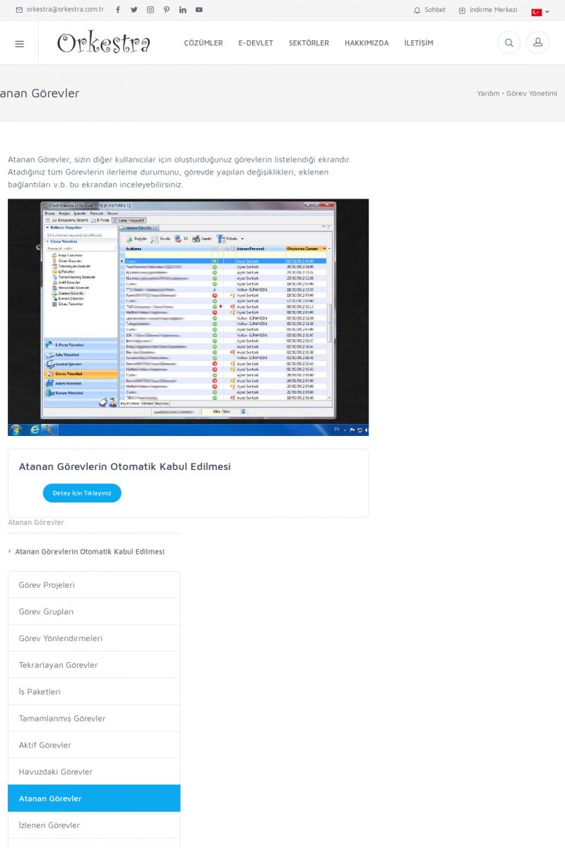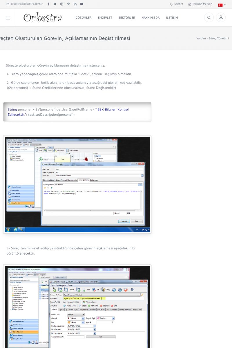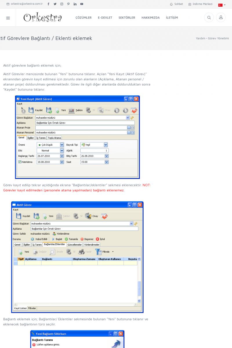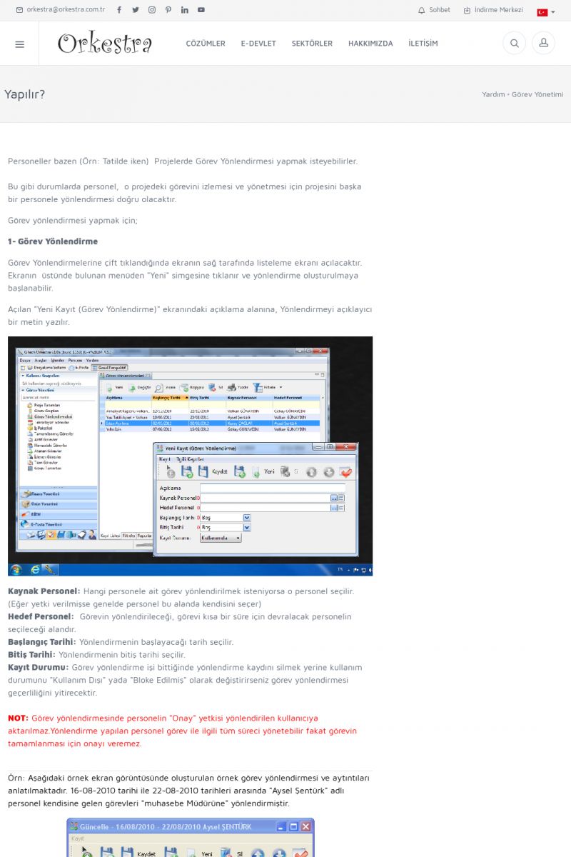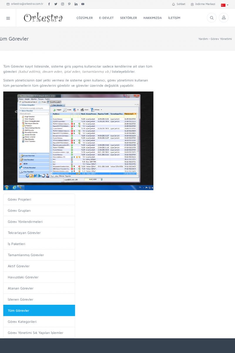 | 2 |  | Orkestra Görev Yönetimi , Süreç Yönetimi İle Şirketinizi Yönetin , İş AkışEkibinize Görev Verin, Orkestra İle Takip Edin ORKESTRA GÖREV YÖNETIMI ------------------------- ORKESTRA GÖREV YÖNETIMI ile şirketinizde çalışan insanları verimli ekipler haline getirebilirsiniz. Yapılacak görevleri düzenleyebilir, her görevin zamanında yapılmasını kolayca sağlayabilirsiniz. KISA ERİŞİM KODU : XYCD / ARA2 | |