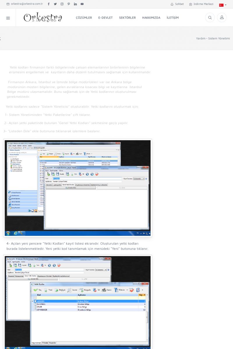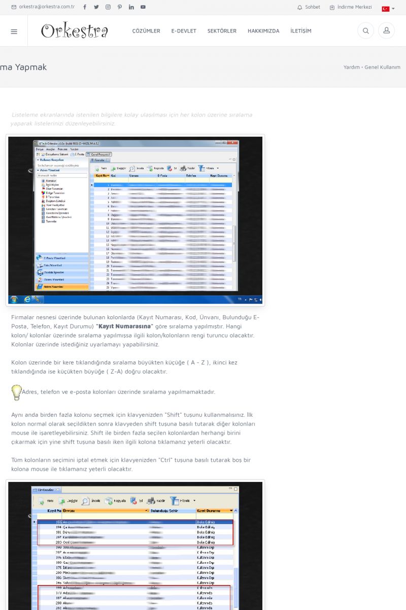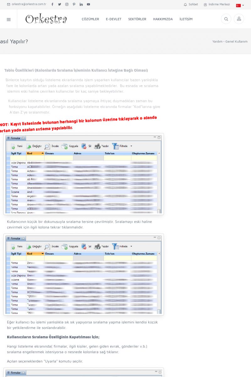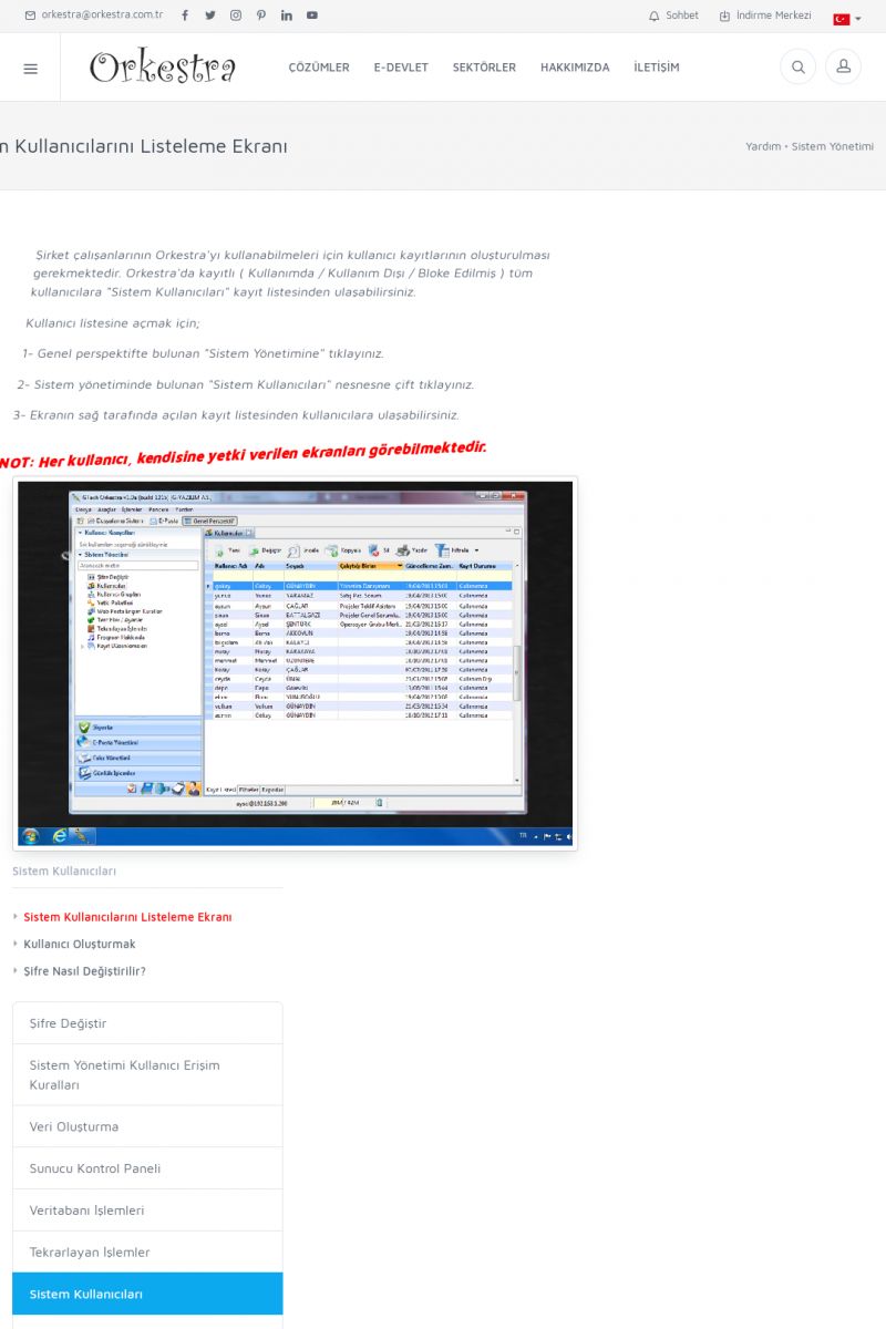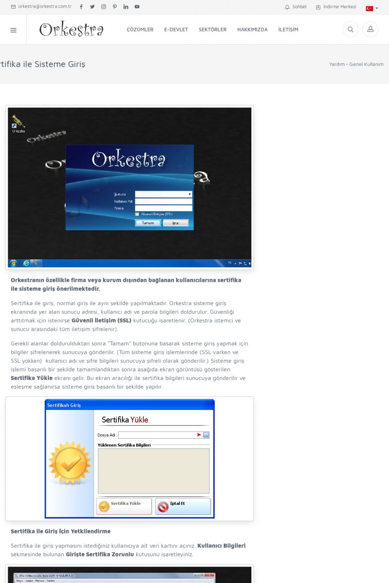 | 71 |  | Genel KullanımORKESTRA İLK ÇALIŞTIRMA Detay İçin Tıklayınız [/index.php?sayfa=yardim&m=1&y=58] SERTIFIKA ILE SISTEME GIRIŞ Detay İçin Tıklayınız [/index.php?sayfa=yardim&m=1&y=193] LISTELEME EKRANLARINDA SIRALAMA YAPMAK Detay İçin Tıklayınız [/index. KISA ERİŞİM KODU : XYCTJ / ARA71 | |