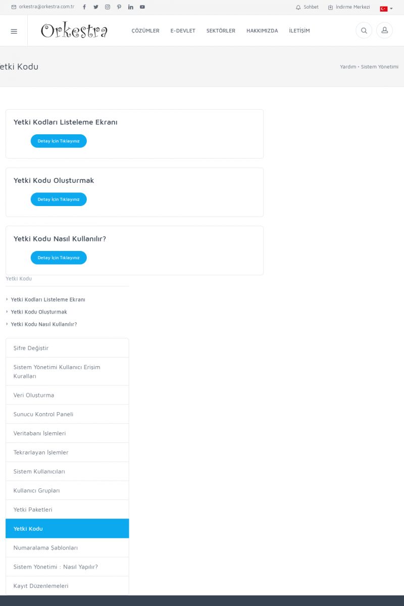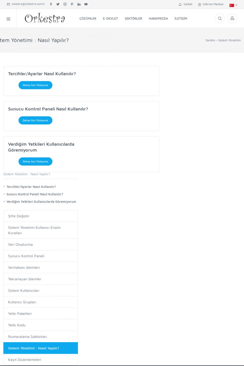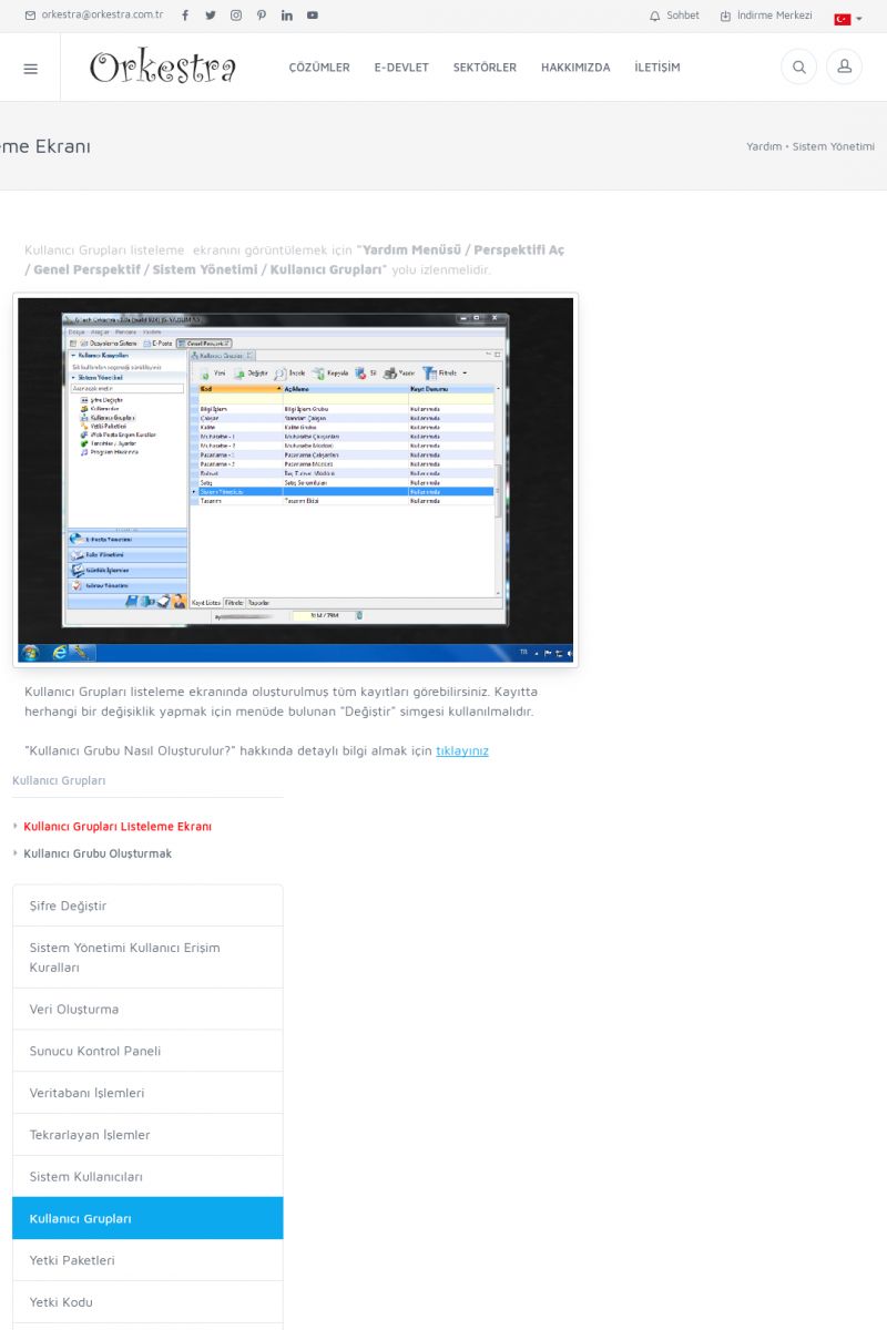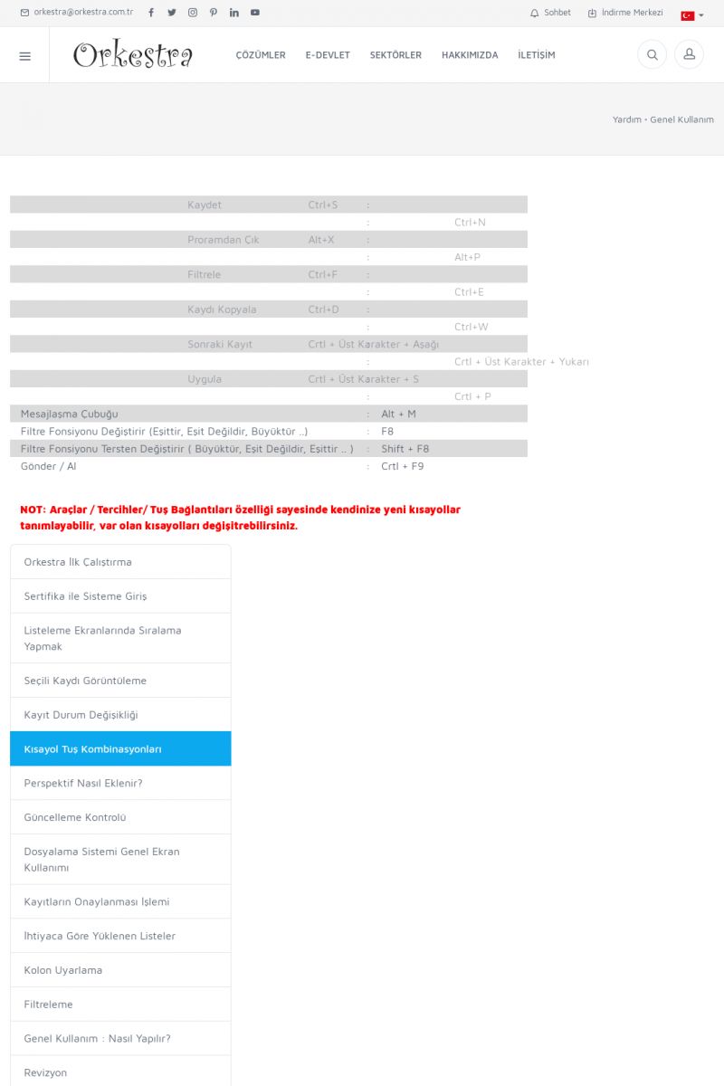 | 71 |  | Genel KullanımORKESTRA İLK ÇALIŞTIRMA Detay İçin Tıklayınız [/index.php?sayfa=yardim&m=1&y=58] SERTIFIKA ILE SISTEME GIRIŞ Detay İçin Tıklayınız [/index.php?sayfa=yardim&m=1&y=193] LISTELEME EKRANLARINDA SIRALAMA YAPMAK Detay İçin Tıklayınız [/index. KISA ERİŞİM KODU : XYCTJ / ARA71 | |