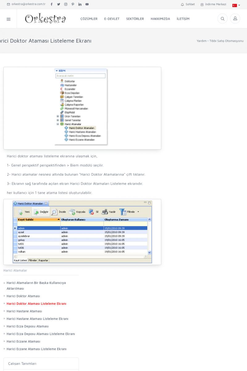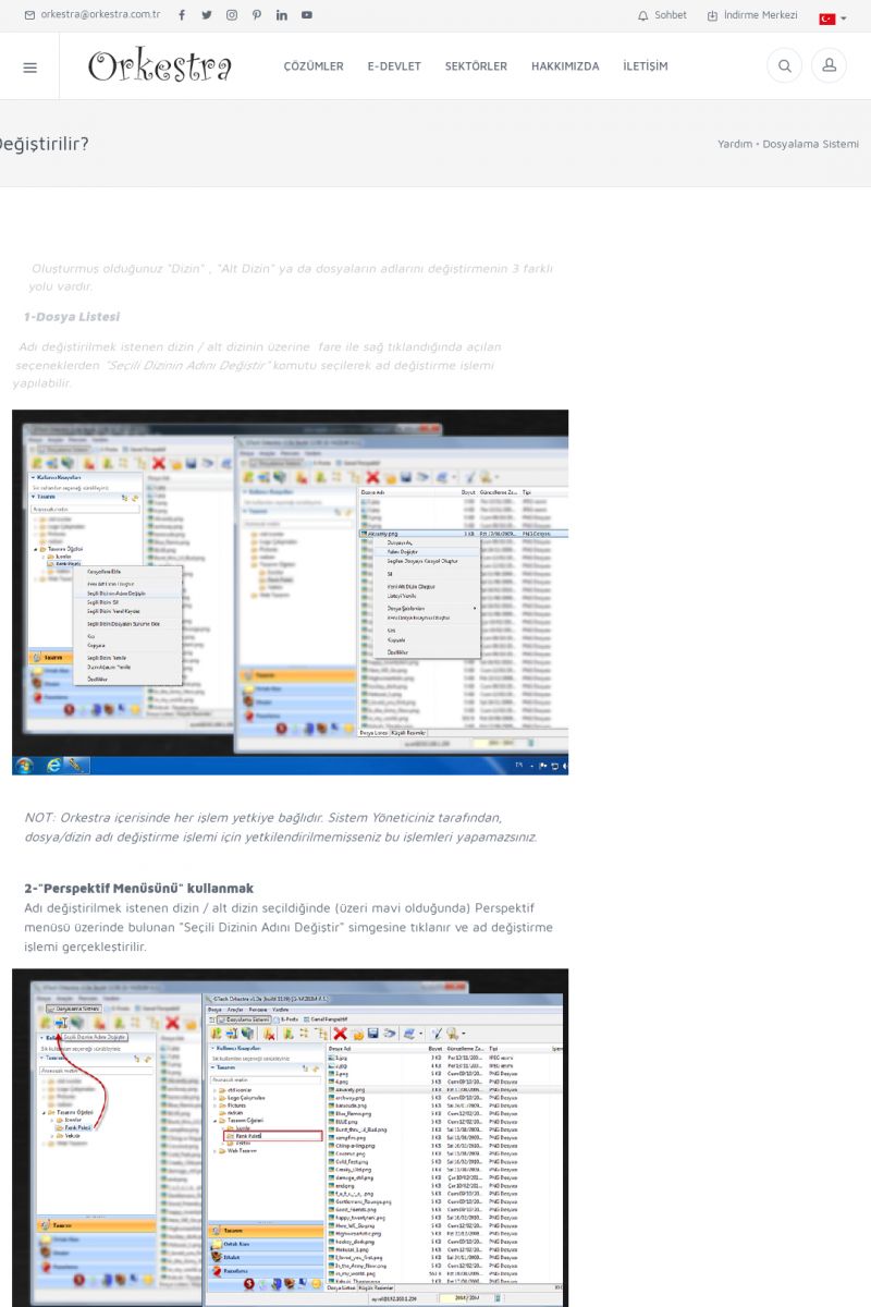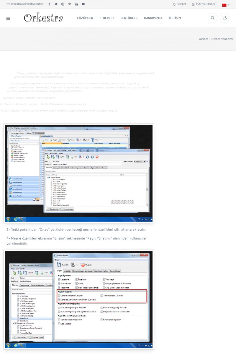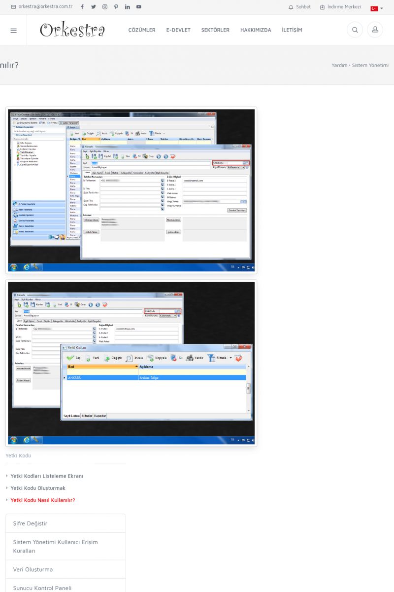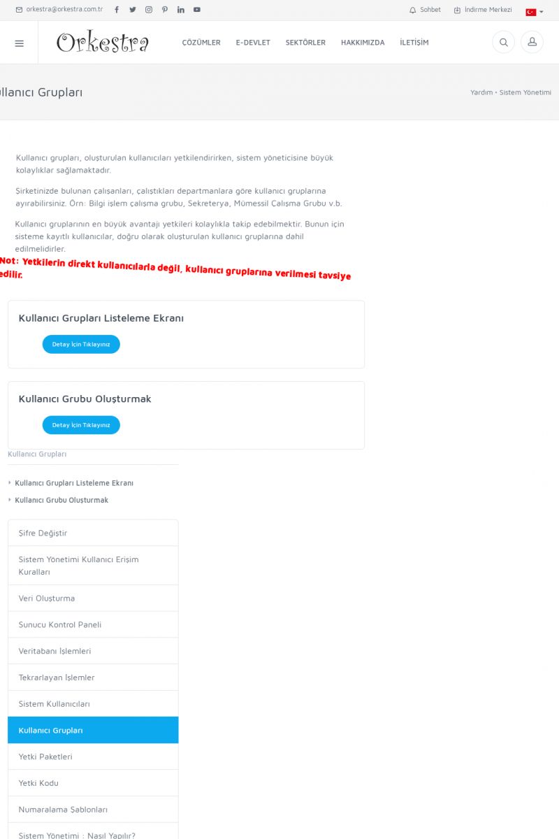 | 71 |  | Genel KullanımORKESTRA İLK ÇALIŞTIRMA Detay İçin Tıklayınız [/index.php?sayfa=yardim&m=1&y=58] SERTIFIKA ILE SISTEME GIRIŞ Detay İçin Tıklayınız [/index.php?sayfa=yardim&m=1&y=193] LISTELEME EKRANLARINDA SIRALAMA YAPMAK Detay İçin Tıklayınız [/index. KISA ERİŞİM KODU : XYCTJ / ARA71 | |