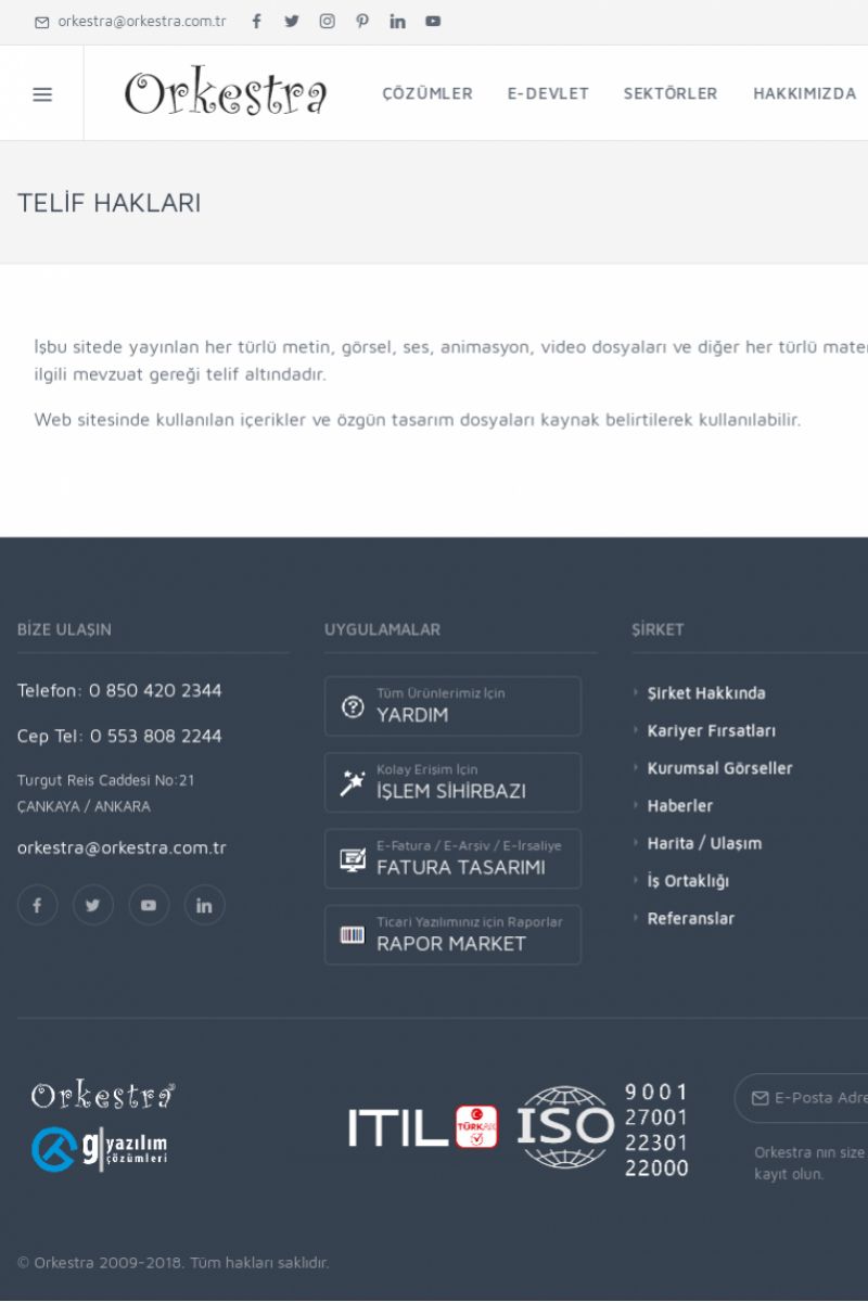 | 26 |  | Orkestra Telif Hakları Bildirimiİşbu sitede yayınlan her türlü metin, görsel, ses, animasyon, video dosyaları ve diğer her türlü materyal ve tasarımlar 5846 sayılı Yasa ve ilgili mevzuat gereği telif altındadır. Web sitesinde kullanılan içerikler ve özgün tasarım dosyaları kaynak belirtilerek kullanılabilir. KISA ERİŞİM KODU : XYBAJ / ARA26 | |