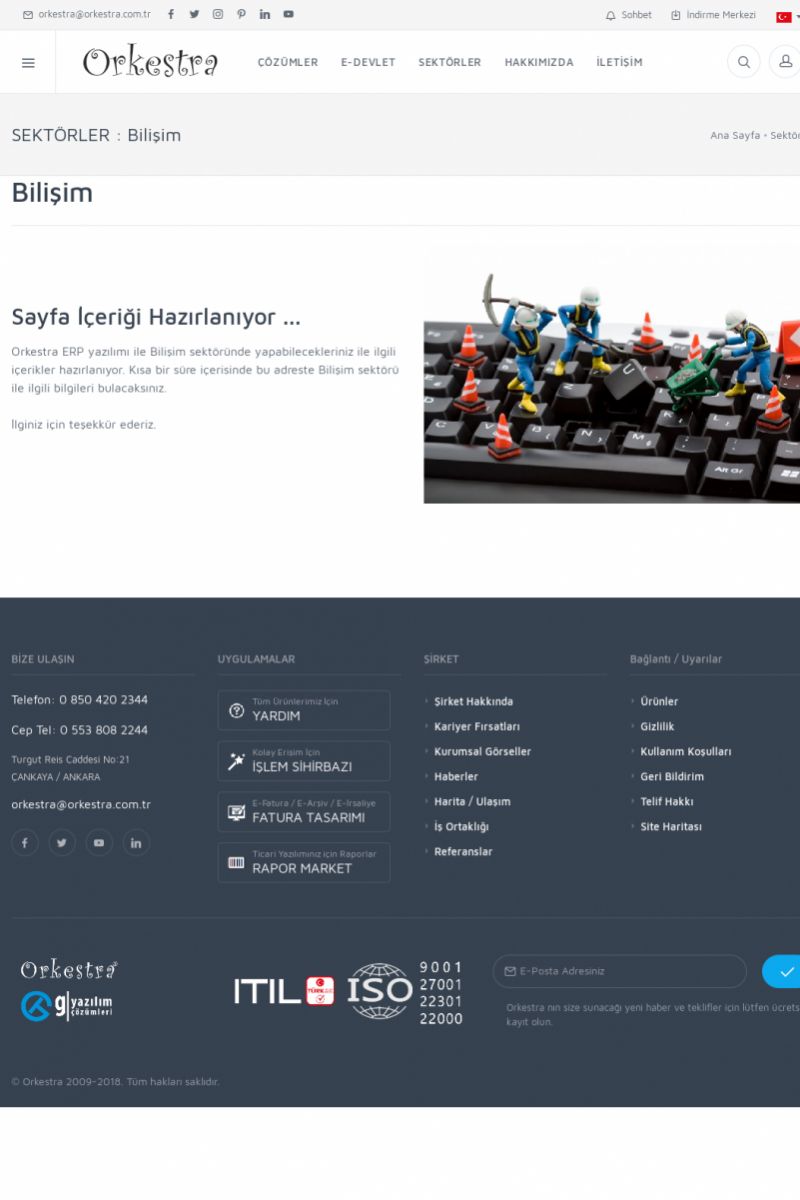 | 28 |  | Bilişim Sektörü İçin ERP Yazılımı, MRP ve CRM UygulamalarıBILIŞIM ------------------------- SAYFA İÇERIĞI HAZIRLANIYOR ... Orkestra ERP yazılımı ile Bilişim sektöründe yapabilecekleriniz ile ilgili içerikler hazırlanıyor. Kısa bir süre içerisinde bu adreste Bilişim sektörü ile ilgili bilgileri bulacaksınız. İlginiz için teşekkür ederiz. KISA ERİŞİM KODU : XYBCL / ARA28 | |