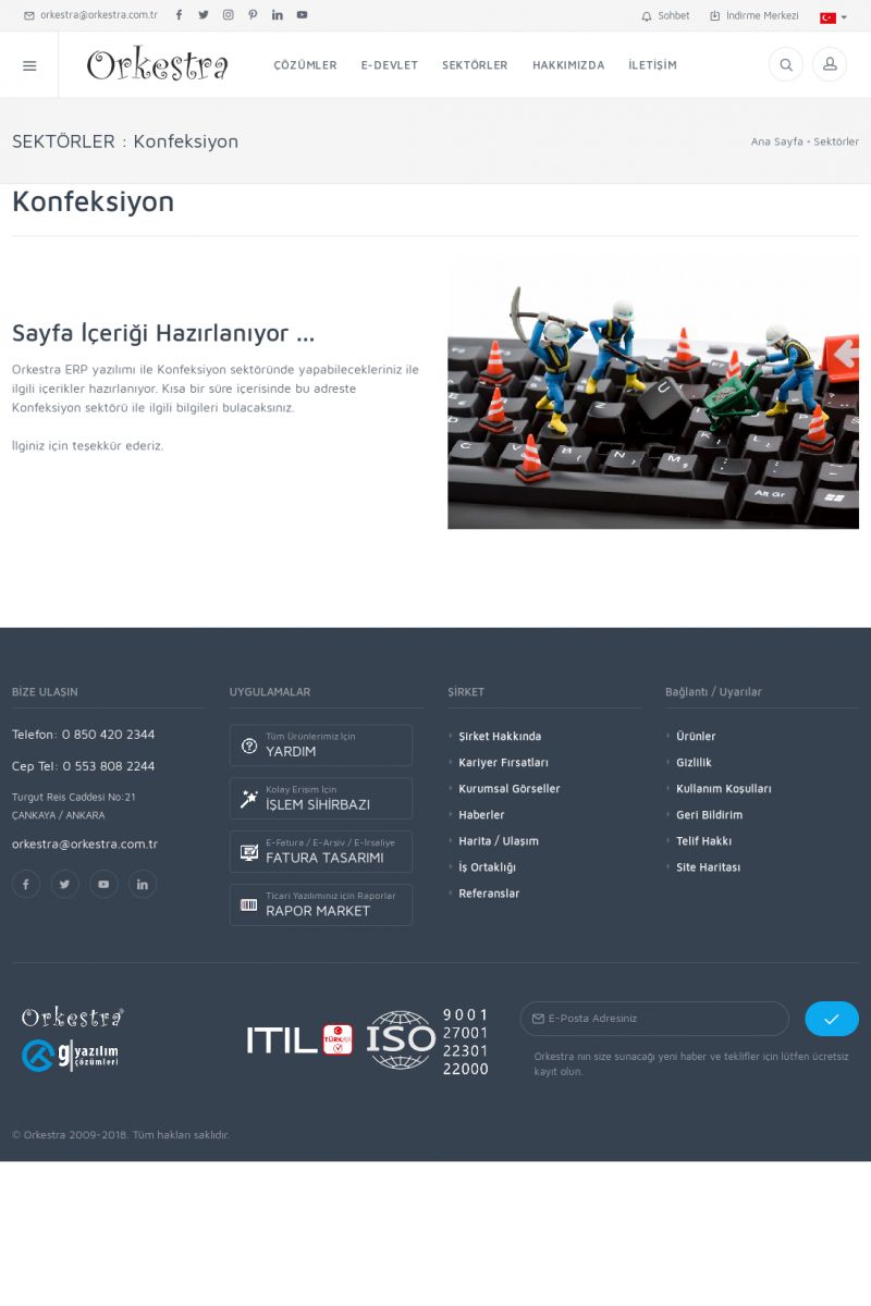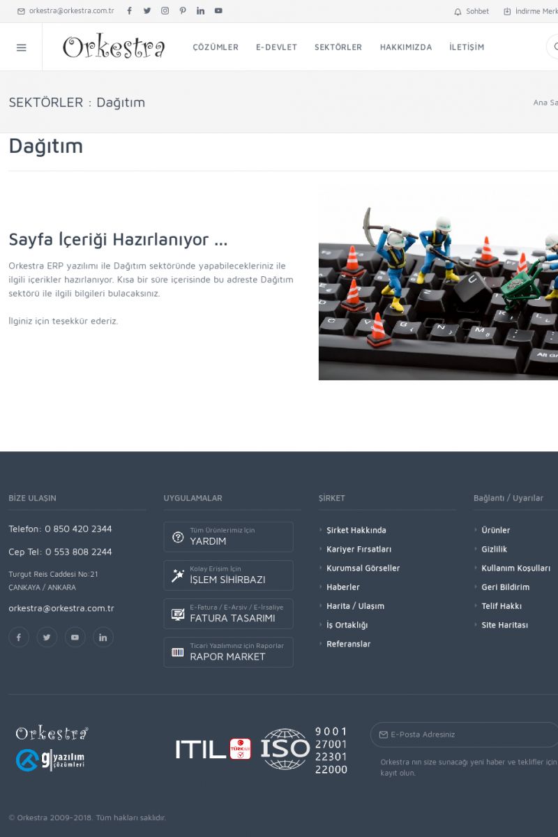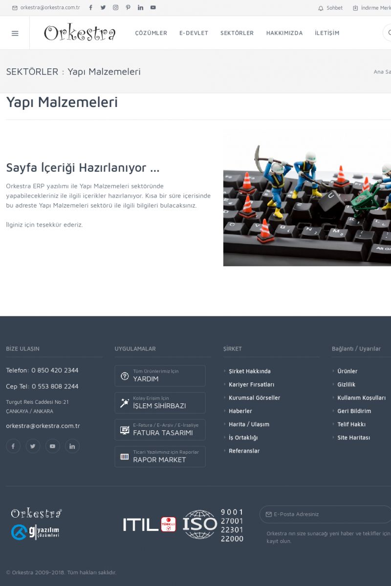 | 35 |  | İnşaat Sektörü İçin ERP Yazılımı, MRP ve CRM UygulamalarıİNŞAAT ------------------------- SAYFA İÇERIĞI HAZIRLANIYOR ... Orkestra ERP yazılımı ile İnşaat sektöründe yapabilecekleriniz ile ilgili içerikler hazırlanıyor. Kısa bir süre içerisinde bu adreste İnşaat sektörü ile ilgili bilgileri bulacaksınız. İlginiz için teşekkür ederiz. KISA ERİŞİM KODU : XYBJJ / ARA35 | |