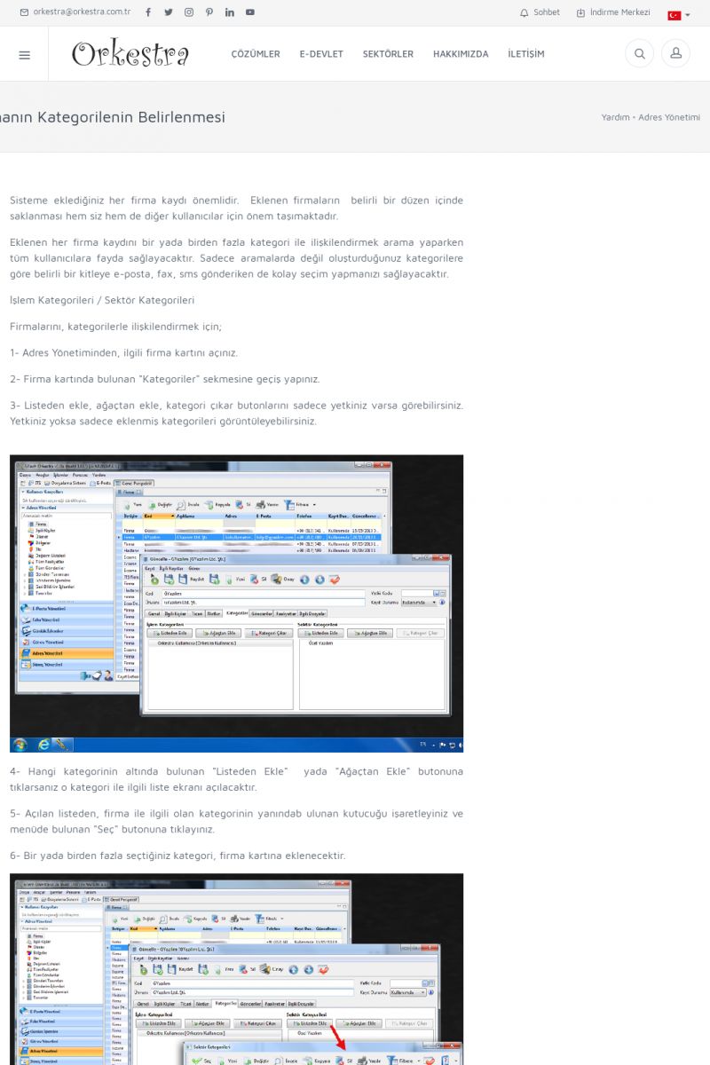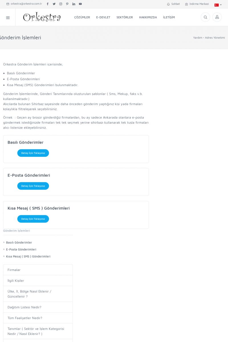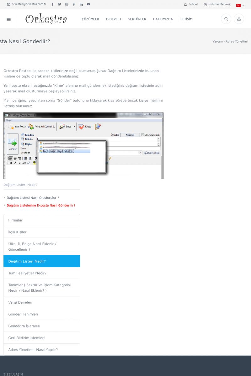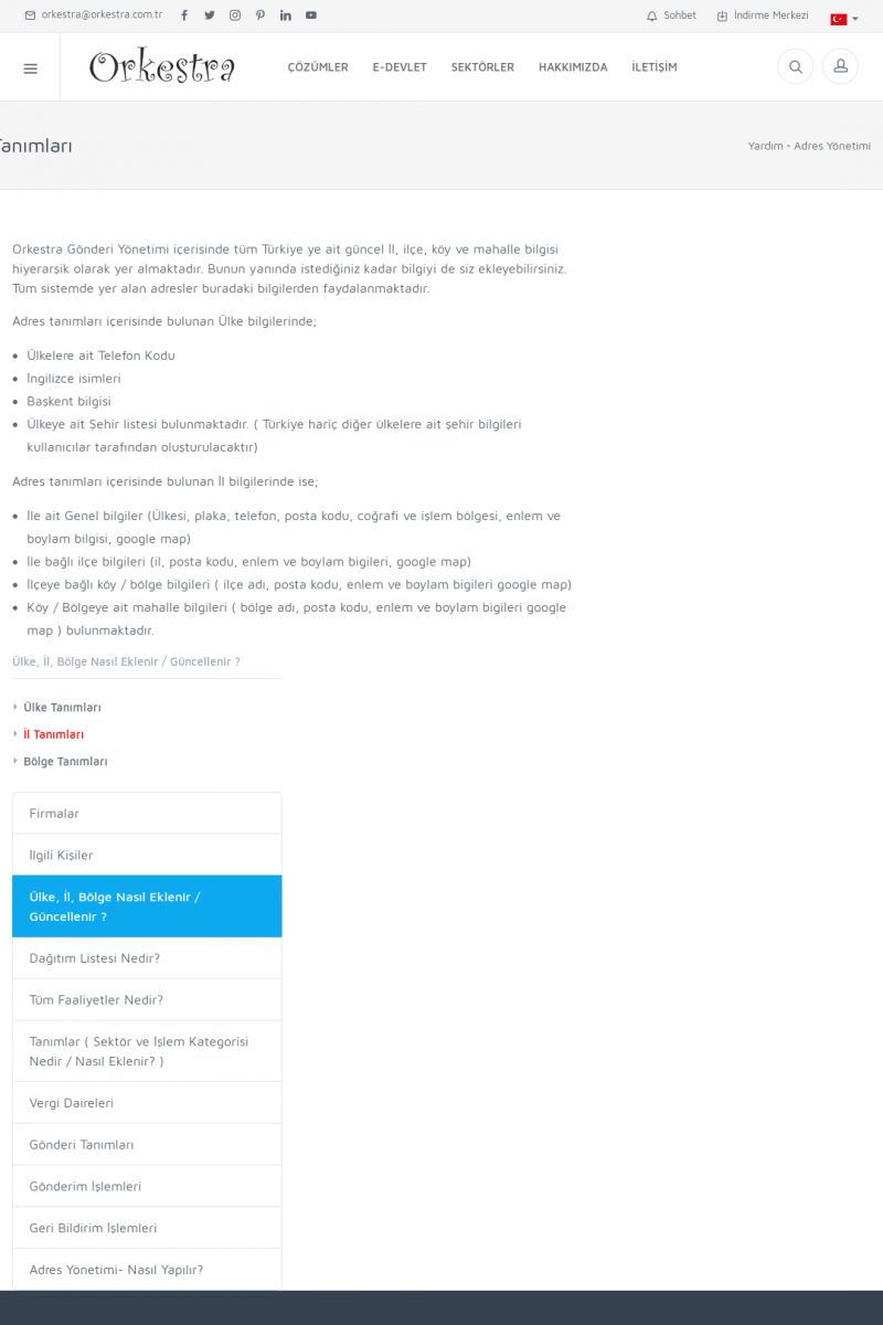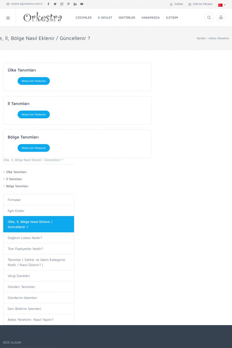 | 72 |  | Adres YönetimiFIRMALAR Detay İçin Tıklayınız [/index.php?sayfa=yardim&m=3&y=146] İLGILI KIŞILER Detay İçin Tıklayınız [/index.php?sayfa=yardim&m=3&y=147] ÜLKE, İL, BÖLGE NASIL EKLENIR / GÜNCELLENIR ? Detay İçin Tıklayınız [/index.php?sayfa=yardim&m=3&y=148] DAĞITIM LISTESI NEDIR? Detay İçin Tıklayınız [/index. KISA ERİŞİM KODU : XYCUK / ARA72 | |