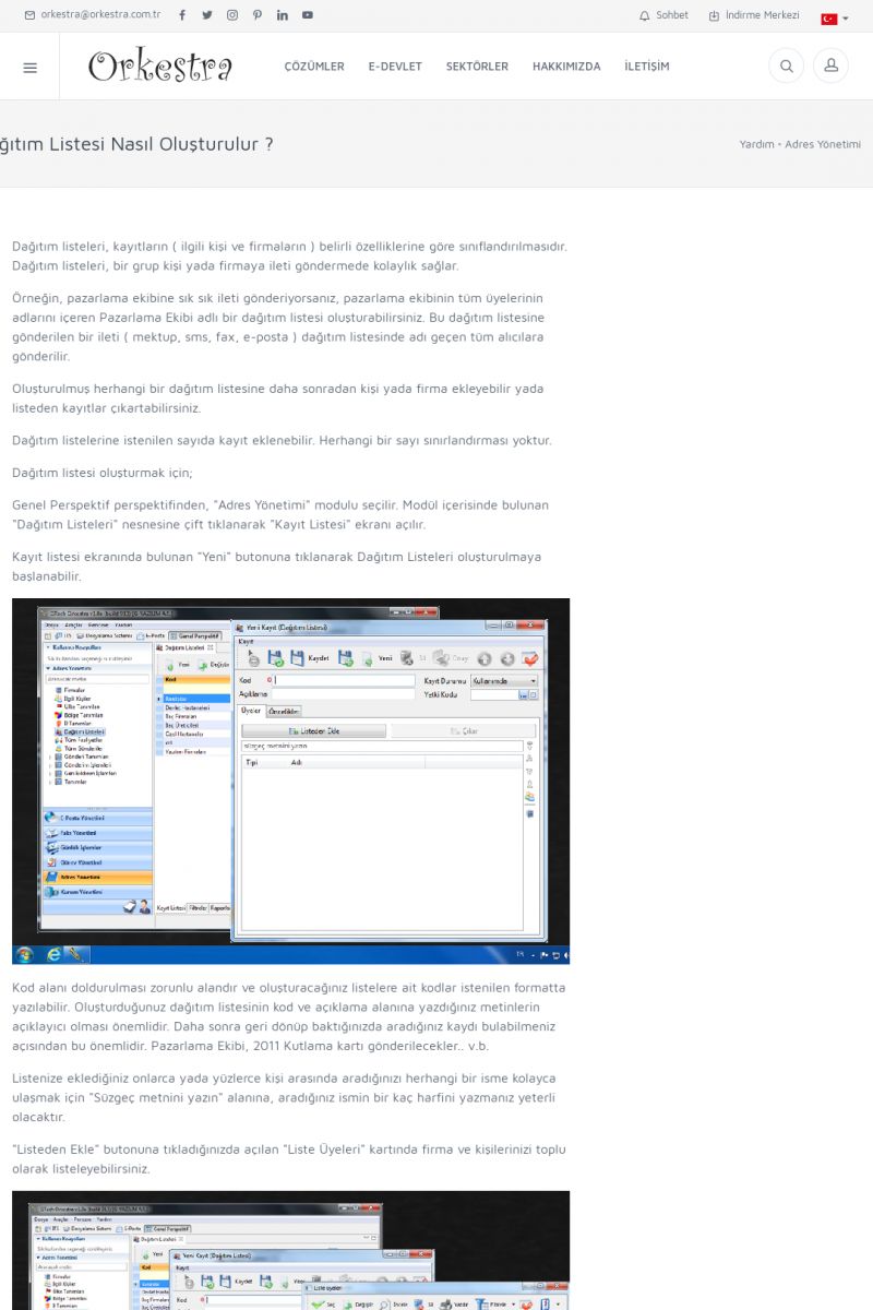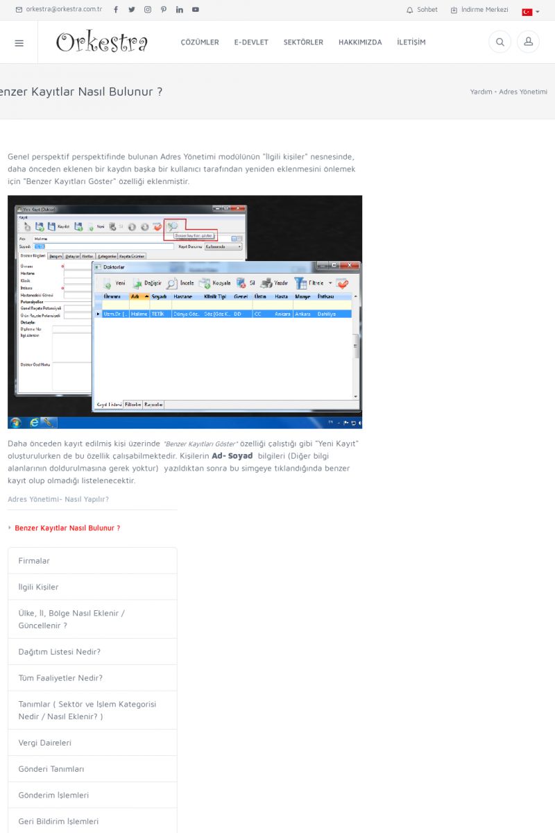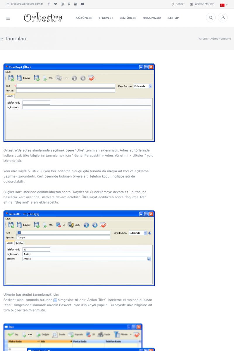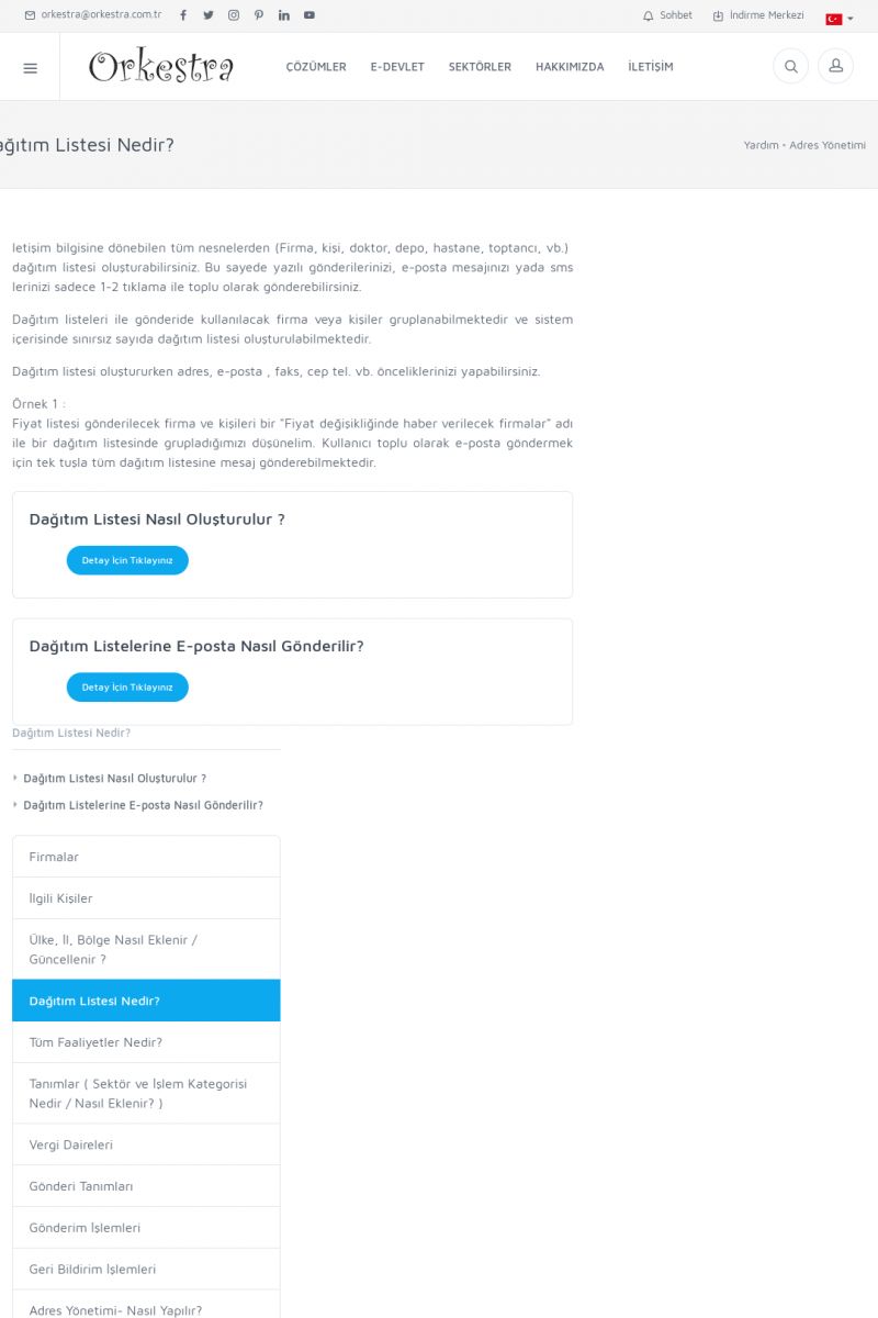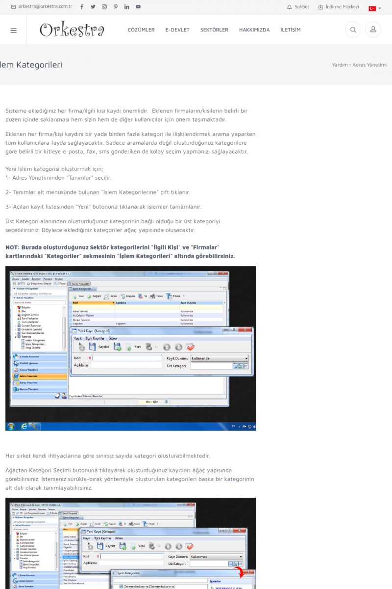 | 72 |  | Adres YönetimiFIRMALAR Detay İçin Tıklayınız [/index.php?sayfa=yardim&m=3&y=146] İLGILI KIŞILER Detay İçin Tıklayınız [/index.php?sayfa=yardim&m=3&y=147] ÜLKE, İL, BÖLGE NASIL EKLENIR / GÜNCELLENIR ? Detay İçin Tıklayınız [/index.php?sayfa=yardim&m=3&y=148] DAĞITIM LISTESI NEDIR? Detay İçin Tıklayınız [/index. KISA ERİŞİM KODU : XYCUK / ARA72 | |
