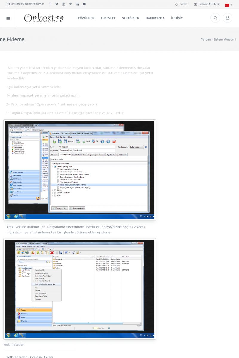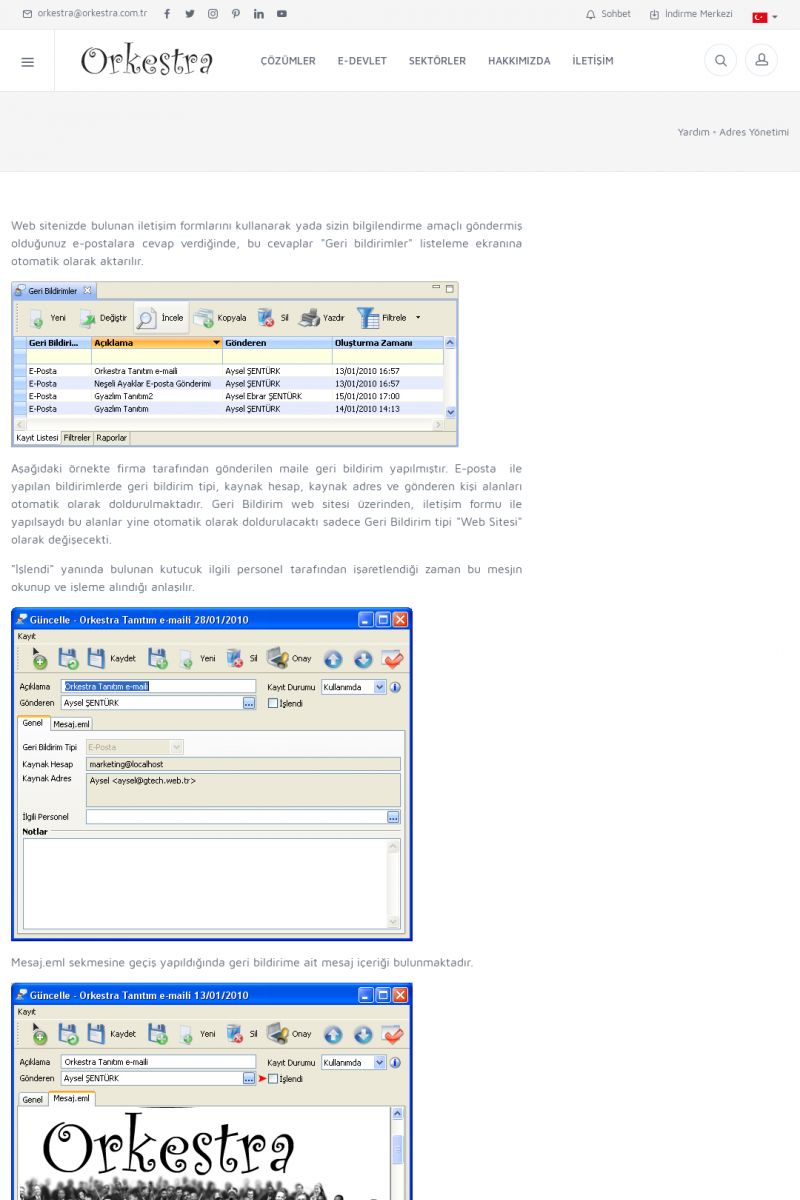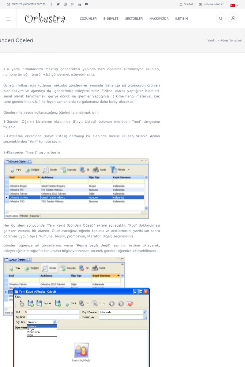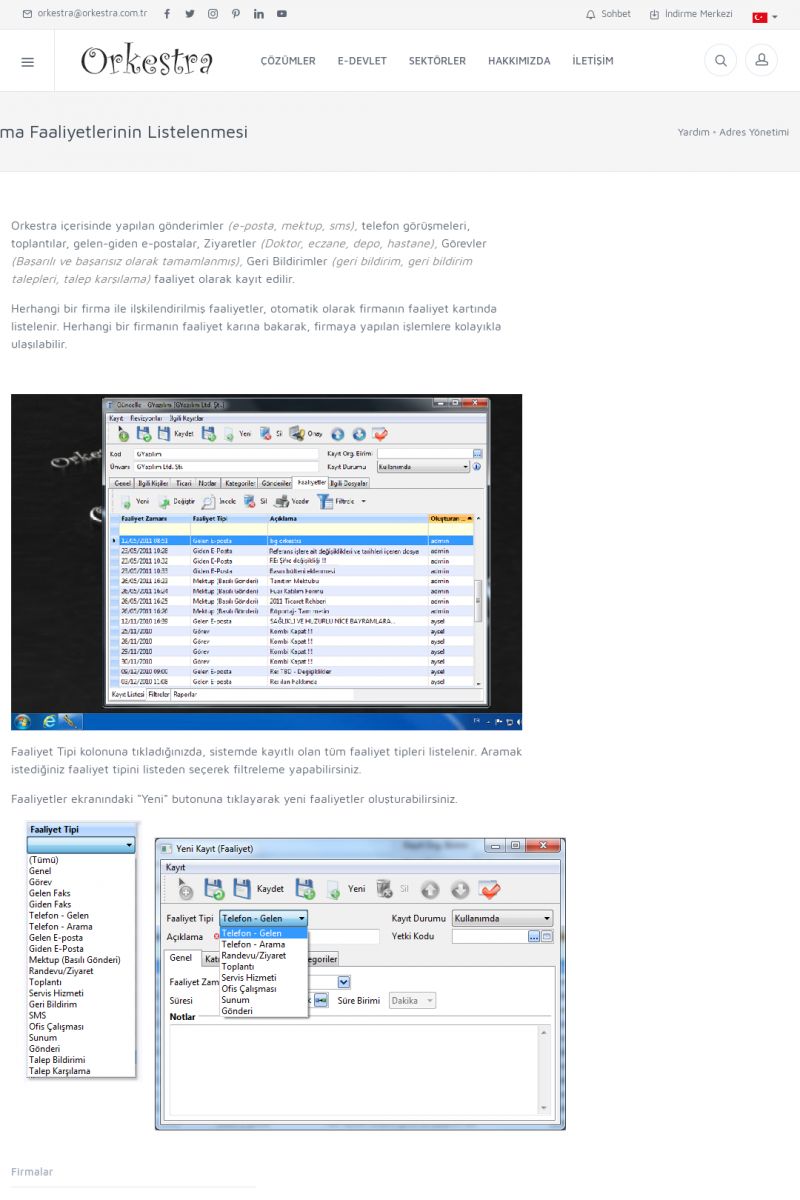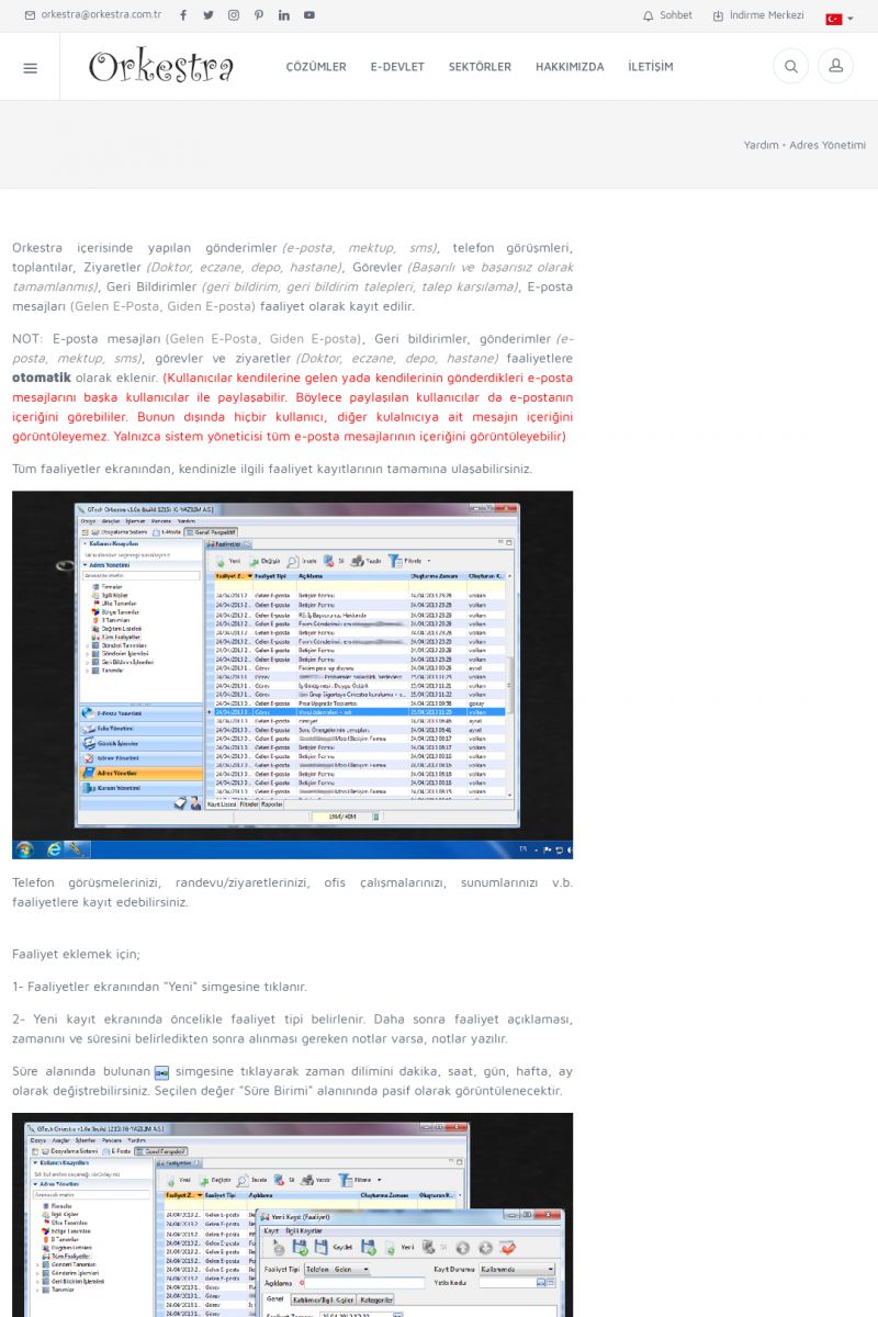 | 3 |  | Orkestra Ritim nedir? , Orkestra Ritim Ne İşe Yarar , İçerik # 18Şirketinize Ritim Verin ORKESTRA RITIM NEDIR ? ------------------------- ORKESTRA RITIM tüm işletmelerin ortak olarak ihtiyaç duyduğu "Güvenli Dosyalama Yönetimi", "Güvenli E-Posta Sunucusu", "Faks Sunucusu", "Adres Yönetimi", "Faaliyet Yönetimi", "Mesajlaşma" ve "Toplu Gönderi Yönetimi" gibi enstrümanları içerisinde