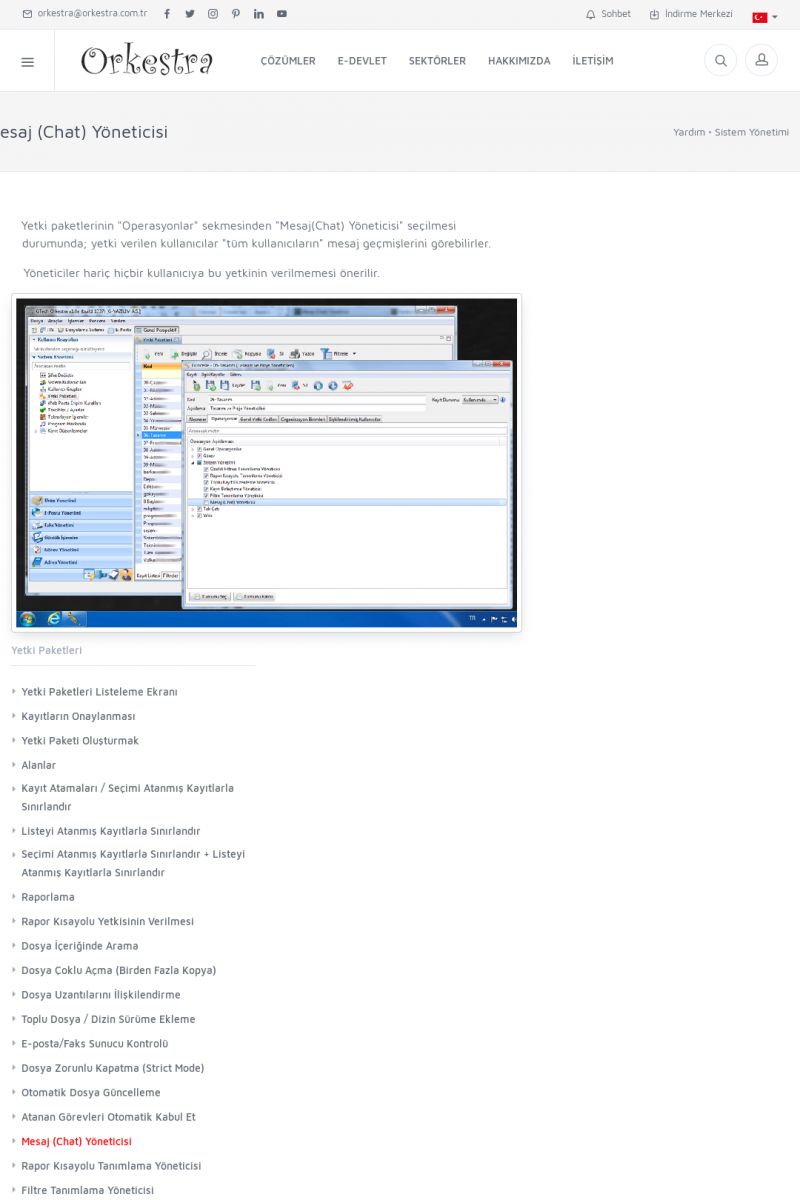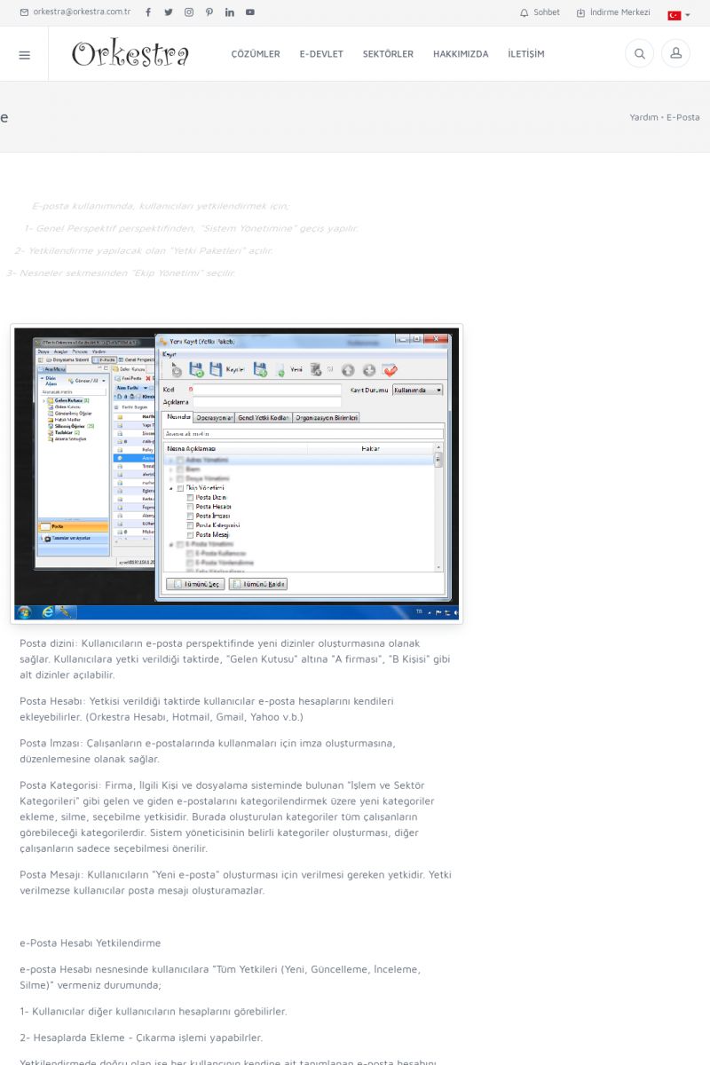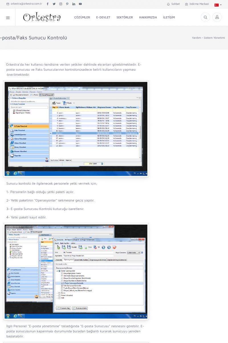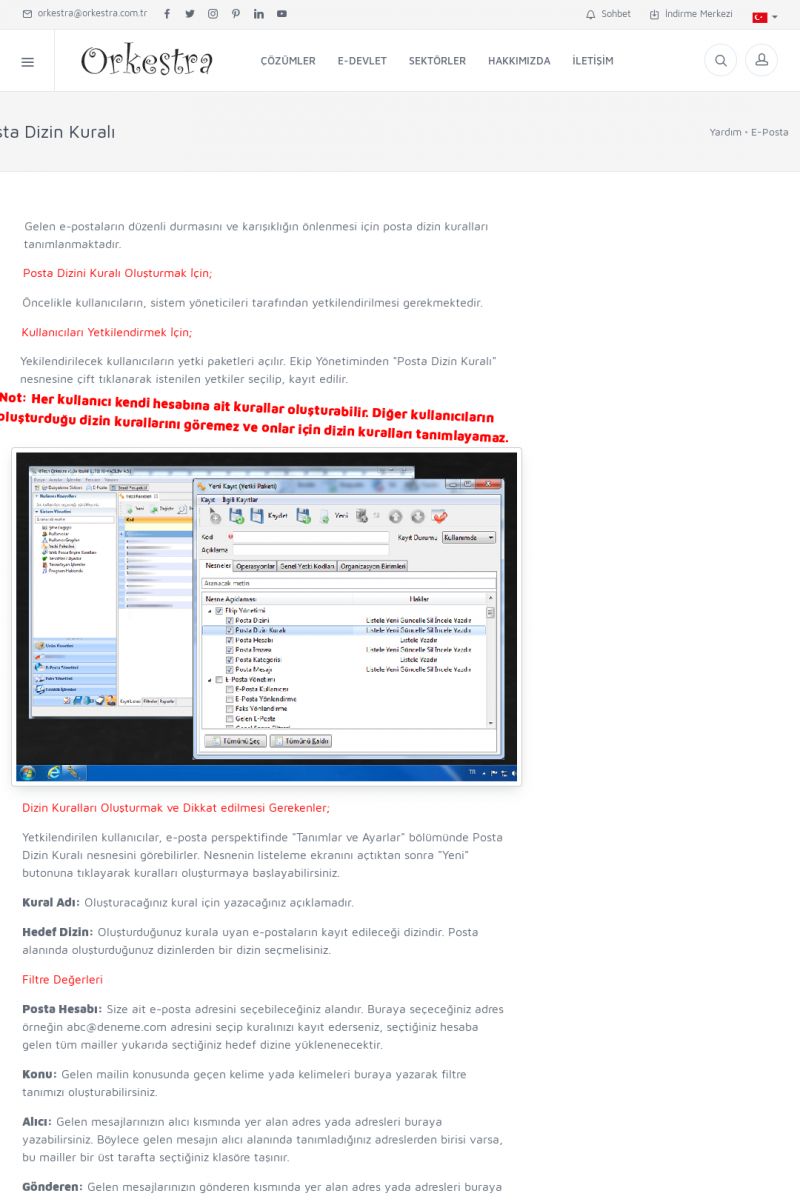 | 3 |  | Orkestra Ritim nedir? , Orkestra Ritim Ne İşe Yarar , İçerik # 18Şirketinize Ritim Verin ORKESTRA RITIM NEDIR ? ------------------------- ORKESTRA RITIM tüm işletmelerin ortak olarak ihtiyaç duyduğu "Güvenli Dosyalama Yönetimi", "Güvenli E-Posta Sunucusu", "Faks Sunucusu", "Adres Yönetimi", "Faaliyet Yönetimi", "Mesajlaşma" ve "Toplu Gönderi Yönetimi" gibi enstrümanları içerisinde