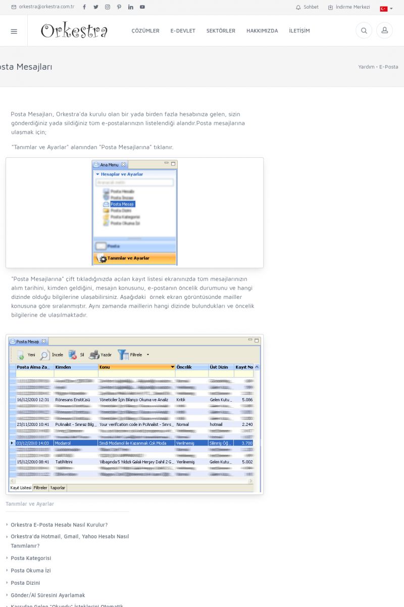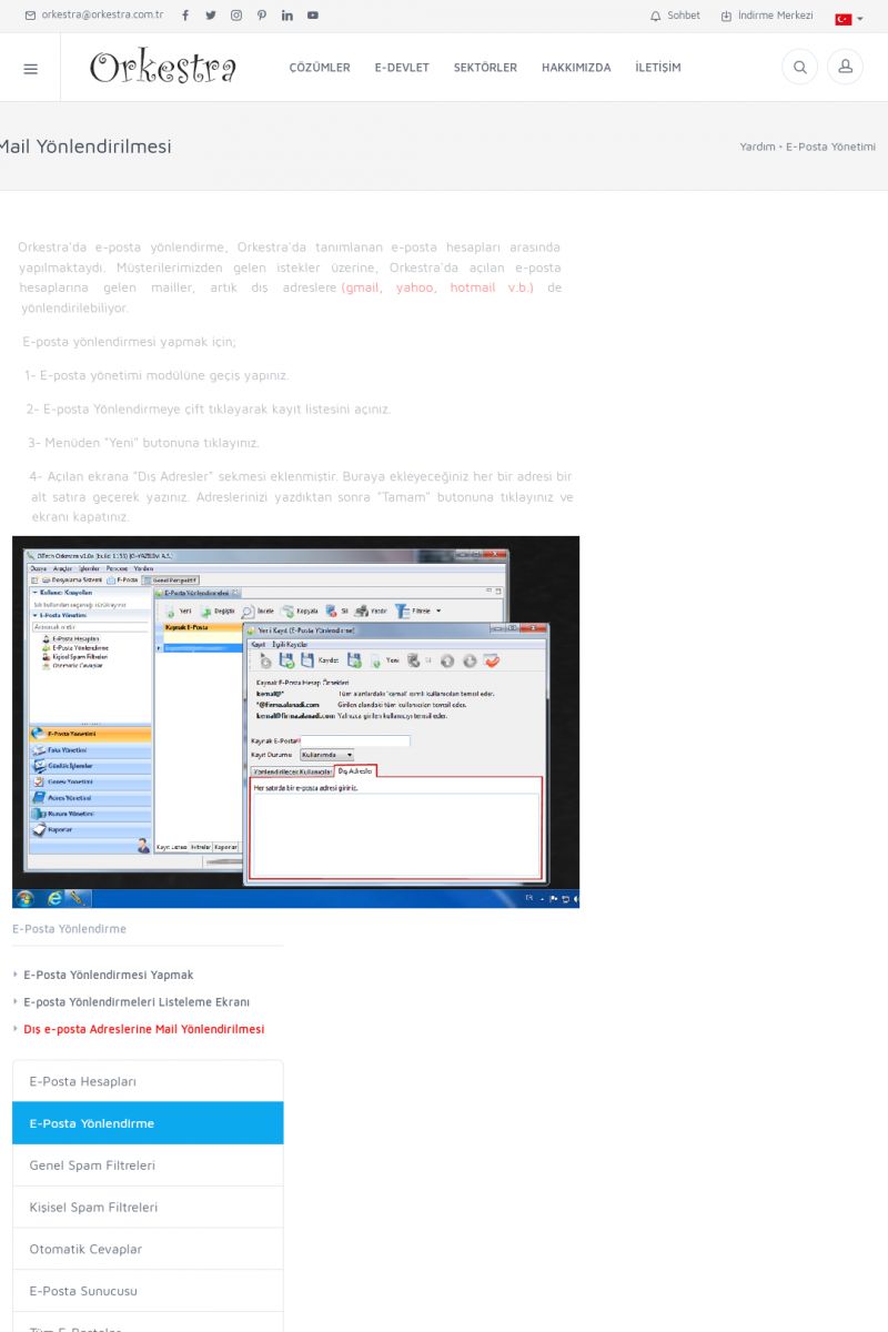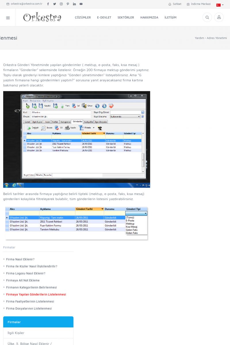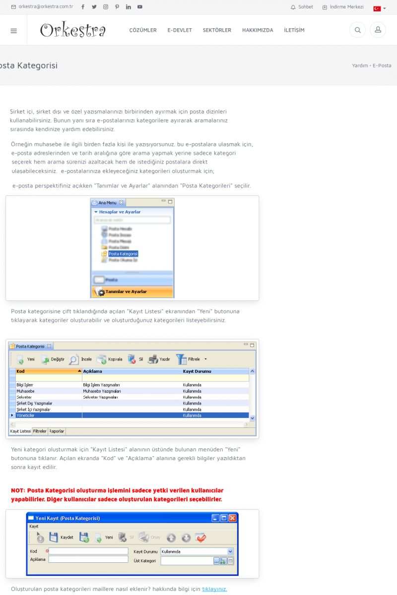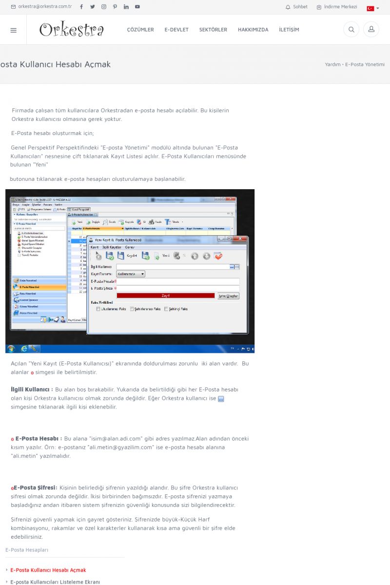 | 3 |  | Orkestra Ritim nedir? , Orkestra Ritim Ne İşe Yarar , İçerik # 18Şirketinize Ritim Verin ORKESTRA RITIM NEDIR ? ------------------------- ORKESTRA RITIM tüm işletmelerin ortak olarak ihtiyaç duyduğu "Güvenli Dosyalama Yönetimi", "Güvenli E-Posta Sunucusu", "Faks Sunucusu", "Adres Yönetimi", "Faaliyet Yönetimi", "Mesajlaşma" ve "Toplu Gönderi Yönetimi" gibi enstrümanları içerisinde