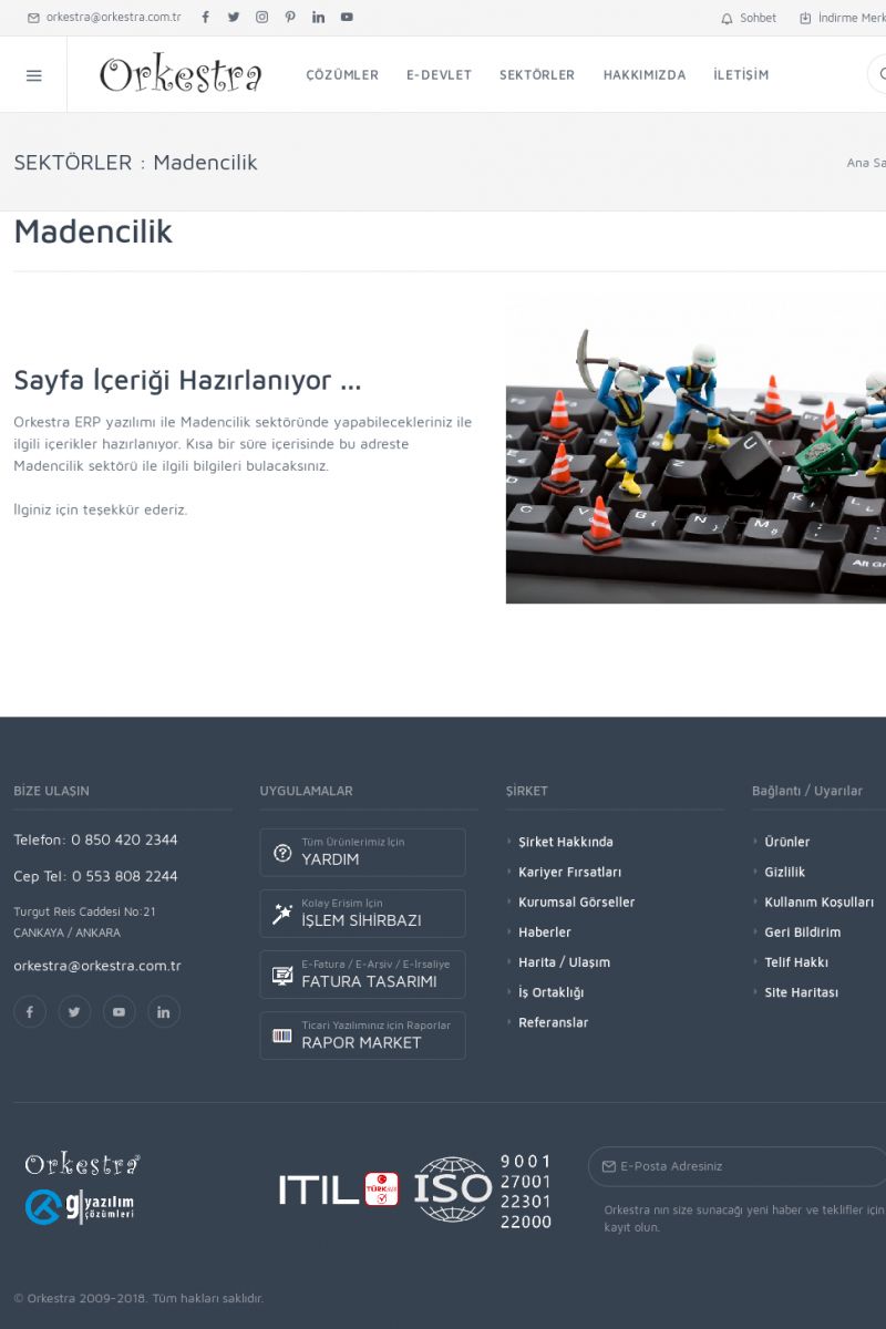 | 40 |  | Madencilik Sektörü İçin ERP Yazılımı, MRP ve CRM UygulamalarıMADENCILIK ------------------------- SAYFA İÇERIĞI HAZIRLANIYOR ... Orkestra ERP yazılımı ile Madencilik sektöründe yapabilecekleriniz ile ilgili içerikler hazırlanıyor. Kısa bir süre içerisinde bu adreste Madencilik sektörü ile ilgili bilgileri bulacaksınız. İlginiz için teşekkür ederiz. KISA ERİŞİM KODU : XYBOF / ARA40 | |