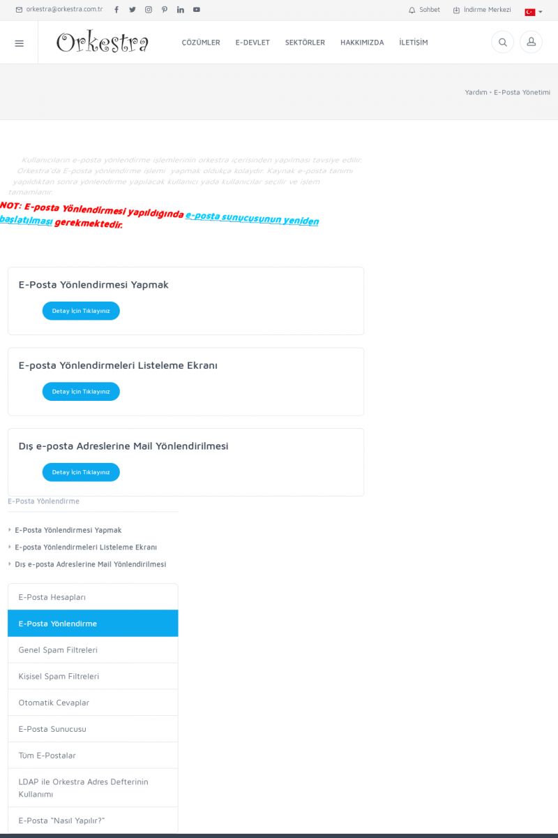 | 75 |  | E-Posta YönetimiE-POSTA HESAPLARI Detay İçin Tıklayınız [/index.php?sayfa=yardim&m=6&y=237] E-POSTA YÖNLENDIRME Detay İçin Tıklayınız [/index.php?sayfa=yardim&m=6&y=240] GENEL SPAM FILTRELERI Detay İçin Tıklayınız [/index.php?sayfa=yardim&m=6&y=244] KIŞISEL SPAM FILTRELERI Detay İçin Tıklayınız [/index. KISA ERİŞİM KODU : XYCXN / ARA75 | |