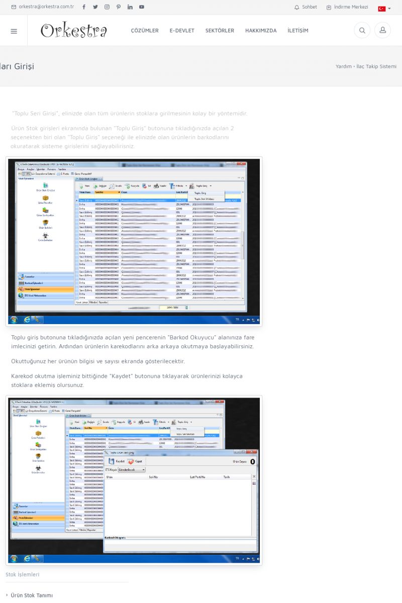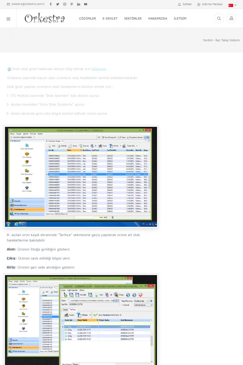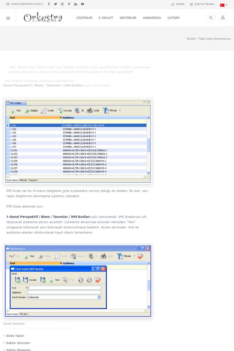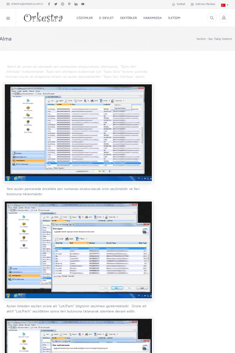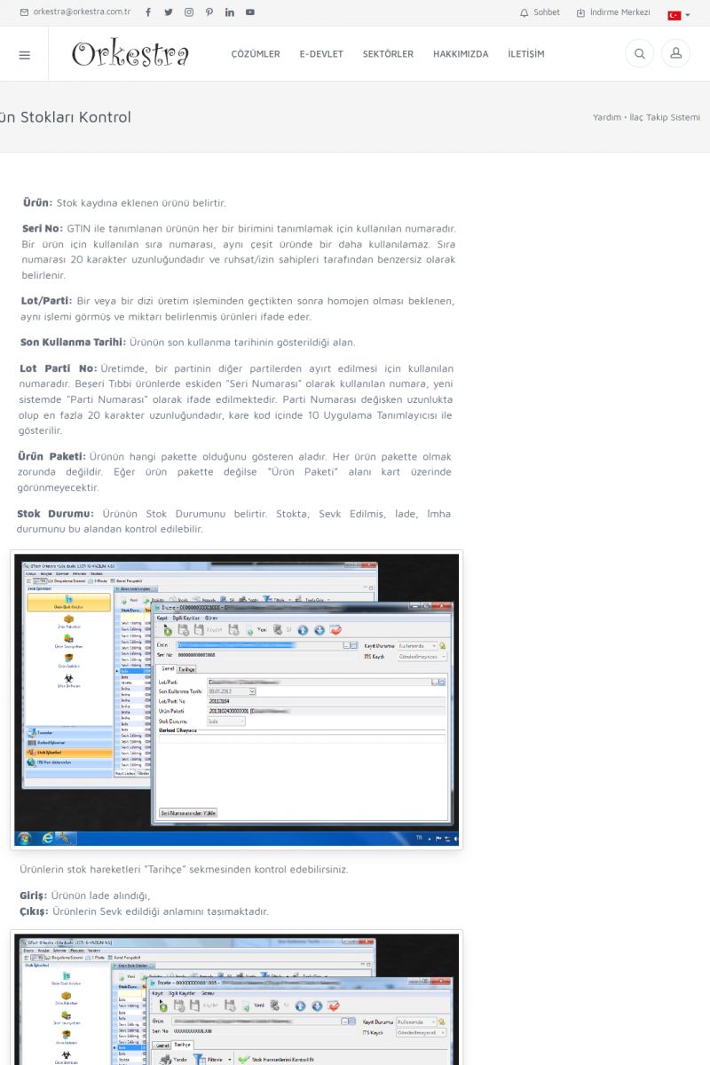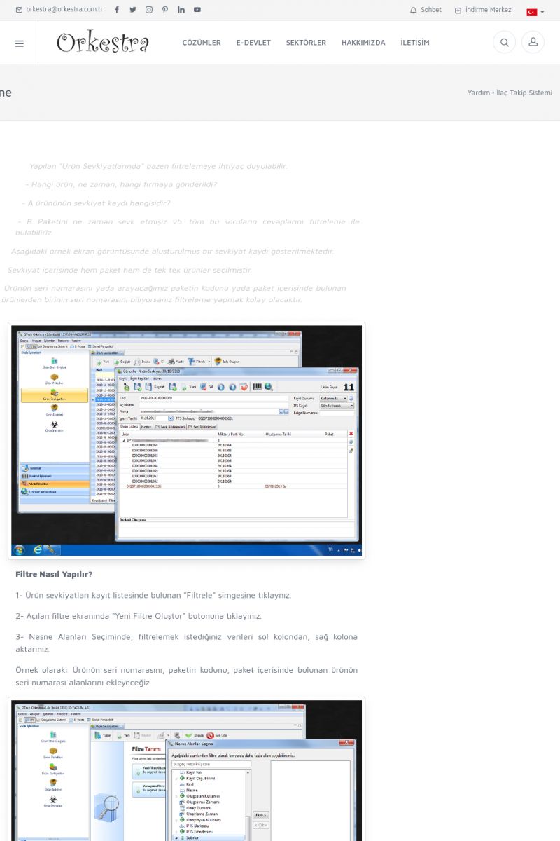 | 4 |  | Sektörel Yazılım Çözümleri , Sektörel Yazılım Çözümleri için Orkestra , İçerik # 21 , İlaç takip Sistemi , İlaç Ruhsat Sistemi , Orkestra Telco , Orkestra Zeytin ÜretimSizi dinliyoruz, Doğru çözümleri sunuyoruz SEKTÖREL YAZILIM ÇÖZÜMLERIMIZ ------------------------- Standart ürün ve uyarlamalar ile ihtiyaçlarınızın karşılanamadığı durumlarda sizlere sektörel ve özel yazılım çözümleri sunmaktayız. KISA ERİŞİM KODU : XYEF / ARA4 | |