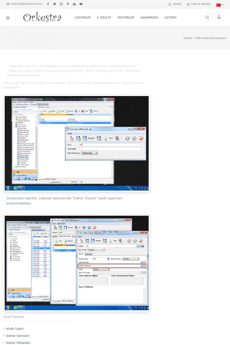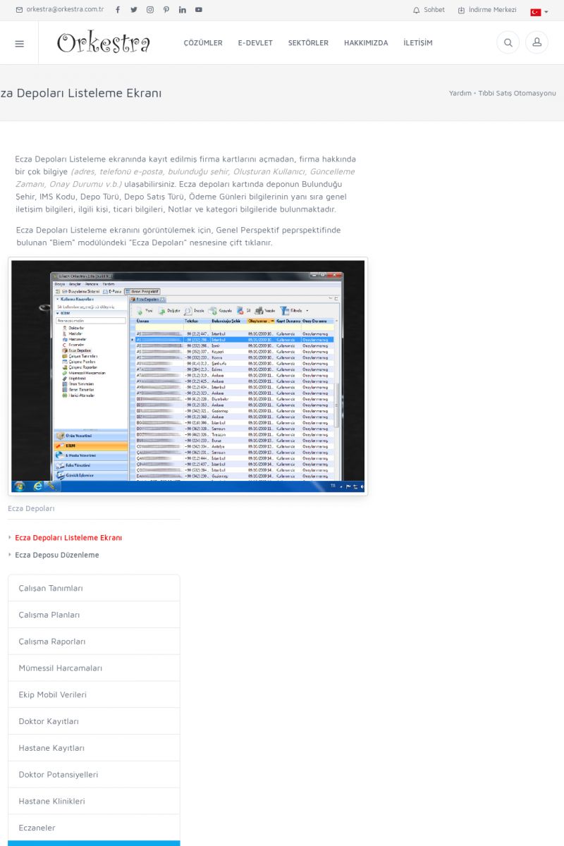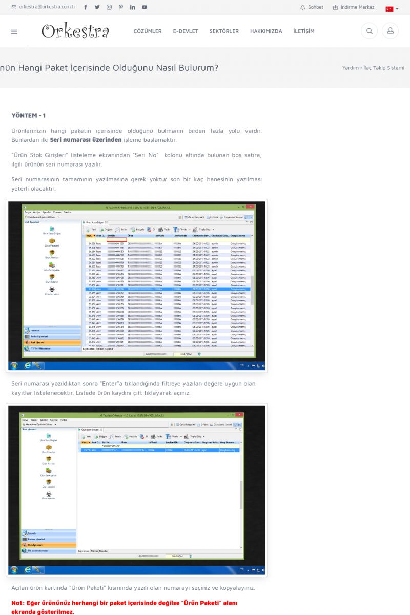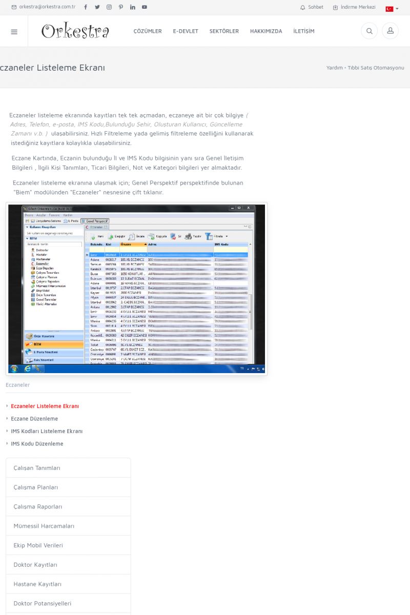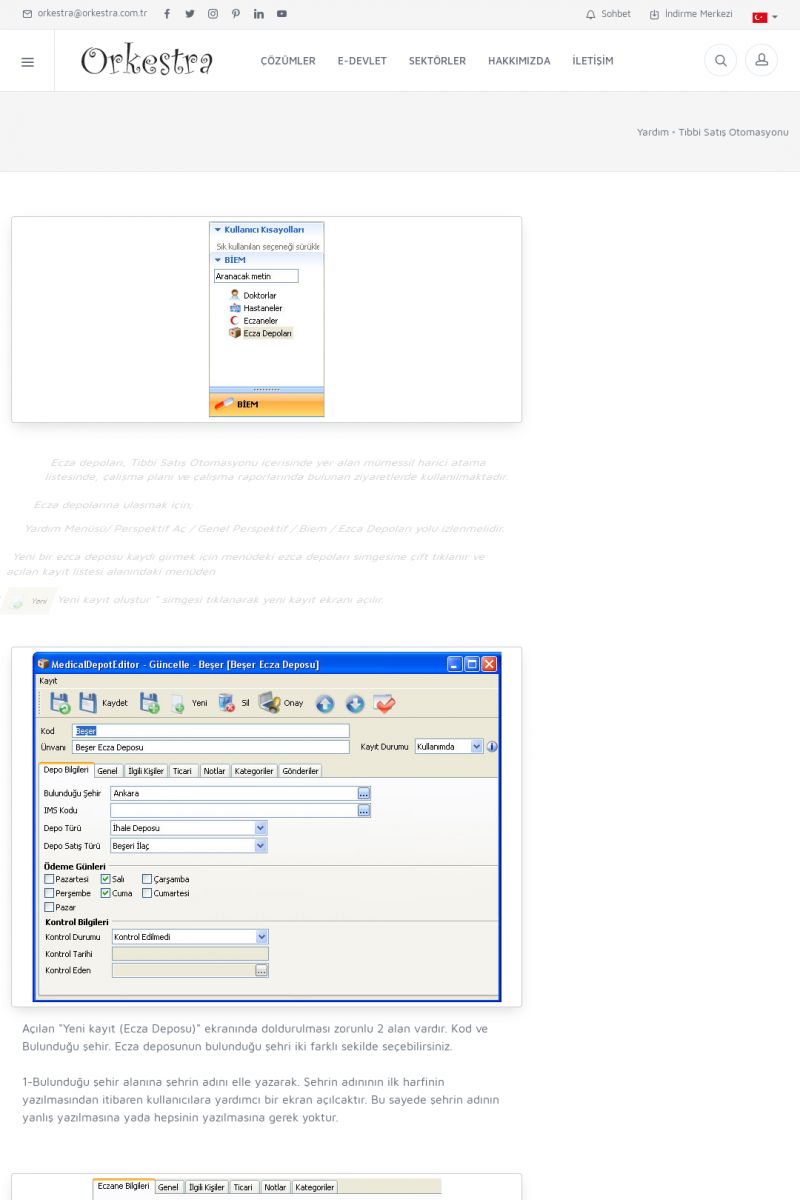 | 4 |  | Sektörel Yazılım Çözümleri , Sektörel Yazılım Çözümleri için Orkestra , İçerik # 21 , İlaç takip Sistemi , İlaç Ruhsat Sistemi , Orkestra Telco , Orkestra Zeytin ÜretimSizi dinliyoruz, Doğru çözümleri sunuyoruz SEKTÖREL YAZILIM ÇÖZÜMLERIMIZ ------------------------- Standart ürün ve uyarlamalar ile ihtiyaçlarınızın karşılanamadığı durumlarda sizlere sektörel ve özel yazılım çözümleri sunmaktayız. KISA ERİŞİM KODU : XYEF / ARA4 | |