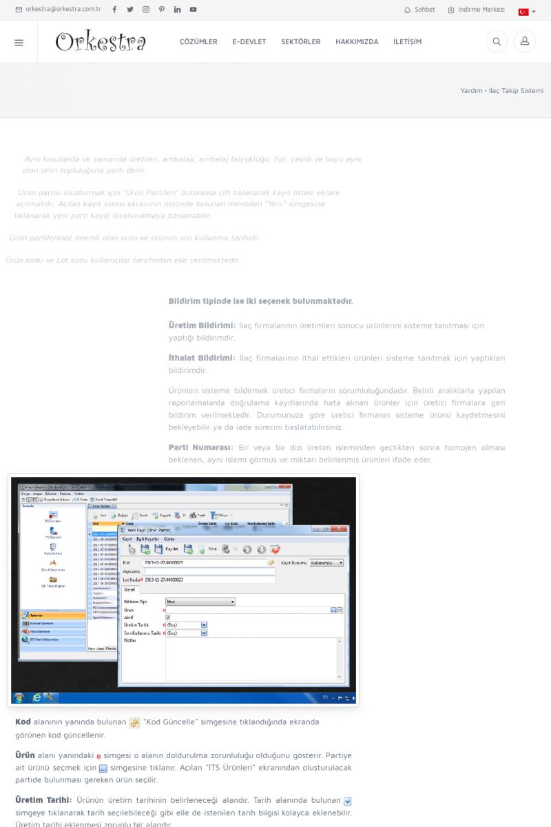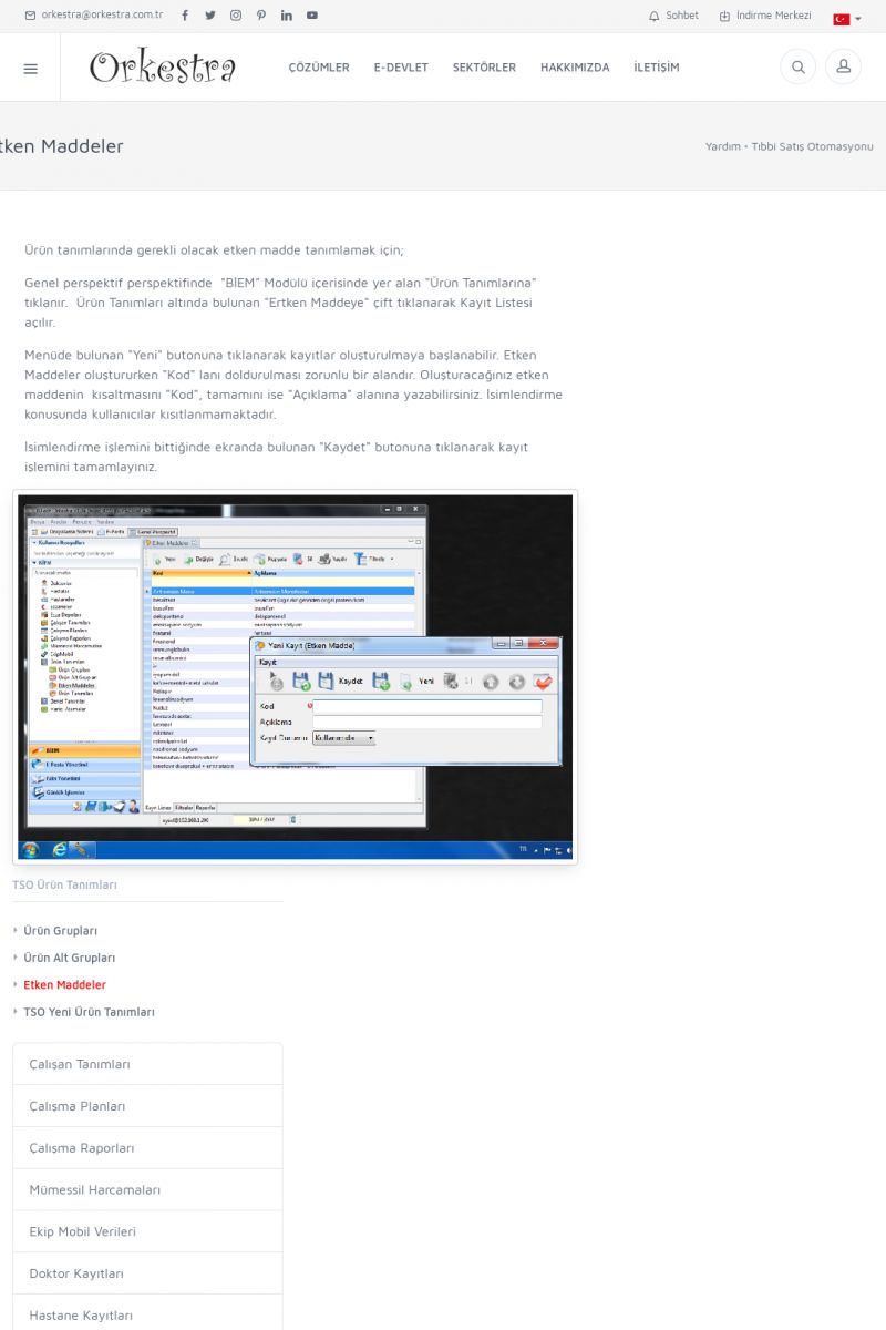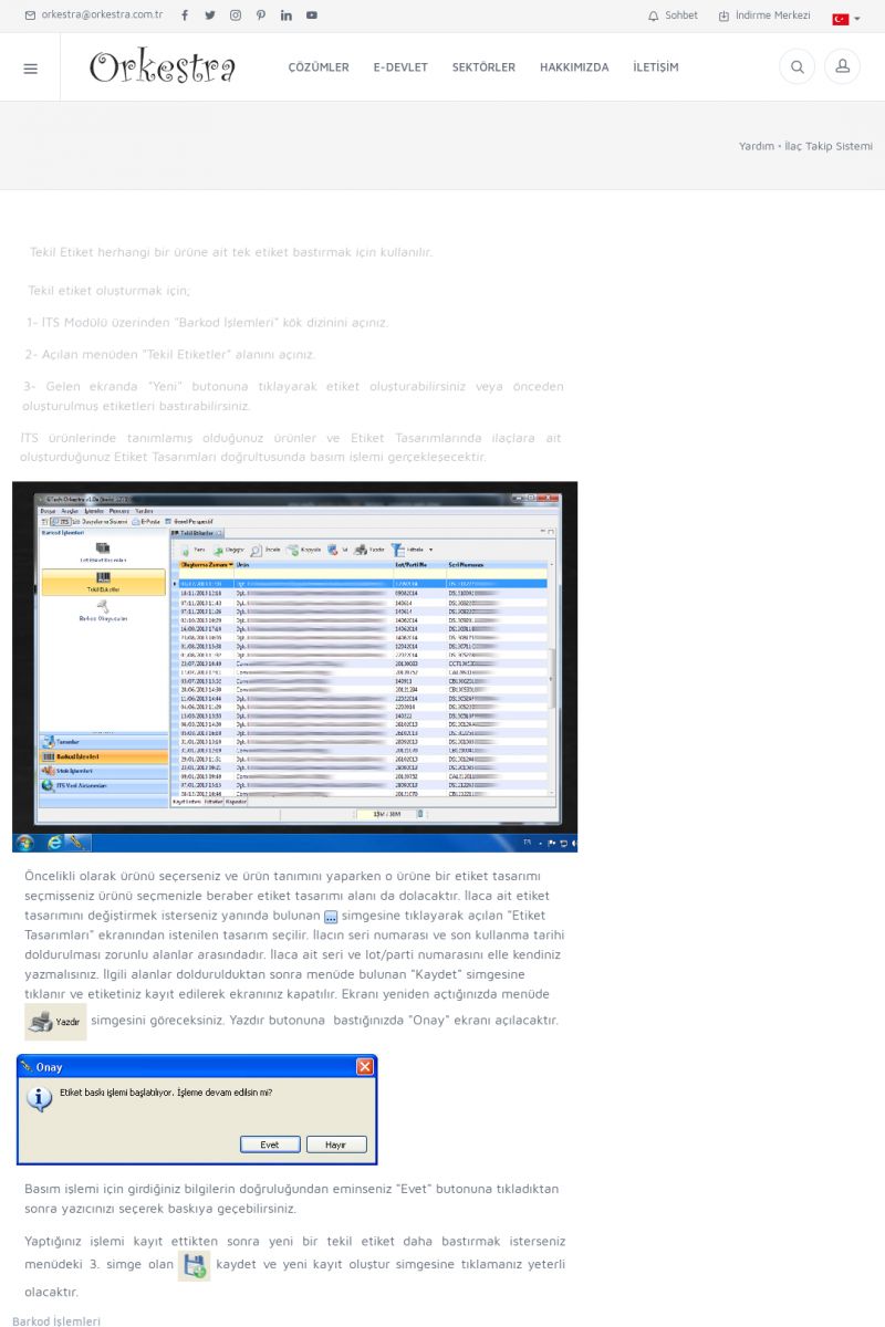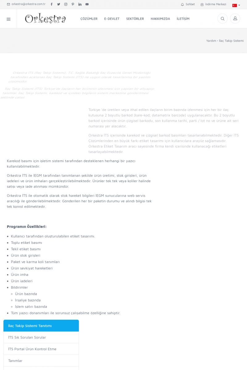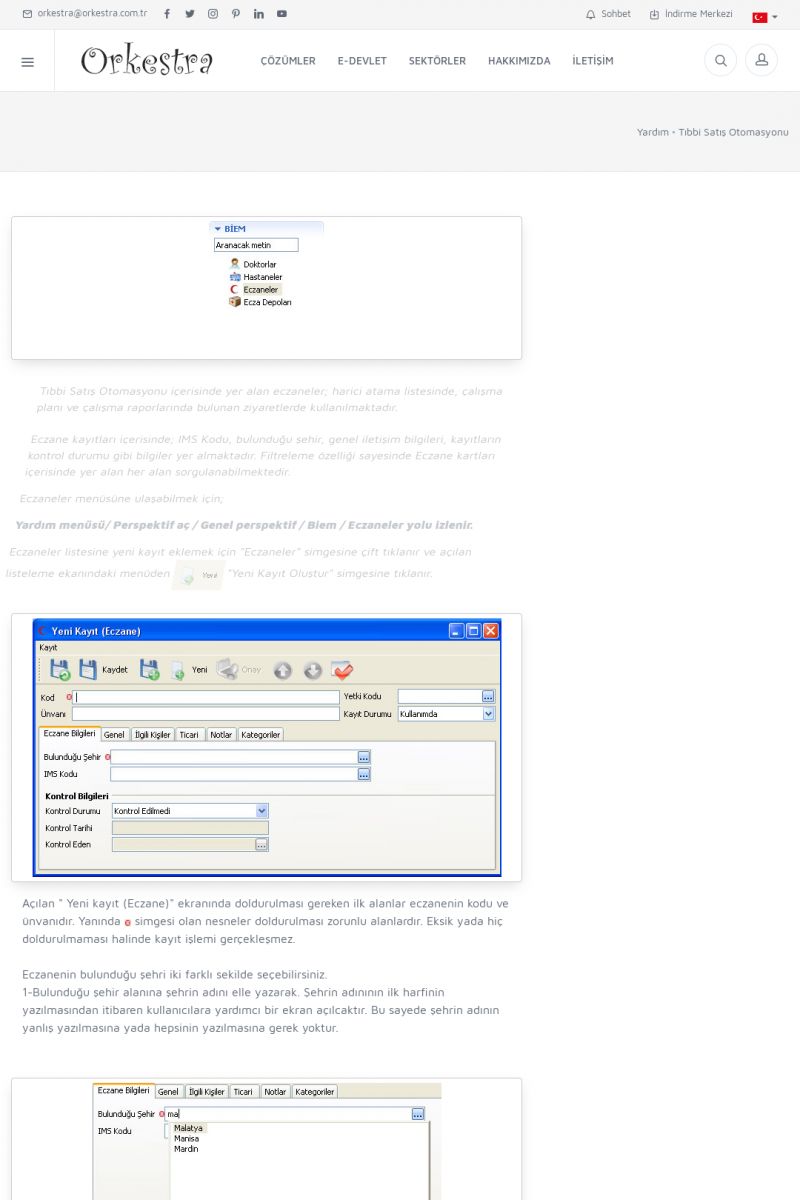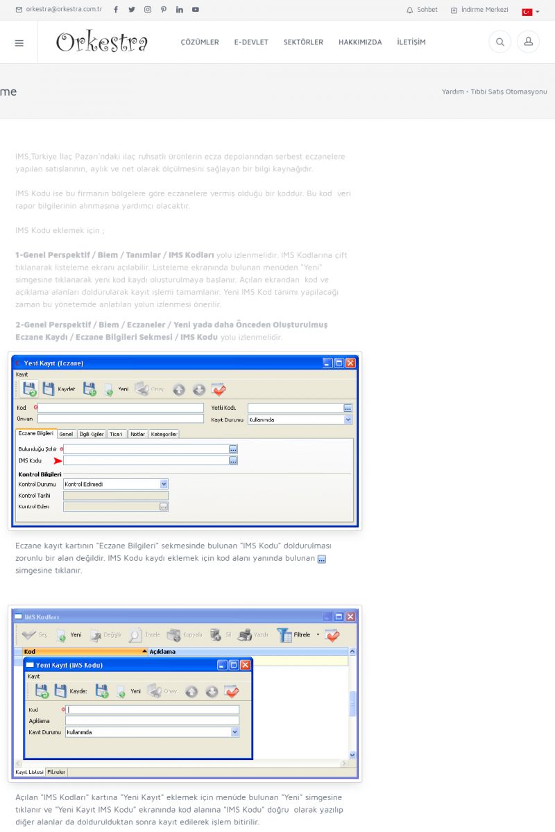 | 4 |  | Sektörel Yazılım Çözümleri , Sektörel Yazılım Çözümleri için Orkestra , İçerik # 21 , İlaç takip Sistemi , İlaç Ruhsat Sistemi , Orkestra Telco , Orkestra Zeytin ÜretimSizi dinliyoruz, Doğru çözümleri sunuyoruz SEKTÖREL YAZILIM ÇÖZÜMLERIMIZ ------------------------- Standart ürün ve uyarlamalar ile ihtiyaçlarınızın karşılanamadığı durumlarda sizlere sektörel ve özel yazılım çözümleri sunmaktayız. KISA ERİŞİM KODU : XYEF / ARA4 | |