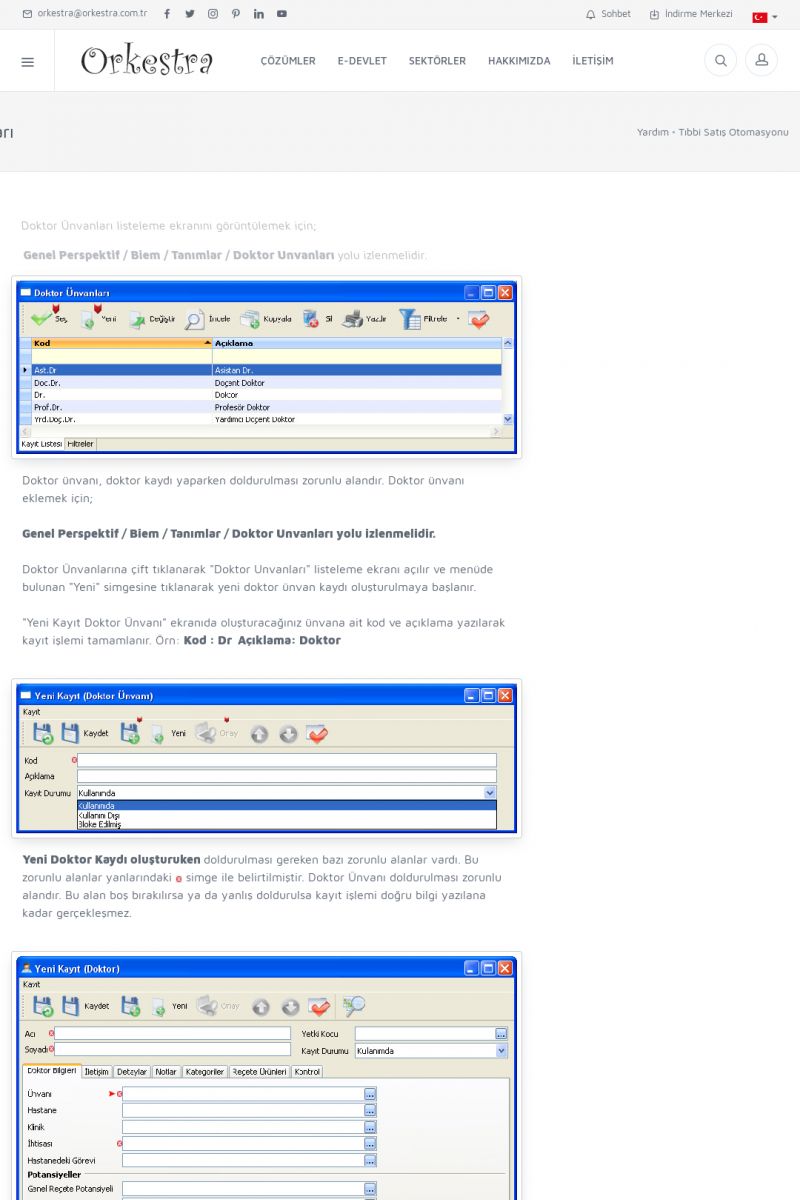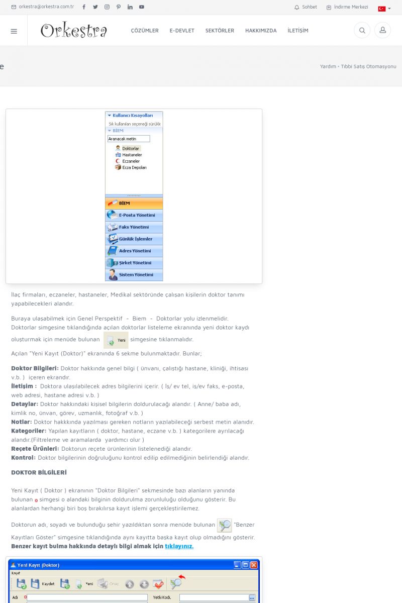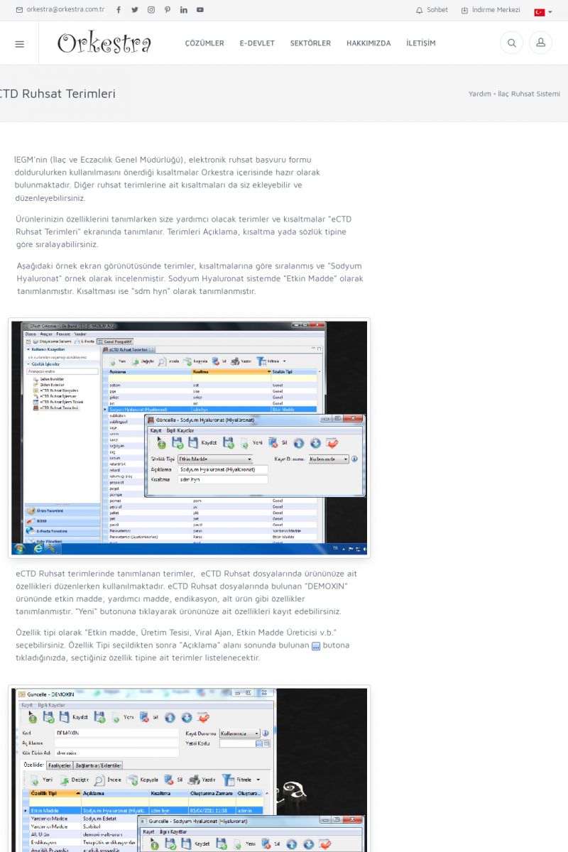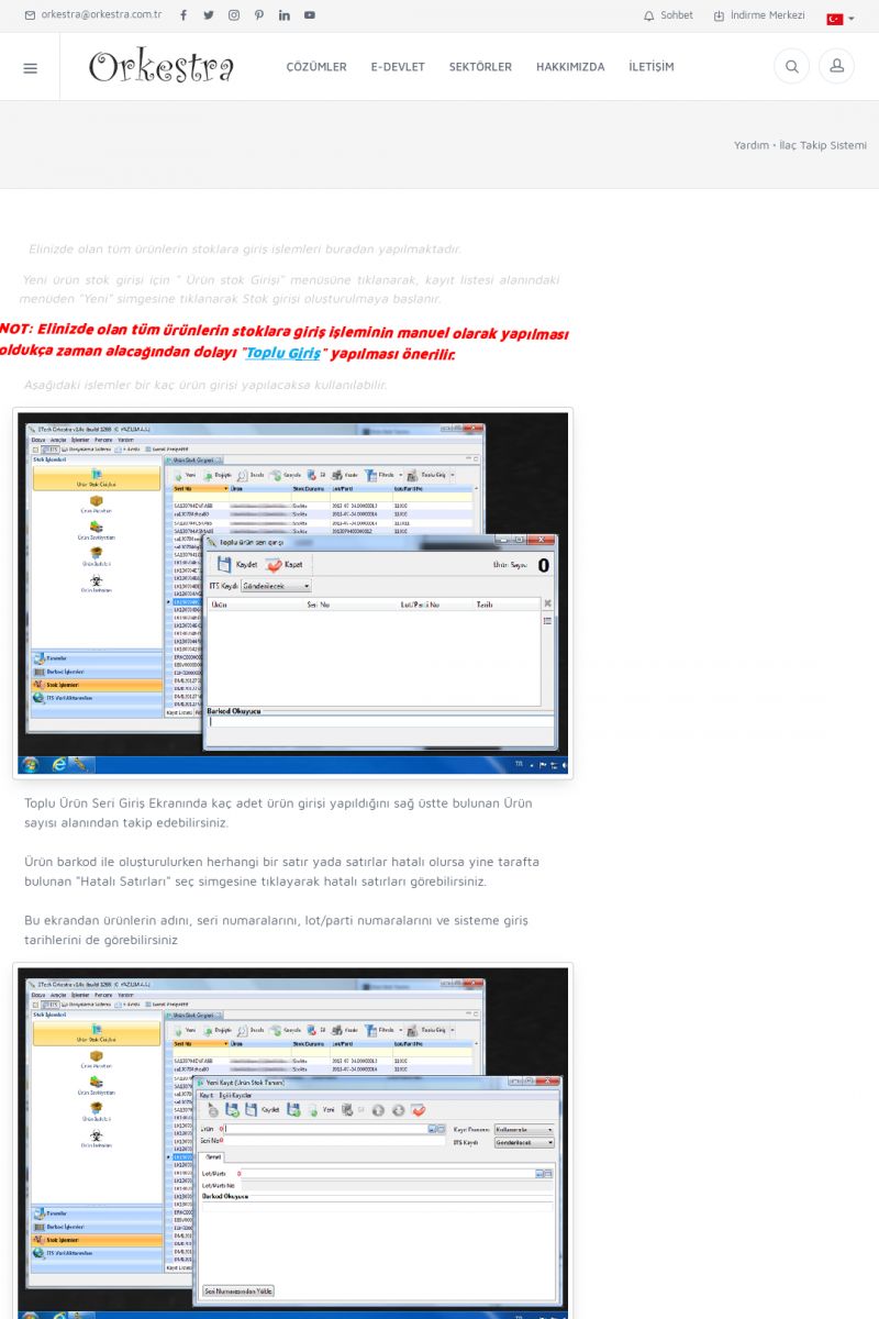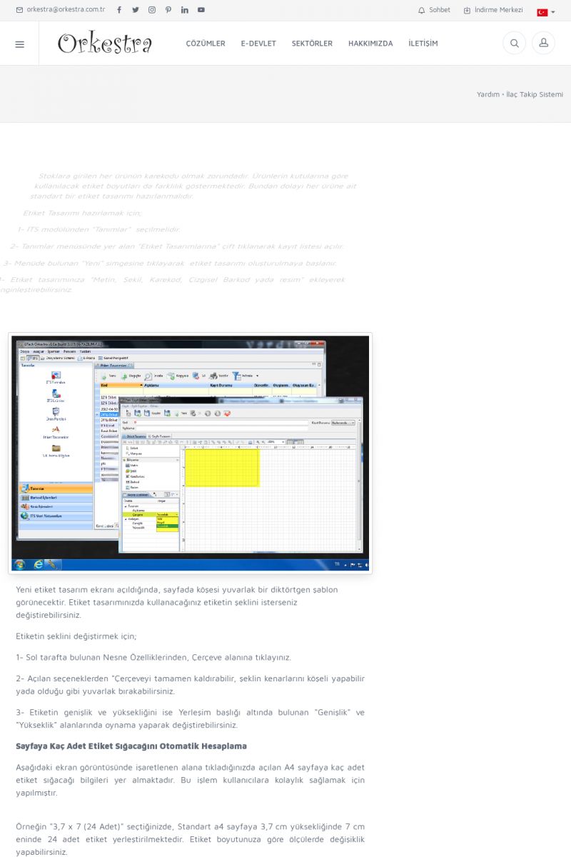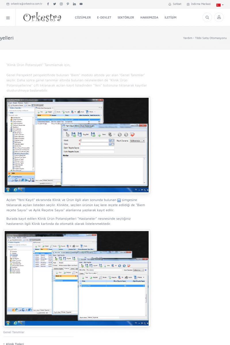 | 4 |  | Sektörel Yazılım Çözümleri , Sektörel Yazılım Çözümleri için Orkestra , İçerik # 21 , İlaç takip Sistemi , İlaç Ruhsat Sistemi , Orkestra Telco , Orkestra Zeytin ÜretimSizi dinliyoruz, Doğru çözümleri sunuyoruz SEKTÖREL YAZILIM ÇÖZÜMLERIMIZ ------------------------- Standart ürün ve uyarlamalar ile ihtiyaçlarınızın karşılanamadığı durumlarda sizlere sektörel ve özel yazılım çözümleri sunmaktayız. KISA ERİŞİM KODU : XYEF / ARA4 | |