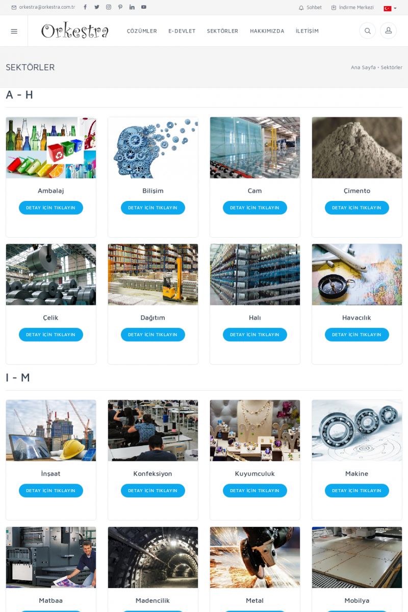 | 44 |  | Orkestra ERP Sektör UygulamalarıA - H ------------------------- [Ambalaj] [/index.php?sayfa=sektorler&m=ambalaj] AMBALAJ DETAY İÇİN TIKLAYIN [/index.php?sayfa=sektorler&m=ambalaj] [Bilişim] [/index.php?sayfa=sektorler&m=bilisim] BILIŞIM DETAY İÇİN TIKLAYIN [/index.php?sayfa=sektorler&m=bilisim] [Cam] [/index. KISA ERİŞİM KODU : XYBSJ / ARA44 | |